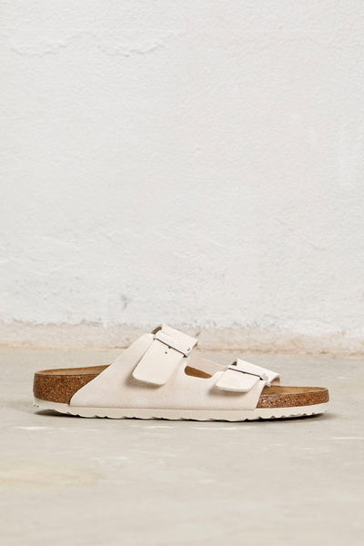 - Ciabatte Arizona: disponibili in diverse finiture, dal suede visone alla pelle bianca, rappresentano un classico intramontabile.