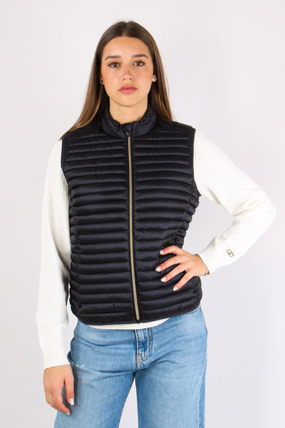 - Eleganza sportiva: scegli il gilet Aria in beige sopra una maglia a collo alto e pantaloni a sigaretta per un look raffinato ma confortevole.