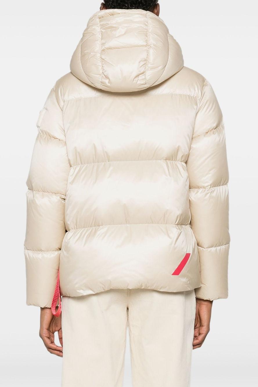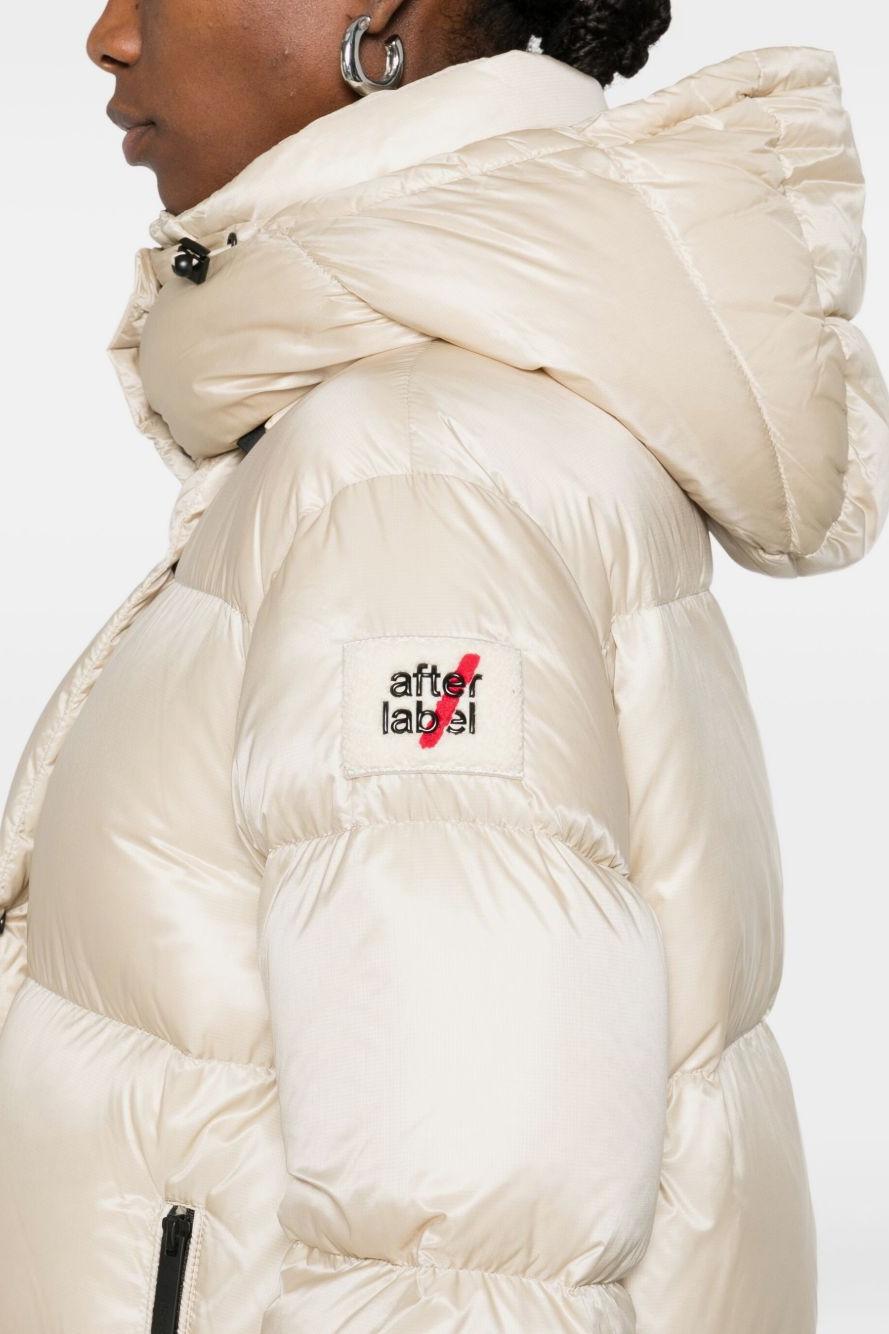 Il cappuccio removibile con coulisse regolabile permette di adattarsi alle diverse condizioni climatiche, mentre la chiusura frontale con zip e bottoni automatici assicura una protezione totale dal freddo. Le tasche laterali con zip nera a contrasto aggiungono un tocco urban al capo, così come il logo ricamato After Label sulla manica sinistra.