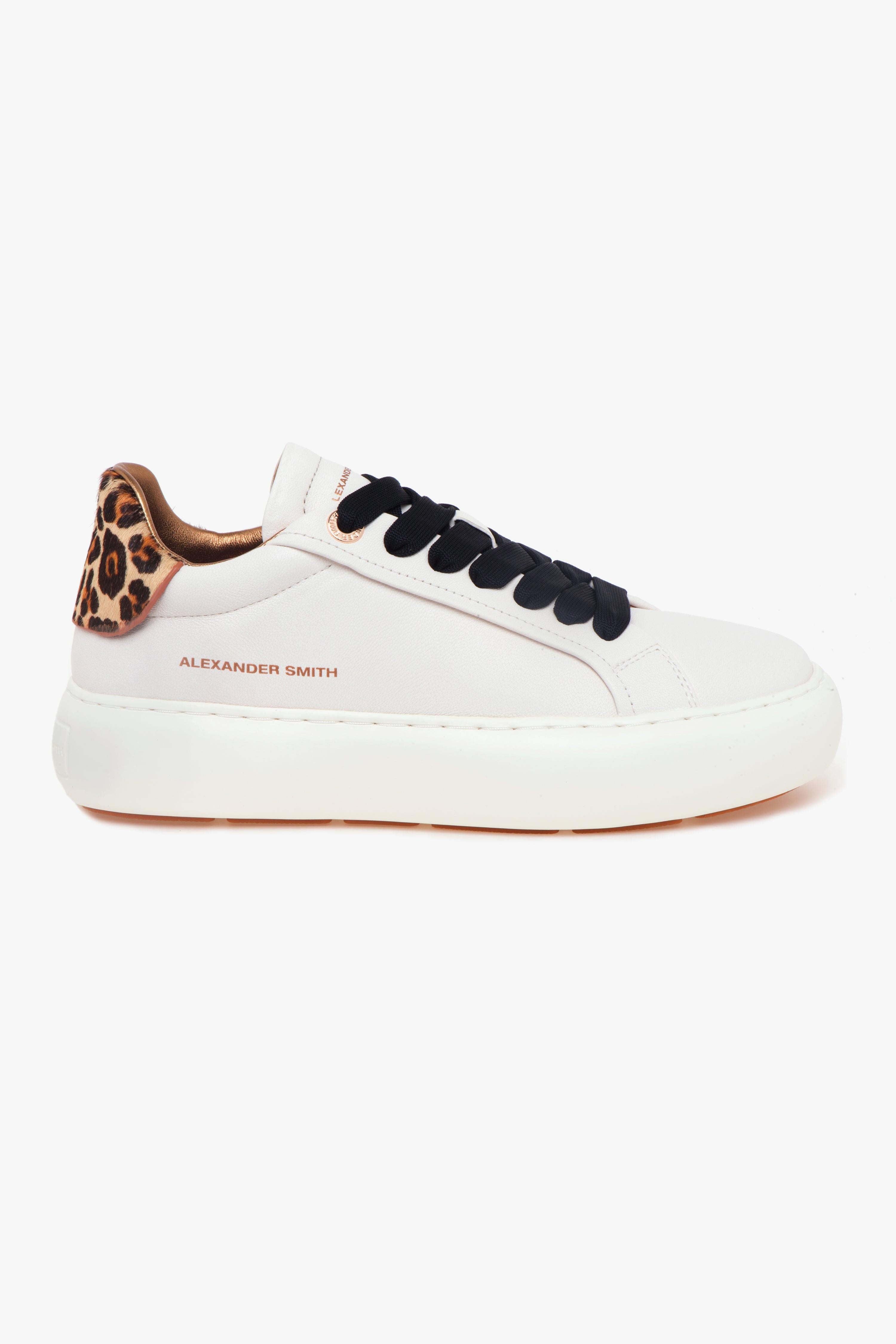 Forme essenziali e dettagli di carattere si incontrano in una sneaker dallo spirito contemporaneo, ispirata all’energia cosmopolita di Soho.La Alexander Smith Soho, proposta in morbida nappa color burro, si distingue per il suo design minimalista, reso unico dal talloncino in cavallino maculato, un elemento fashion e distintivo che aggiunge texture e dinamismo al look. Sul lato, il logo Alexander Smith stampato a contrasto firma la scarpa con discrezione e stile.La suola in gomma leggera, con profilo bold appena accennato, slancia la silhouette senza appesantirla, mentre l’interno è progettato per offrire massimo comfort: fodera in pelle e tessuto, e una soletta estraibile in pelle, pensata per garantire traspirazione, ammortizzazione e praticità d’uso.Elegante, versatile e sorprendentemente leggera, questa sneaker è perfetta per chi ama un’estetica pulita ma con dettagli audaci che fanno la differenza.Caratteristiche principali:# Tomaia in nappa color burro.# Talloncino in cavallino maculato.# Logo Alexander Smith laterale a contrasto.# Occhielli in finitura oro rosa.# Fodera in pelle e tessuto.# Sottopiede removibile in pelle.# Suola in gomma leggera.# Altezza suola: 40 mm.# Soletta interna: 10 mm.# Made in ItalyConsigli di stile:Perfette con pantaloni cropped in lana leggera, una blusa fluida dal taglio minimal e un trench destrutturato a spalle morbide. Il dettaglio animalier aggiunge movimento a un outfit pulito e sofisticato, perfetto per il quotidiano cittadino.In alternativa, ottime da abbinare a una gonna midi in denim slavato o pantaloni cargo sartoriali, un top a costine fitted e una overshirt in pelle o bomber tecnico. Il cavallino maculato dona un twist fashion a look urbani essenziali, senza rinunciare alla comodità.