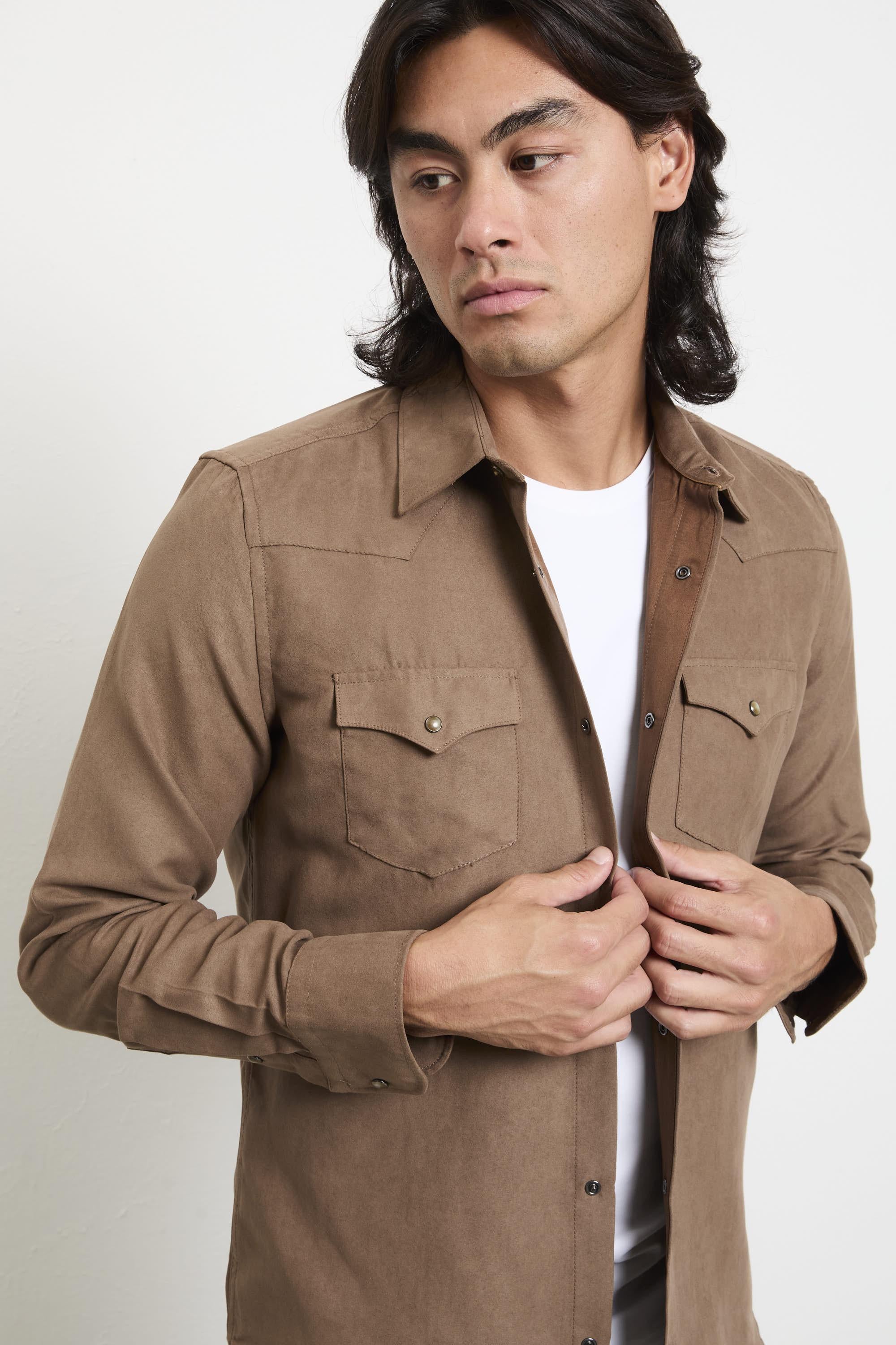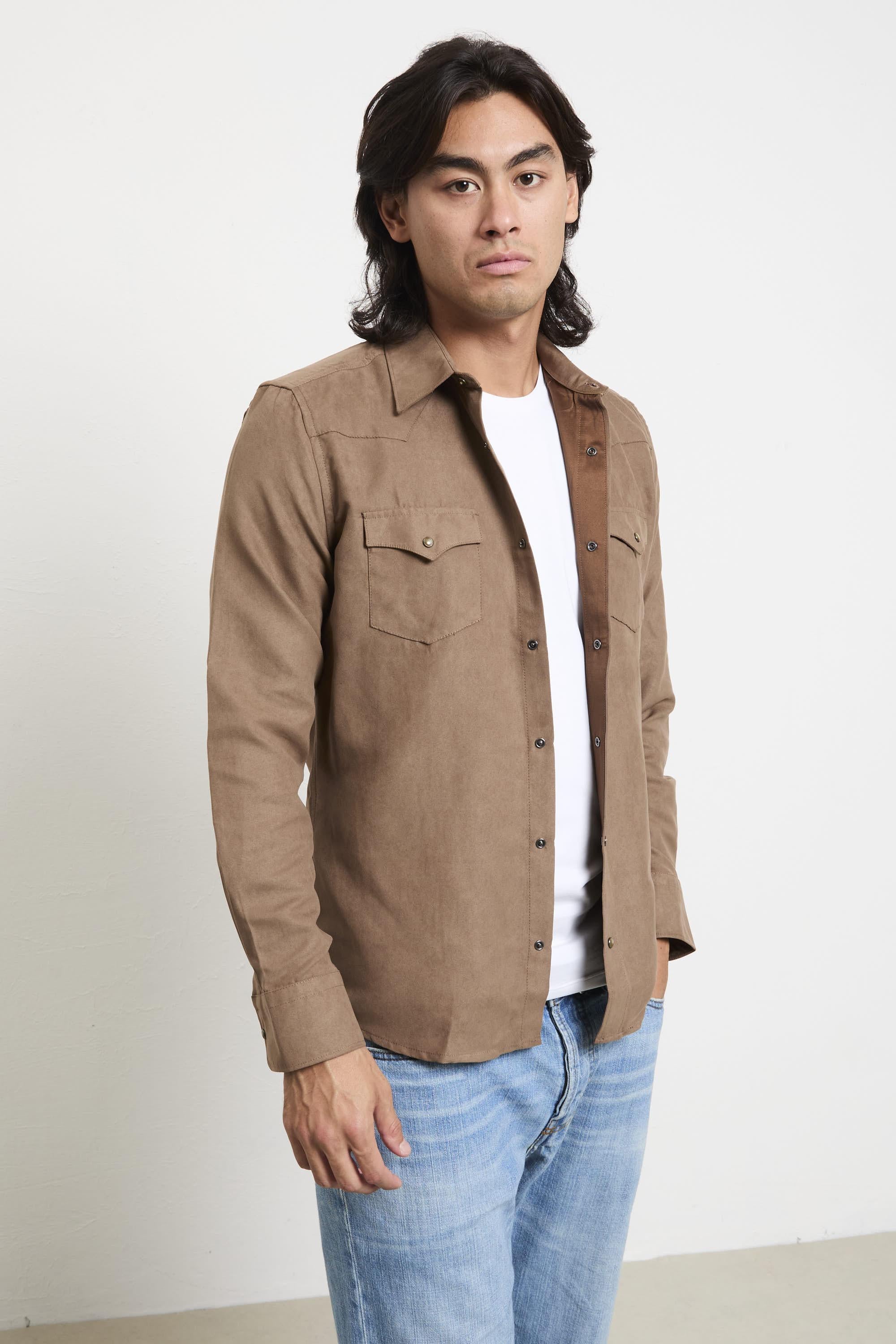 La camicia Alley Docks in sabbia, realizzata in vegan suede, è un capo elegante e versatile che unisce comfort e sostenibilità. La sua tessitura morbida e leggera è perfetta per un look casual-chic, abbinata a pantaloni slim e sneakers, o per un outfit più formale con pantaloni chino e scarpe derbi. Un must-have per chi cerca uno stile sofisticato e responsabile. Un capo versatile e sostenibile che aggiunge eleganza e comfort al tuo guardaroba. Modello: camicia con colletto classico, tasche sul petto e fondo stondato Vestibilità: regolare Composizione: 100% vegan suede Taglia indossata: M Colore: sabbia Logo: sulla parte interna Chiusura: bottoni automatici Tasche: 2 tasche sul petto Fondo: stondato