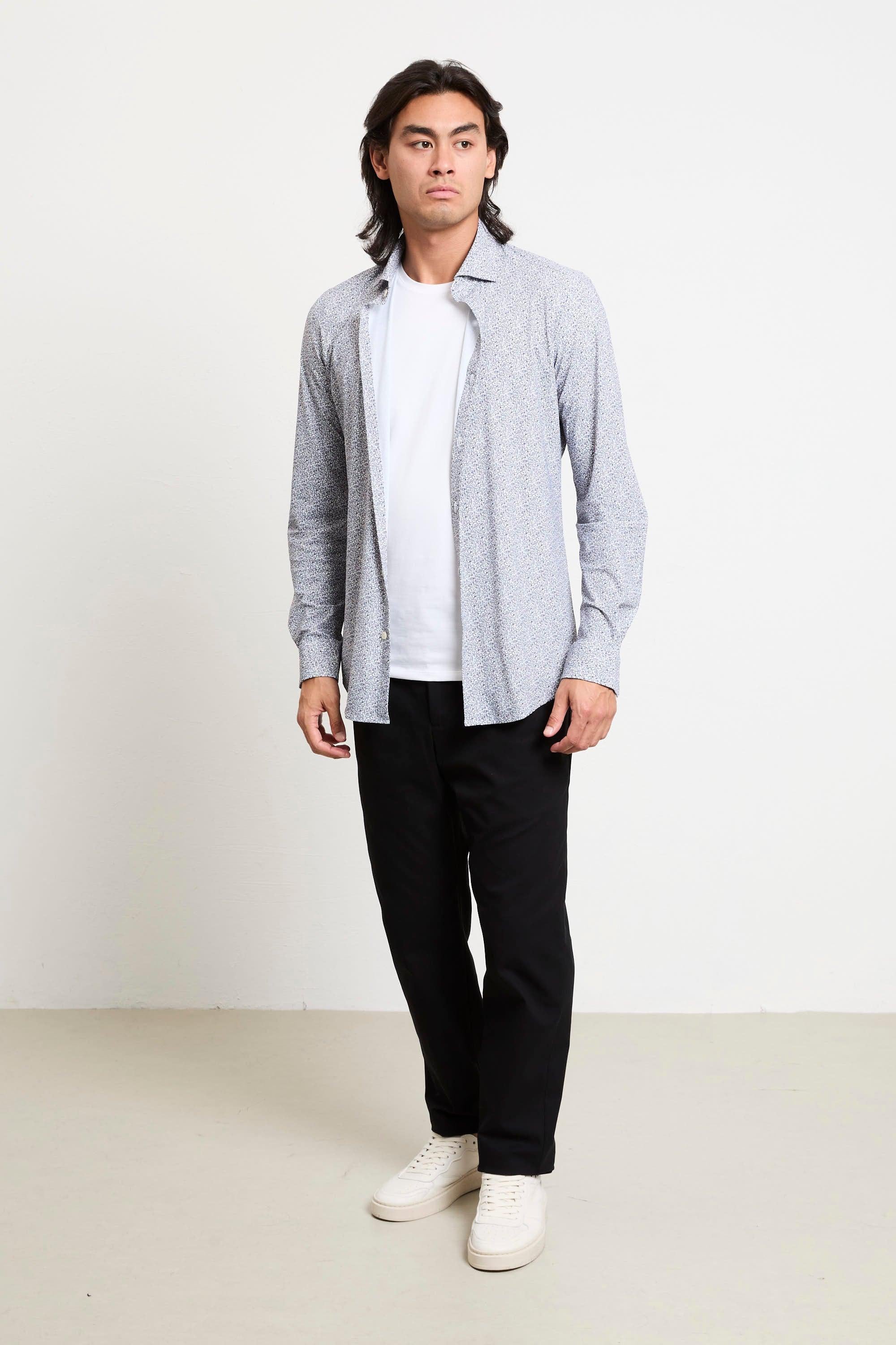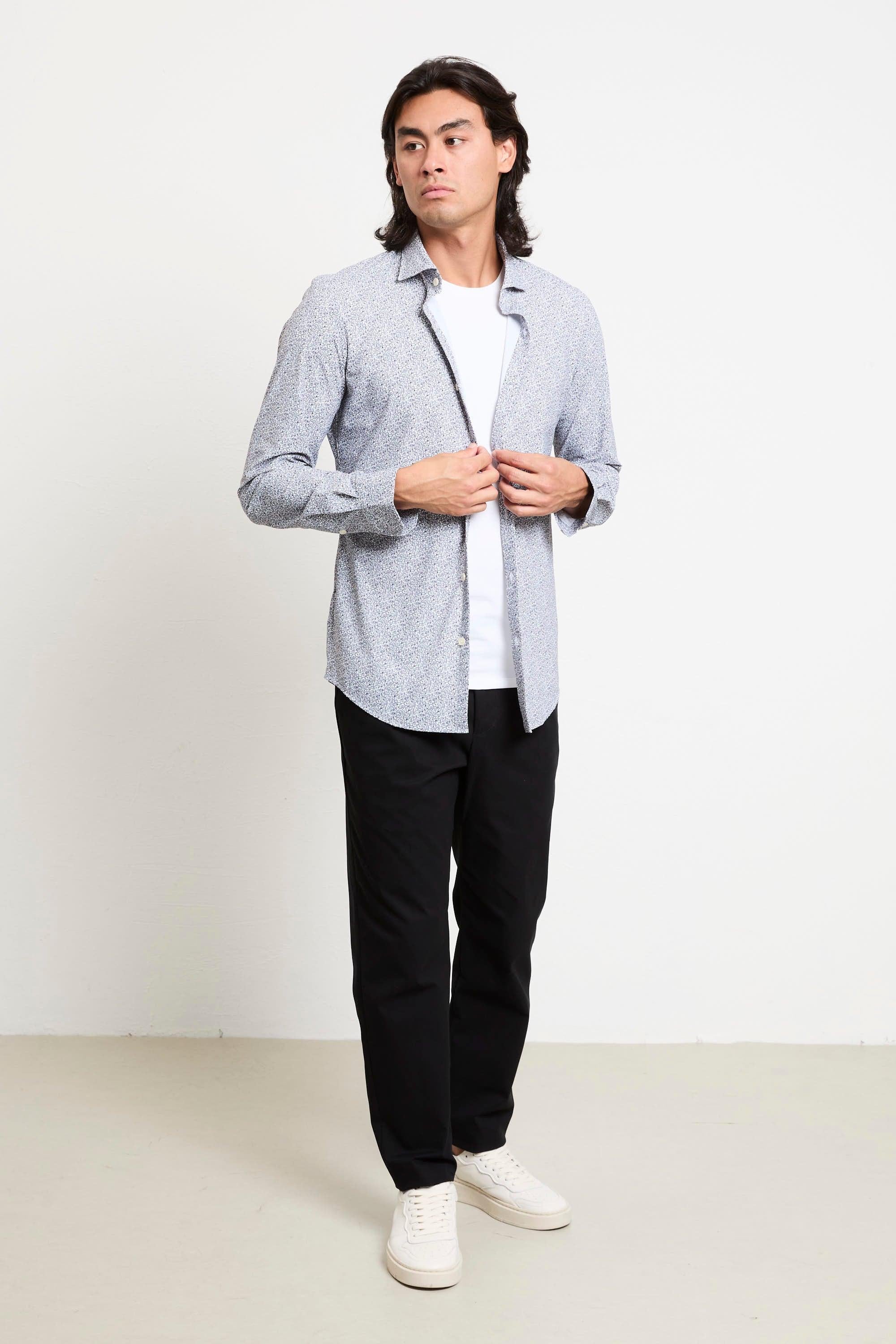 La camicia non-stiro con fantasia a fiori è un capo versatile che unisce comfort e uno stile moderno. Realizzata in un mix di tessuti tecnici che offre una vestibilità regolare che la rende perfetta per un look casual ma curato. Abbinala a pantaloni chinos e mocassini per un outfit elegante e rilassato, oppure a jeans e sneakers per un look più casual ma comunque raffinato. Un capo che non richiede manutenzione e che si adatta facilmente a ogni occasione. Un capo pratico e versatile, perfetto per chi cerca un look elegante senza sacrificare la comodità. Modello: camicia non-stiro con fantasia a fiori, colletto classico Vestibilità: regolare Composizione: 76% poliammide, 24% elastan Taglia indossata: M Colore: grigio Logo: sulla parte interna Chiusura: bottoni Fondo: stondato