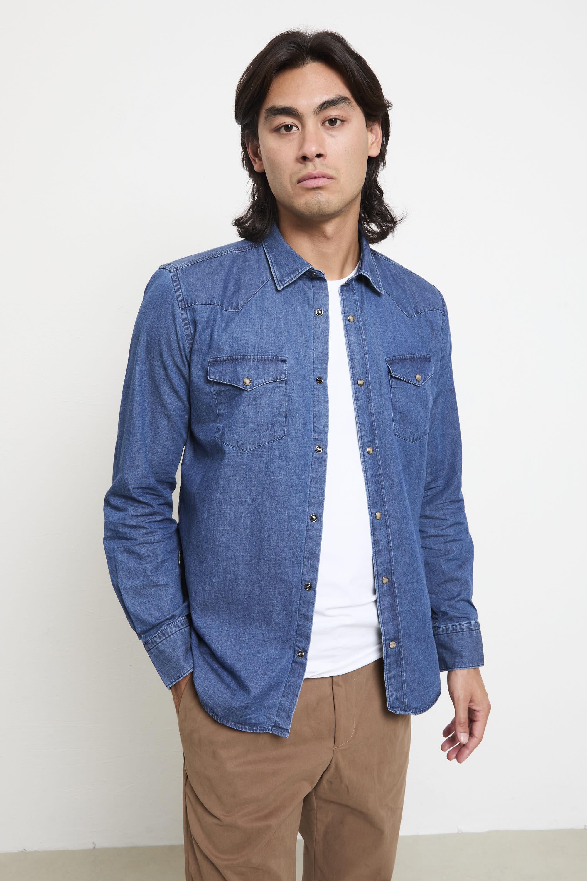 Questa camicia di jeans con lavaggio medio è un capo essenziale che unisce praticità e stile senza tempo. Il lavaggio scuro le conferisce un aspetto ricercato e versatile, mentre la vestibilità regolare e il fondo stondato la rendono adatta a molteplici occasioni. Abbinala a pantaloni chinos e mocassini per un look raffinato, oppure a jeans e sneakers per un outfit più casual ma curato. Un capo resistente e stiloso, ideale per ogni stagione. Modello: camicia di jeans con colletto classico, tasche sul petto e fondo stondato Vestibilità: regolare Composizione: 100% cotone Taglia indossata: M Colore: denim Logo: sulla parte interna Chiusura: bottoni automatici Tasche: 2 tasche sul petto Fondo: stondato