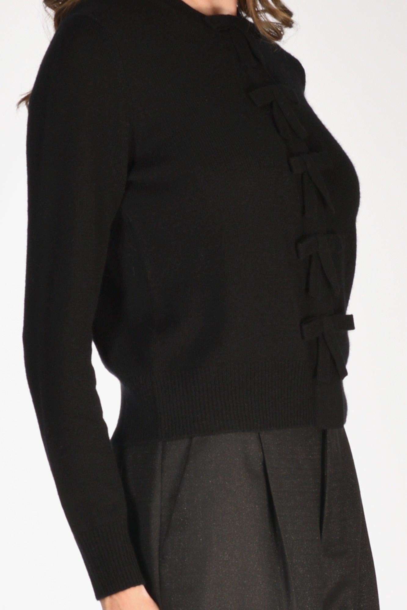 Cardigan Girocollo, Bordi E Polsi A Coste, Chiuso Da Bottoni Nascosti, Decorato Con Finti Fiocchi Piatti Frontali, Vestibilita' Fluida, Composizione 100 Cachemire, Made In China
