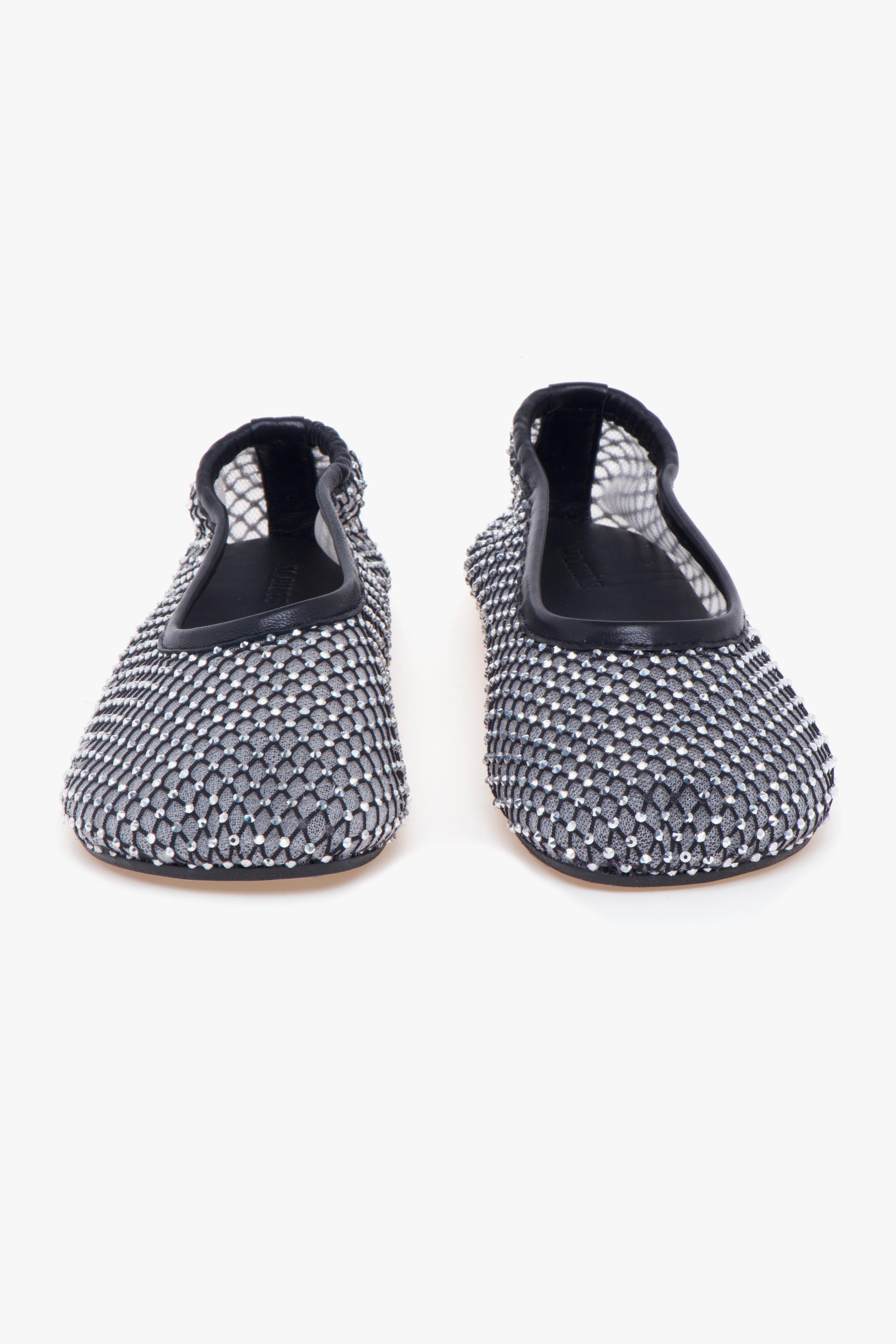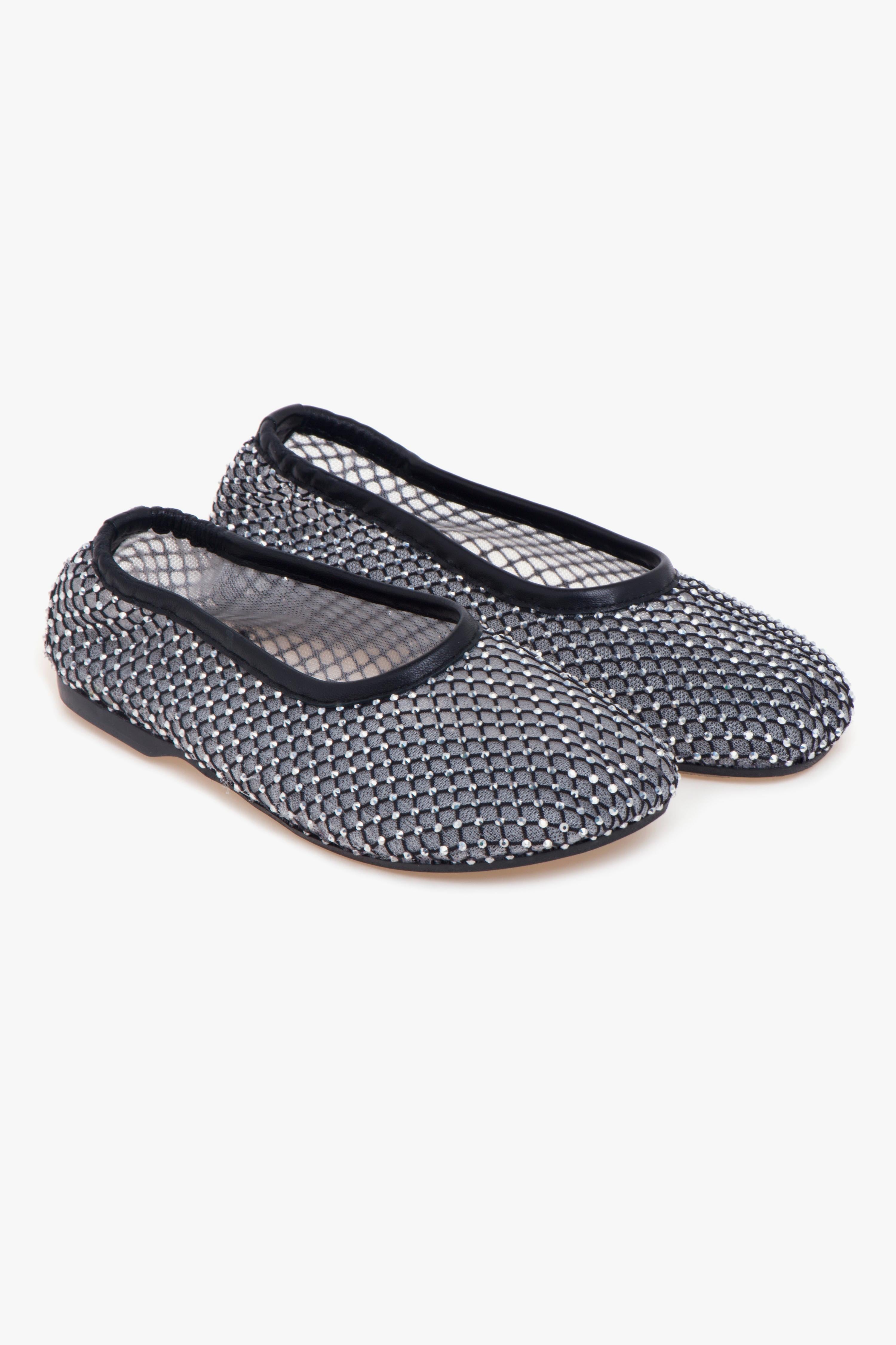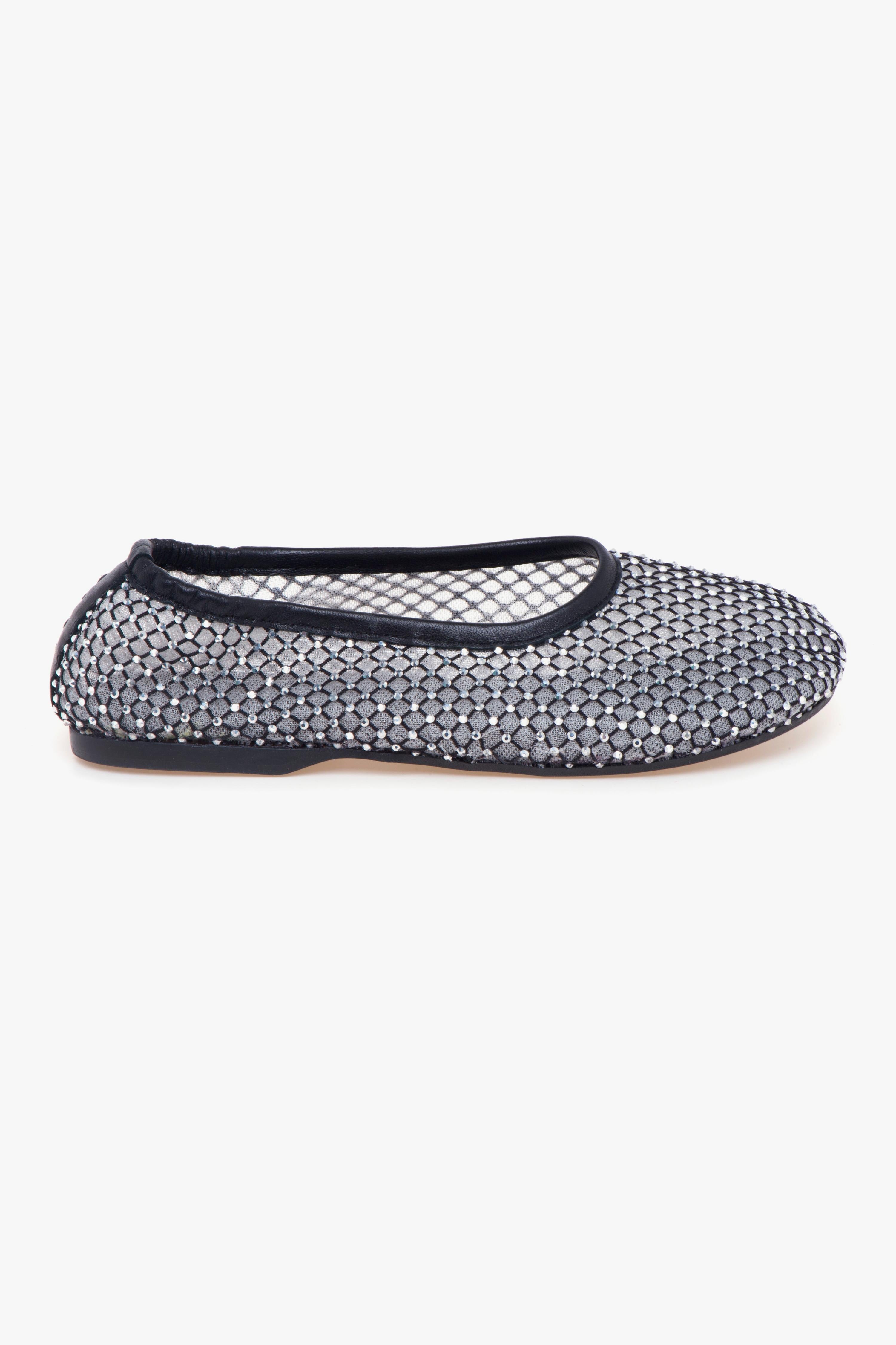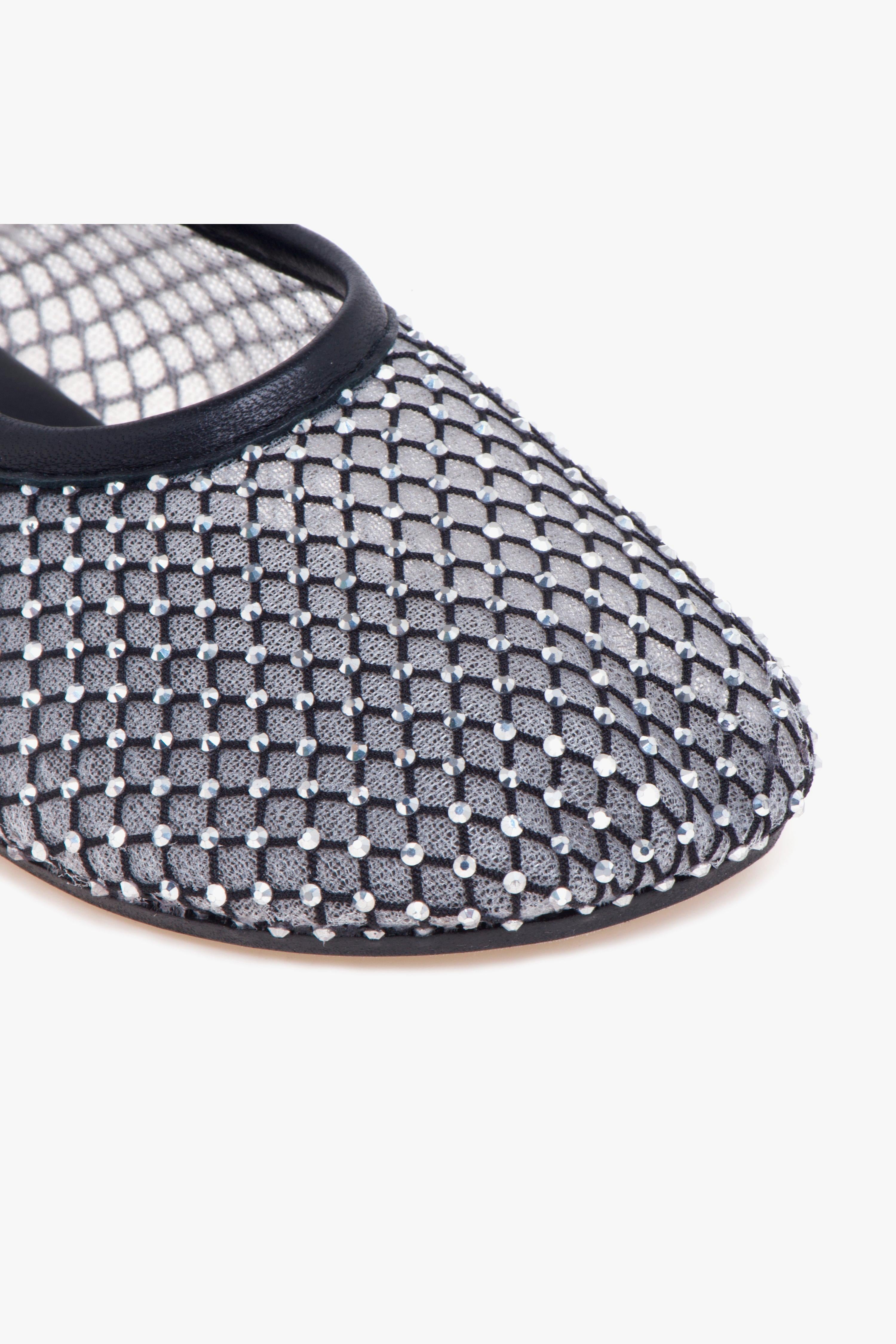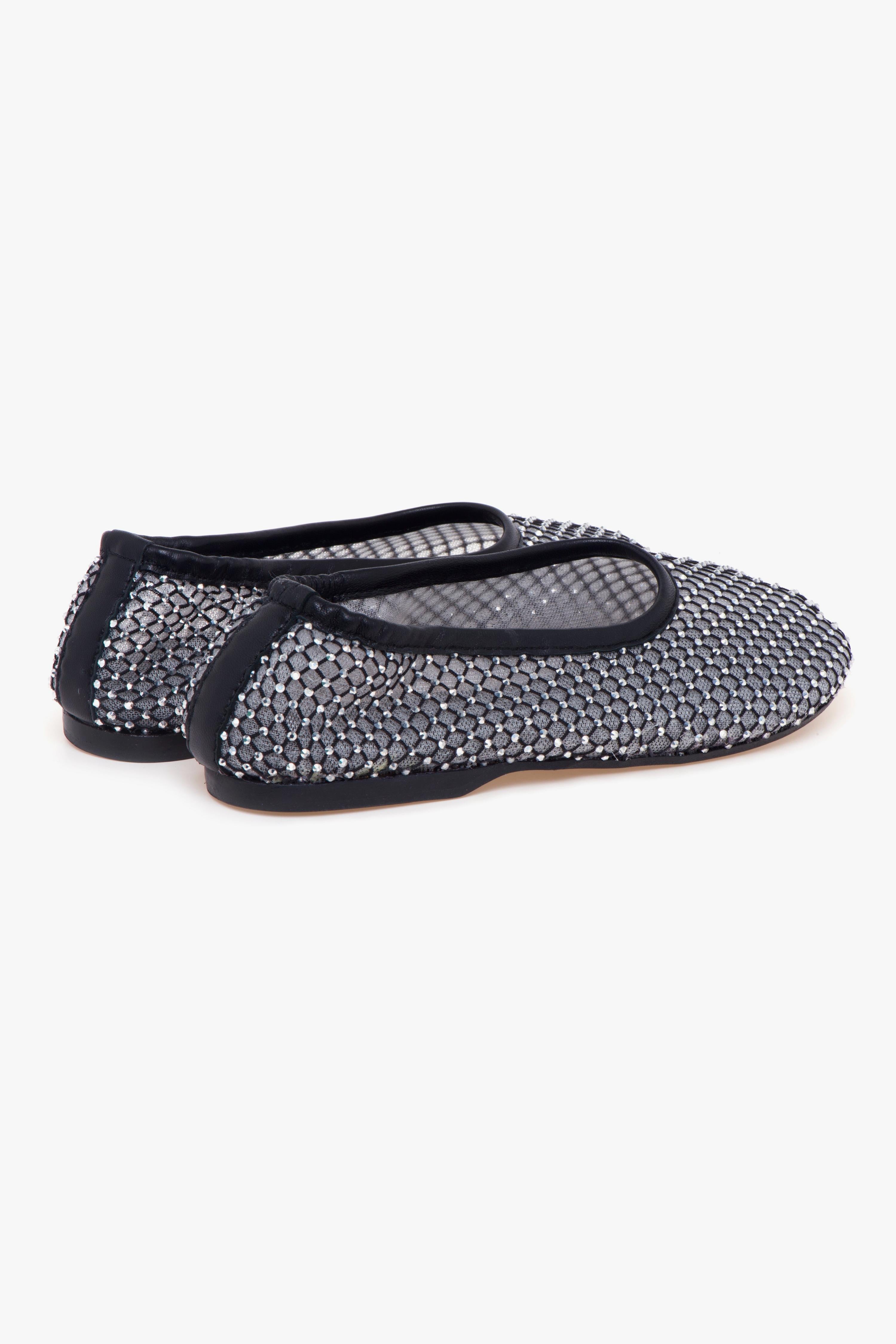 Un'eleganza moderna che gioca con trasparenze e dettagli raffinati. Le ballerine Lorain si distinguono per un sofisticato mix di materiali, che combina un delicato strato di rete bianca con una rete nera a rombi impreziosita da microstrass. Questo contrasto crea un effetto visivo unico, donando profondità e luminosità alla calzatura. Il bordo in pelle, privo di cuciture a vista, aggiunge un tocco minimalista e garantisce una finitura impeccabile.La rete leggera lascia intravedere il piede, conferendo sensualità e leggerezza senza rinunciare al comfort. Il sottopiede in pelle assicura una calzata morbida e piacevole, mentre la suola in gomma con tacco basso da 1,5 cm offre stabilità e praticità per l’uso quotidiano.Consiglio di stile: perfette per esaltare look sofisticati e moderni, queste ballerine si abbinano con facilità sia a un completo tailoring per un tocco contemporaneo, sia a un abito midi leggero per un effetto femminile e ricercato. Per un twist più audace, prova a indossarle con jeans cropped e una camicia oversize, giocando con il contrasto tra casual e chic.# Tomaia in pelle e tessuto retinato. # Bordo elasticizzato. # Fodera in tessuto. # Sottopiede in pelle. # Suola in gomma.