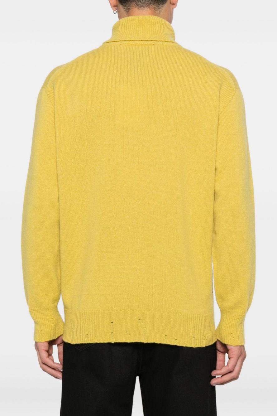 Il colore giallo, luminoso e dal carattere deciso, aggiunge un tocco di personalità al modello, pur mantenendo una linea pulita ed elegante. Il collo alto offre protezione e un profilo sofisticato, mentre le maniche lunghe completano una silhouette classica e versatile, ideale sotto cappotti o giacche, o come protagonista di un look minimal.