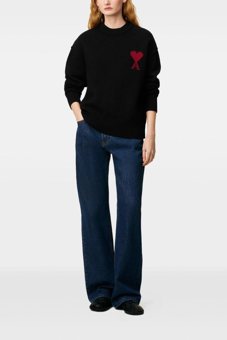 ami alexandre mattiussi Ami Paris Maglia Nero Uomo Logo Cuore ad Intarsio