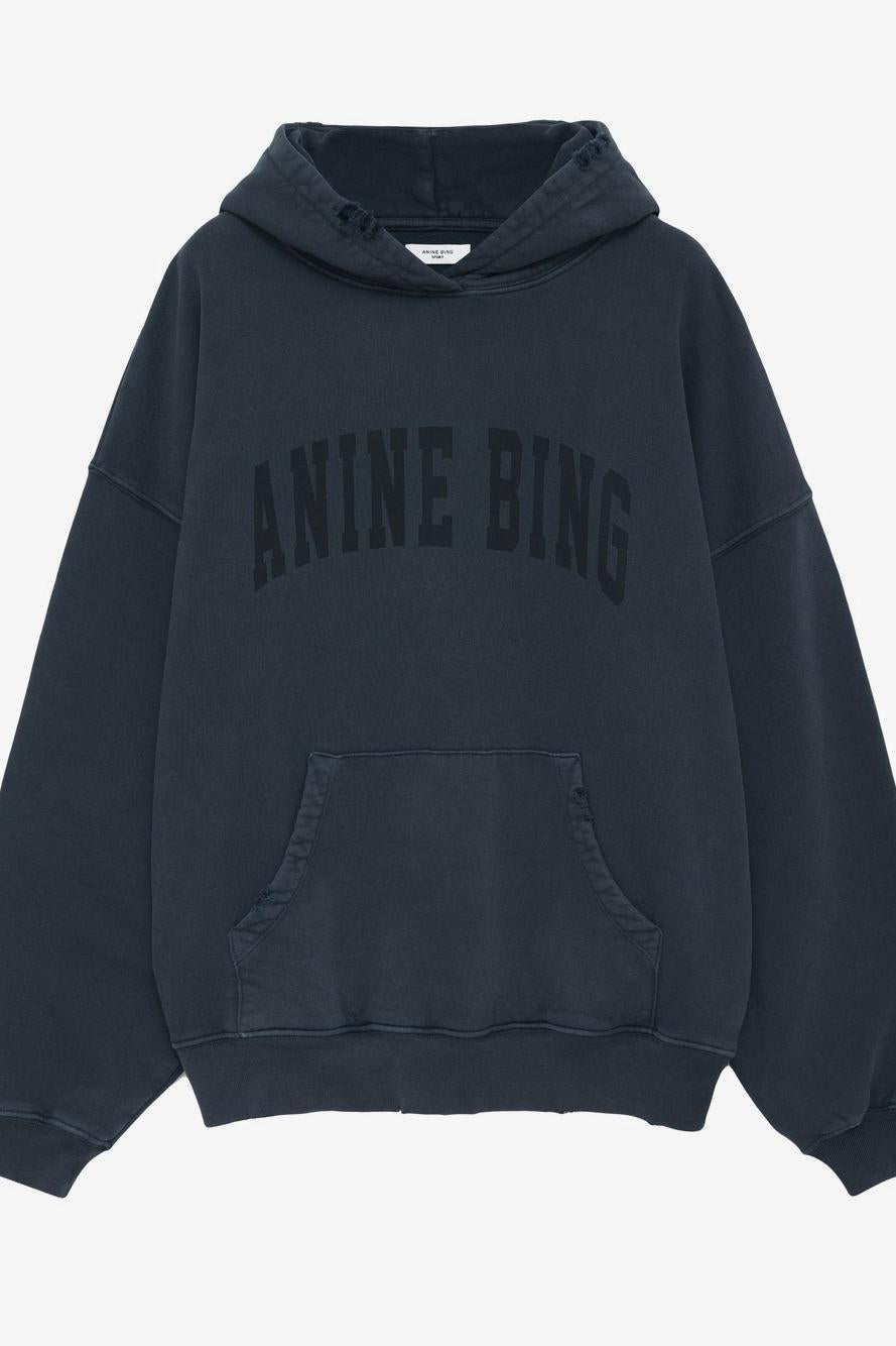 anine bing Felpa Blu Donna Cappuccio Stampa Logo