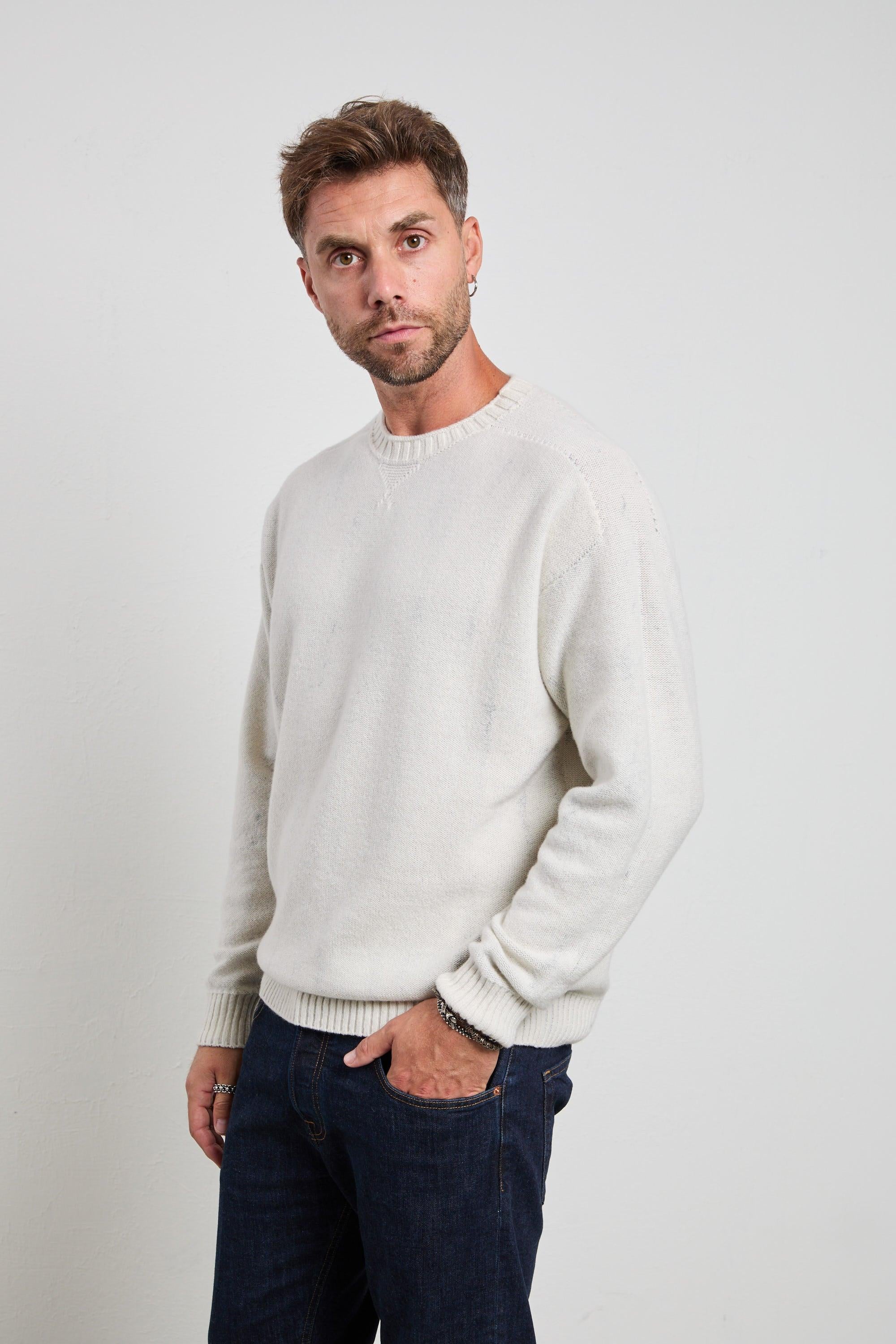Maglia a girocollo a manica lunga, realizzata con filati pregiati e senza cuciture per garantire una vestibilità morbida e un comfort superiore. La lavorazione pulita con polsi e fondo a costa larga dona al capo un aspetto minimal ed elegante, adatto sia al tempo libero che a contesti più formali. Ogni pezzo è unico e combina artigianato di qualità e design contemporaneo, interamente Made in Italy. La morbidezza del filato e la reversibilità del capo la rendono versatile e adatta a molteplici occasioni, dal lavoro agli appuntamenti informali. Perfetta per look maschili moderni, si abbina con pantaloni sartoriali grigi o blu e mocassini in pelle per un outfit elegante e raffinato. Per un effetto più casual chic, si può indossare con jeans scuri e sneakers minimal o sotto giacca bomber o trench leggero, per un mix di comfort e stile urbano contemporaneo. Modello: girocollo a manica lunga, lavorazione senza cuciture e reversibile Vestibilità: morbida Vita: lunghezza e caduta del capo pensate per aderire in modo fluido sul corpo Polsi e fondo: a coste elasticizzati Colore: grigio Composizione: 90% lana, 10% cashmere Fondo e polsi: fondo dritto, polsi e fondo rifiniti a costa larga Taglia indossata in foto: 52 Made in: Italy