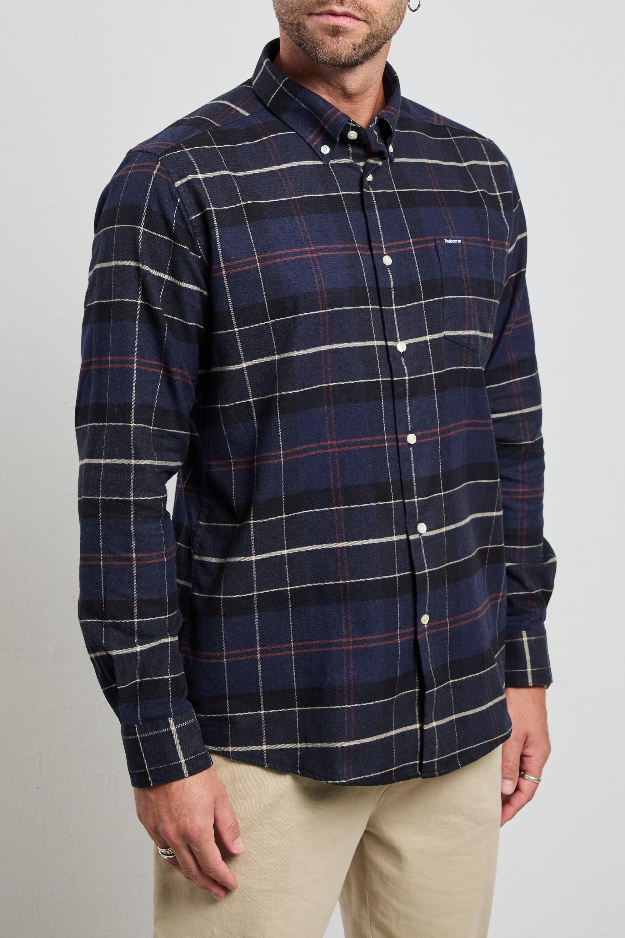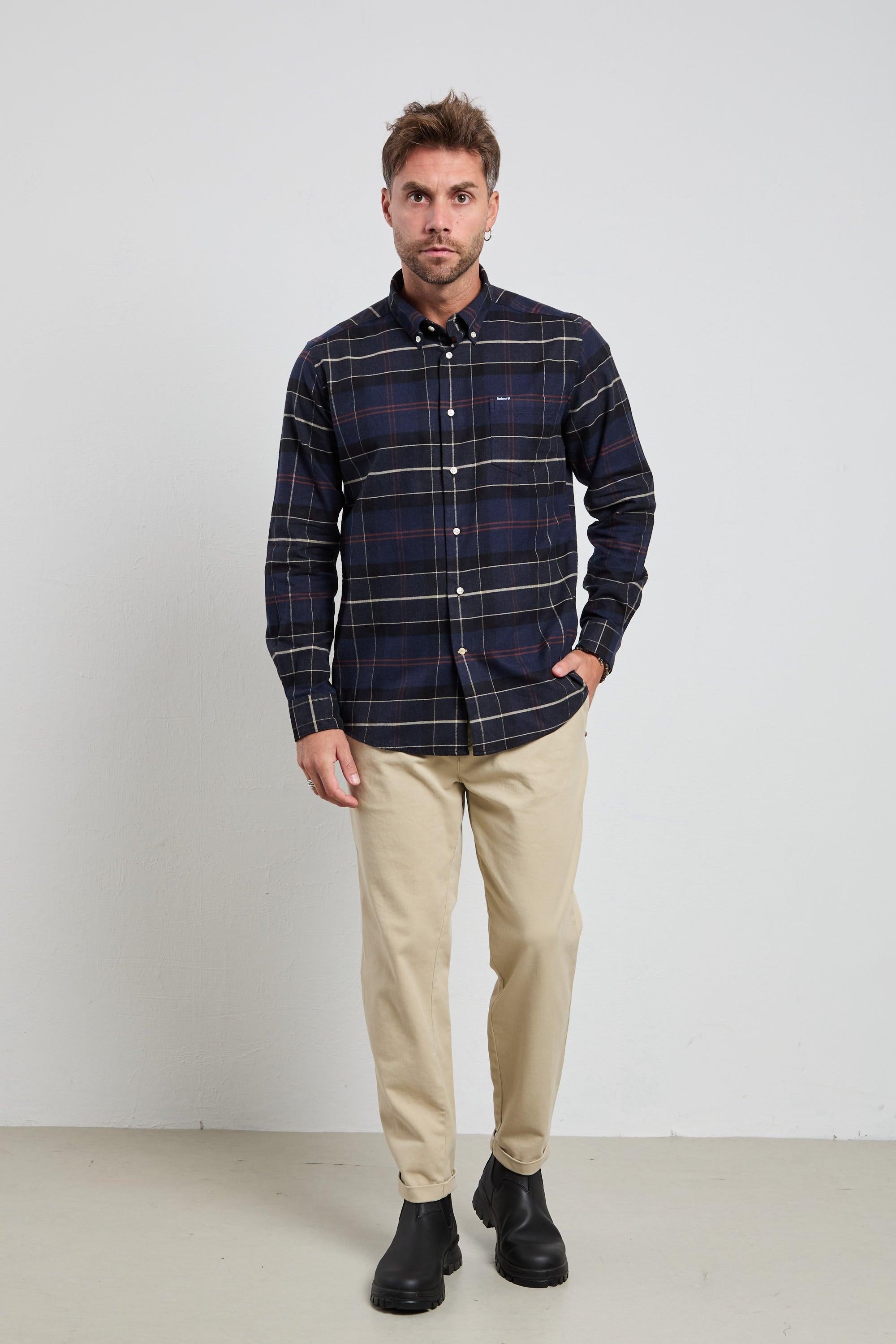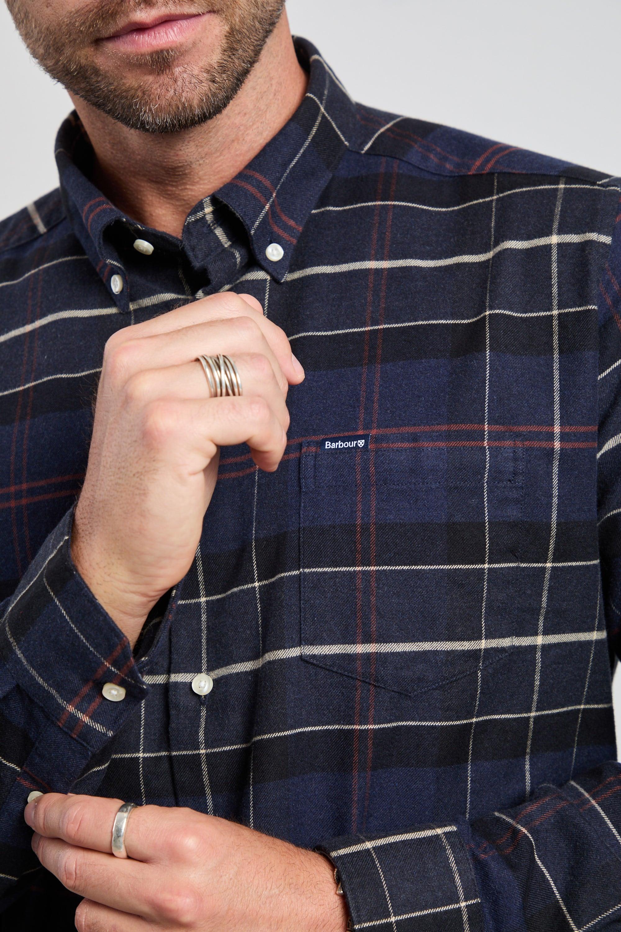 La camicia Barbour ha uno stile versatile che unisce stile e funzionalità. Con il suo motivo tartan nei toni del blu, è ideale per un look casual-chic. Perfetta sopra una t‑shirt bianca o sotto una giacca in pelle, offre comfort e stile in ogni occasione. Il fondo è leggermente arrotondato e le tasche sul petto con patta aggiungono praticità senza rinunciare all’eleganza. Vestibilità: regolare Colore: blu con motivo tartan Composizione: 100% cotone flanella Taglia indossata: L Fondo: leggermente arrotondato Tasche: due tasche sul petto con patta Logo: ricamo discreto sul taschino sinistro