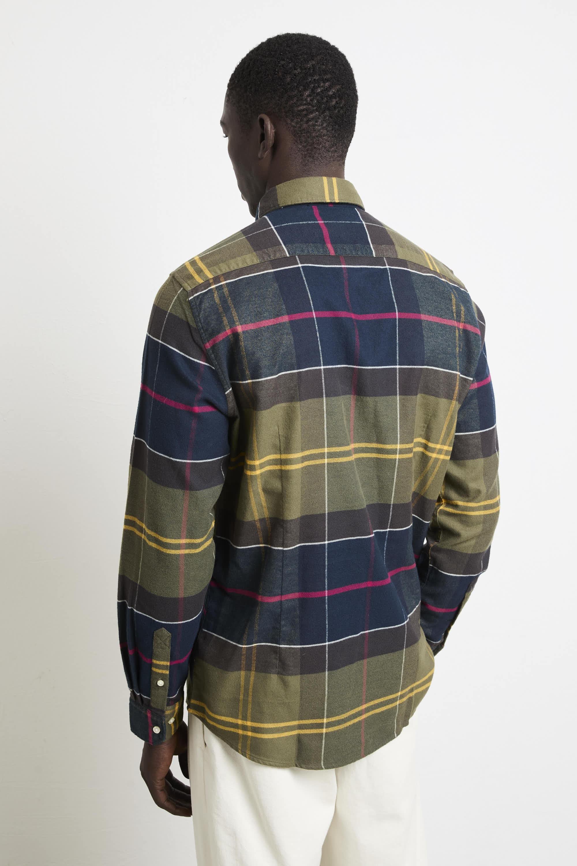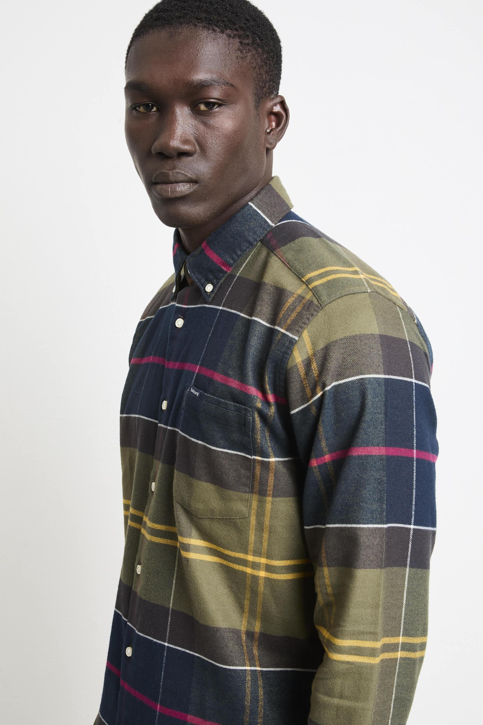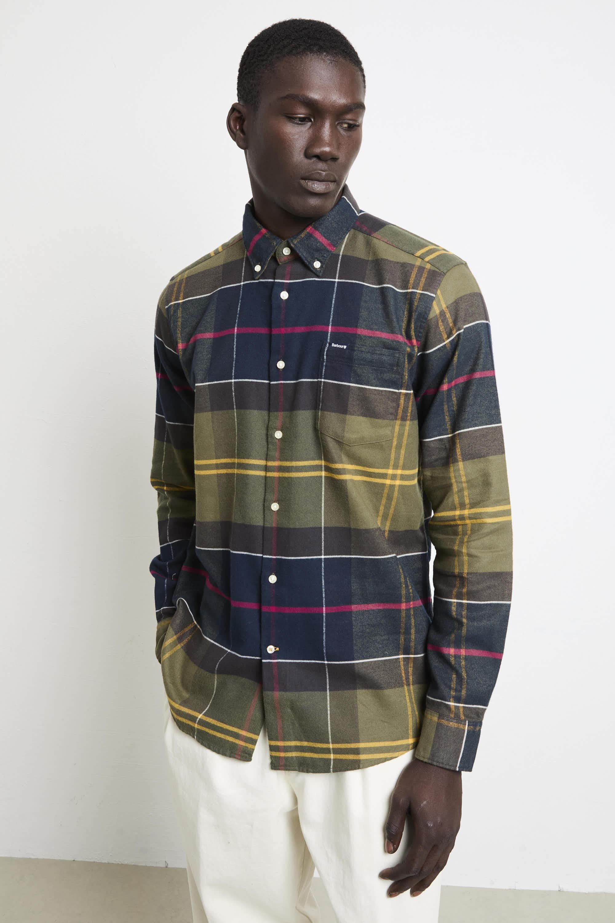 La camicia Barbour unisce stile e funzionalità. Con il suo motivo tartan nei toni del verde, blu navy e giallo, è perfetta per un look casual-chic. Provala sopra una camicia chambray per un effetto stratificato, abbinala a un pantalone chino beige per un outfit da città o completa con un gilet in lana per le giornate più fresche. Il fondo è leggermente arrotondato e le tasche sul petto con patta aggiungono praticità senza rinunciare all’eleganza. Vestibilità: regolare Colore: verde, blu navy e giallo con motivo tartan Composizione: 100% cotone flanella Taglia indossata: L Fondo: leggermente arrotondato Tasche: due tasche sul petto con patta Logo: ricamo discreto sul taschino sinistro