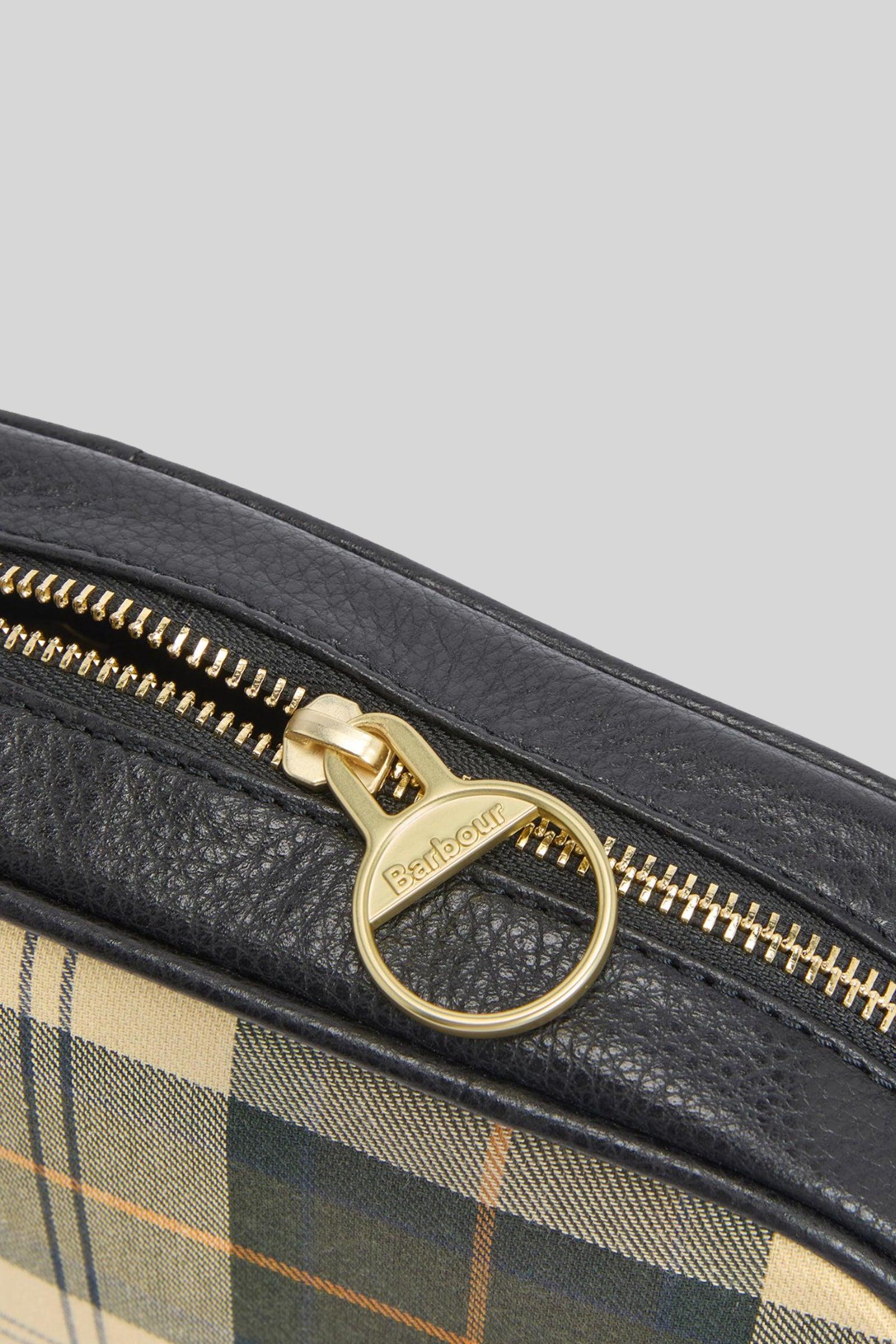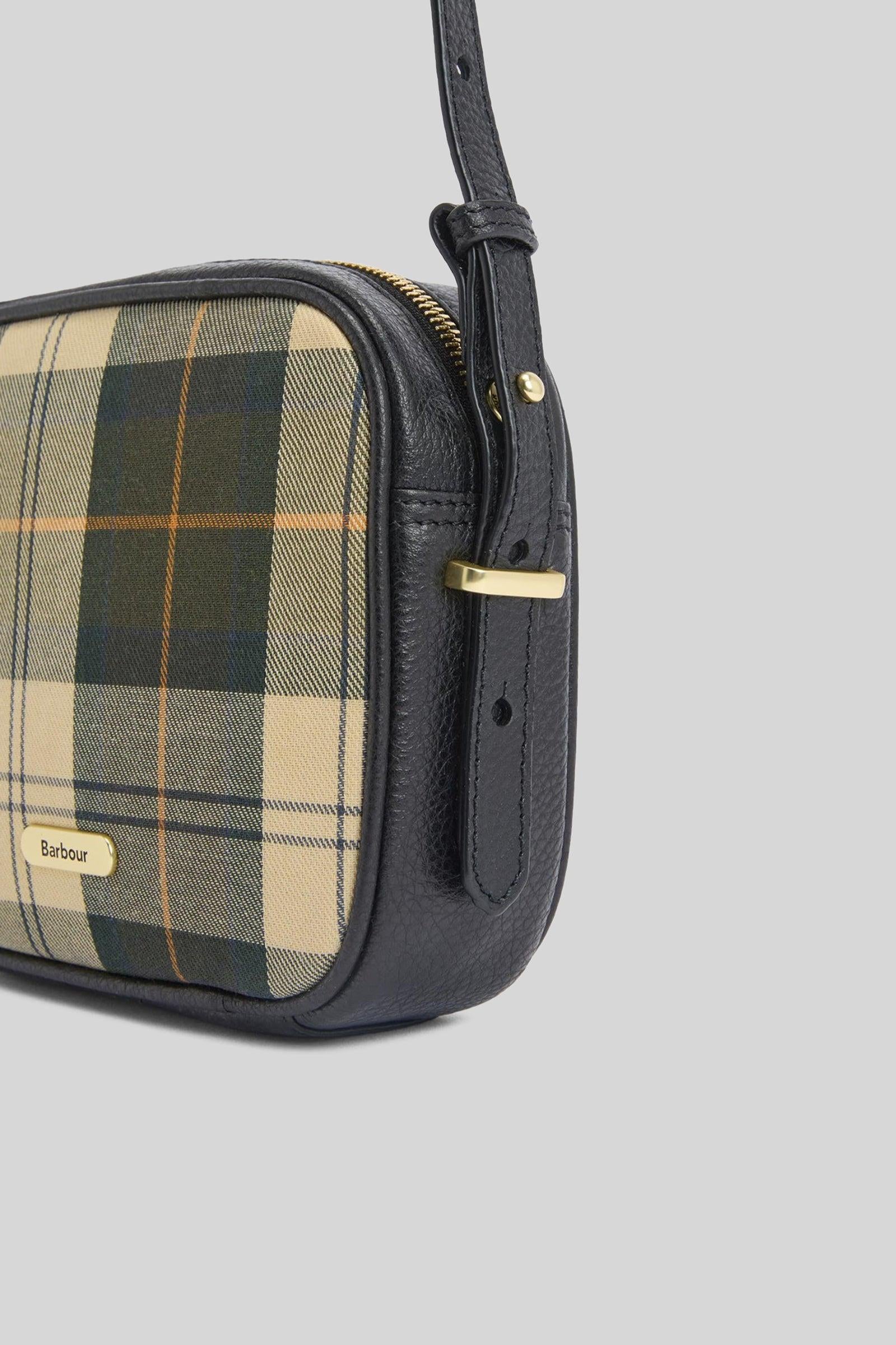 Un accessorio dallo stile intramontabile, la Daphne è la camera bag firmata Barbour realizzata in iconico tessuto tartan con dettagli in pelle pieno fiore per un look raffinato e resistente nel tempo.Dotata di zip con tiretto ad anello ispirato alle giacche cerate Barbour e metalleria in ottone anticato, è perfetta per aggiungere un tocco heritage ai tuoi outfit quotidiani. Include dust bag logata per riporla e proteggerla.Dettagli prodotto:- Materiale: 100% cotone con dettagli in pelle- Misure: 19 × 15,5 × 5 cm- Chiusura con zip- Badge frontale in metallo con logo- Tracolla regolabile- Metalleria effetto oro opaco con logoUn’elegante compagna per ogni giornoSKU: LBA0503TN51