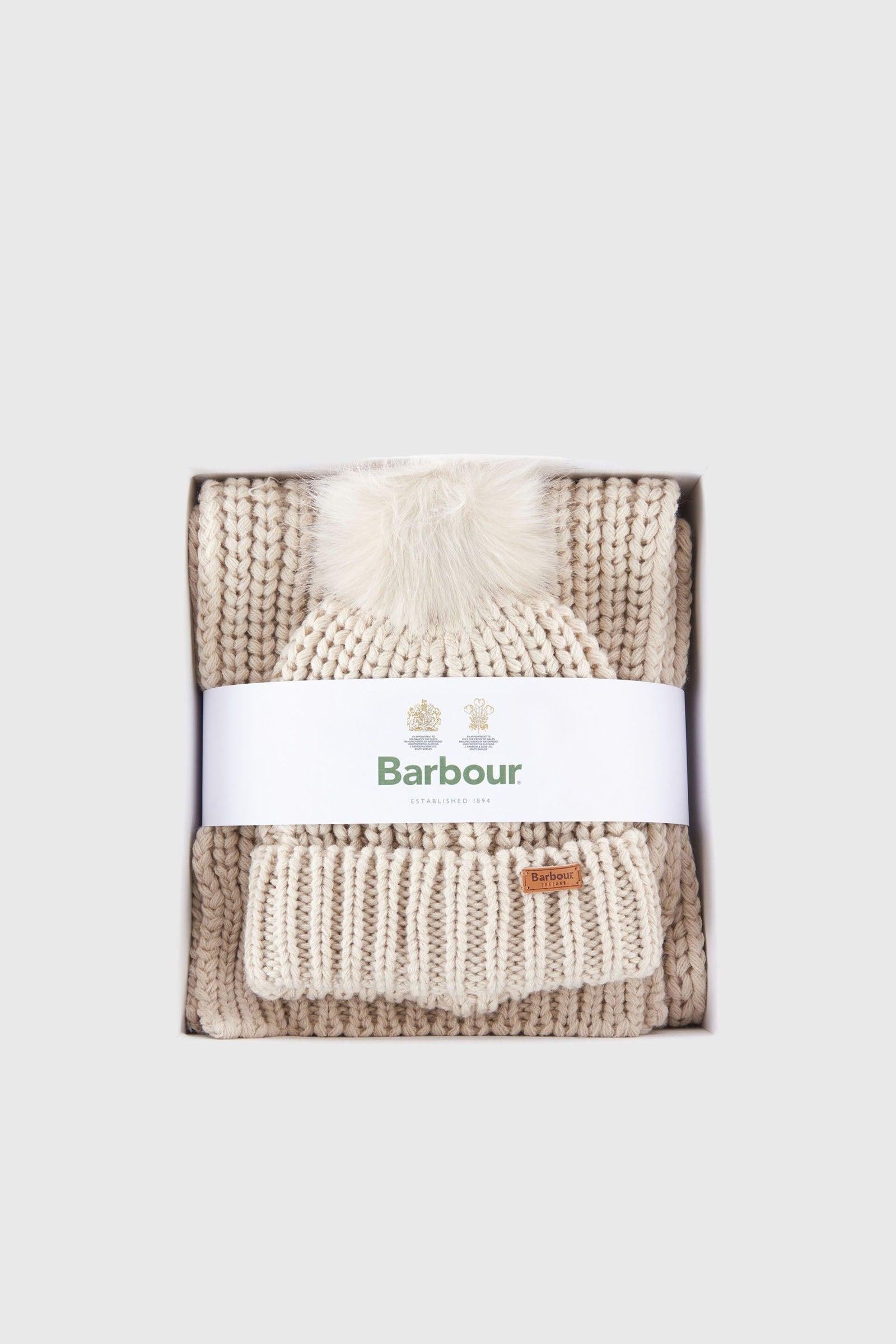 barbour Saltburn Beanie & Scarf Set Perla Donna