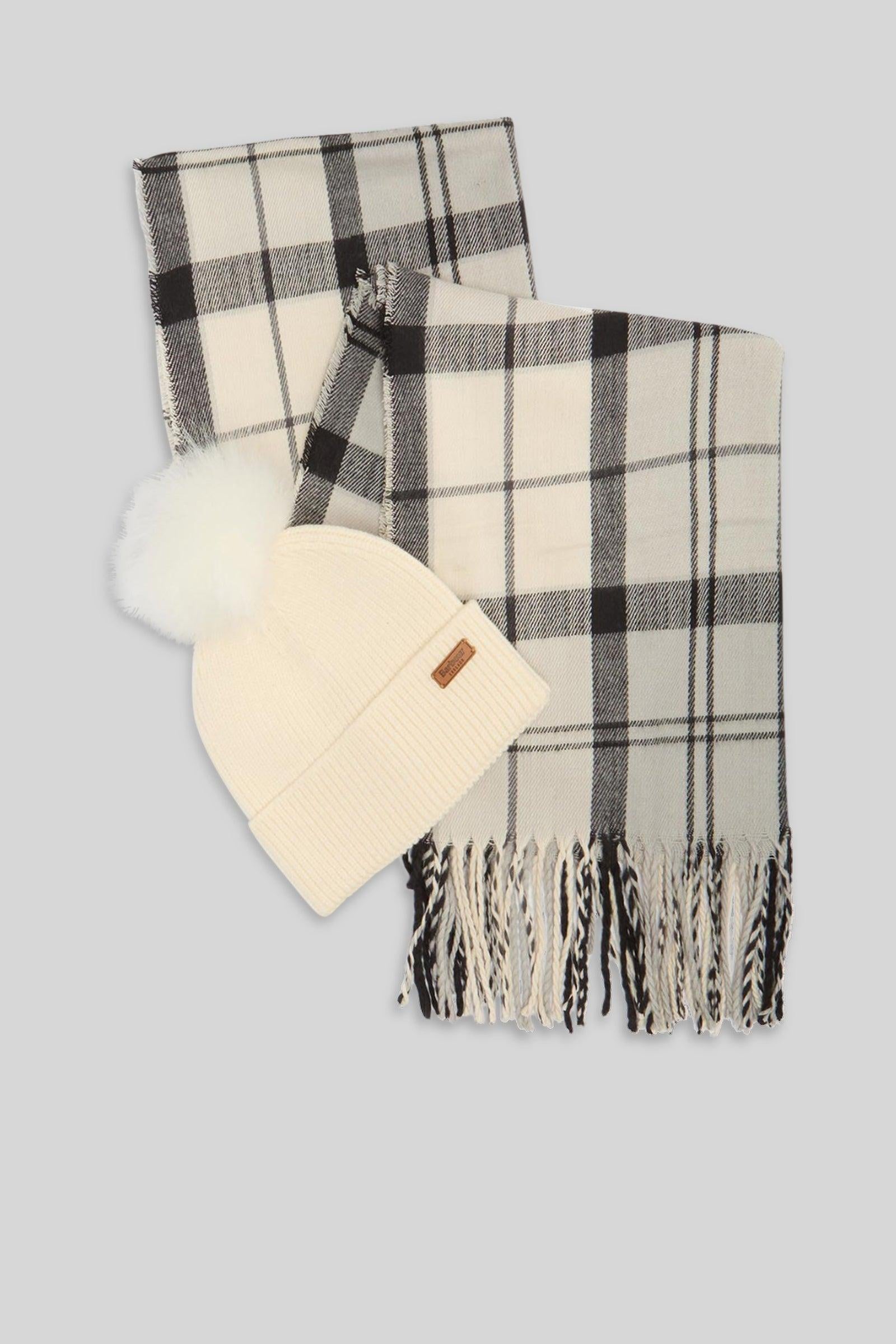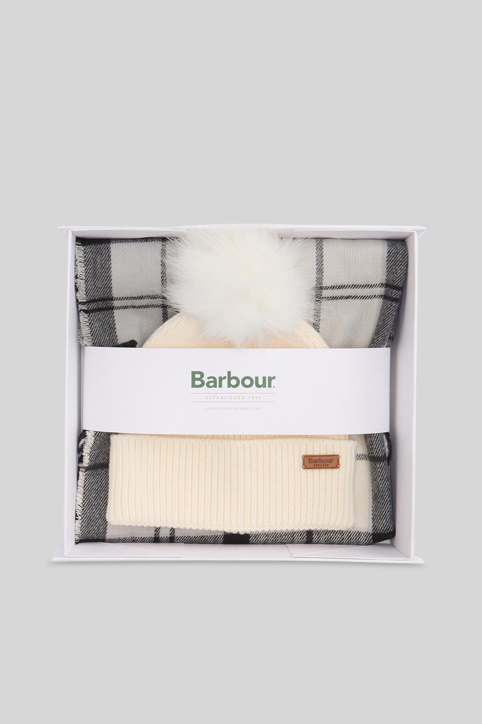 barbour Set Regalo Cappello Dover & Sciarpa Hailes Grigio/panna Donna