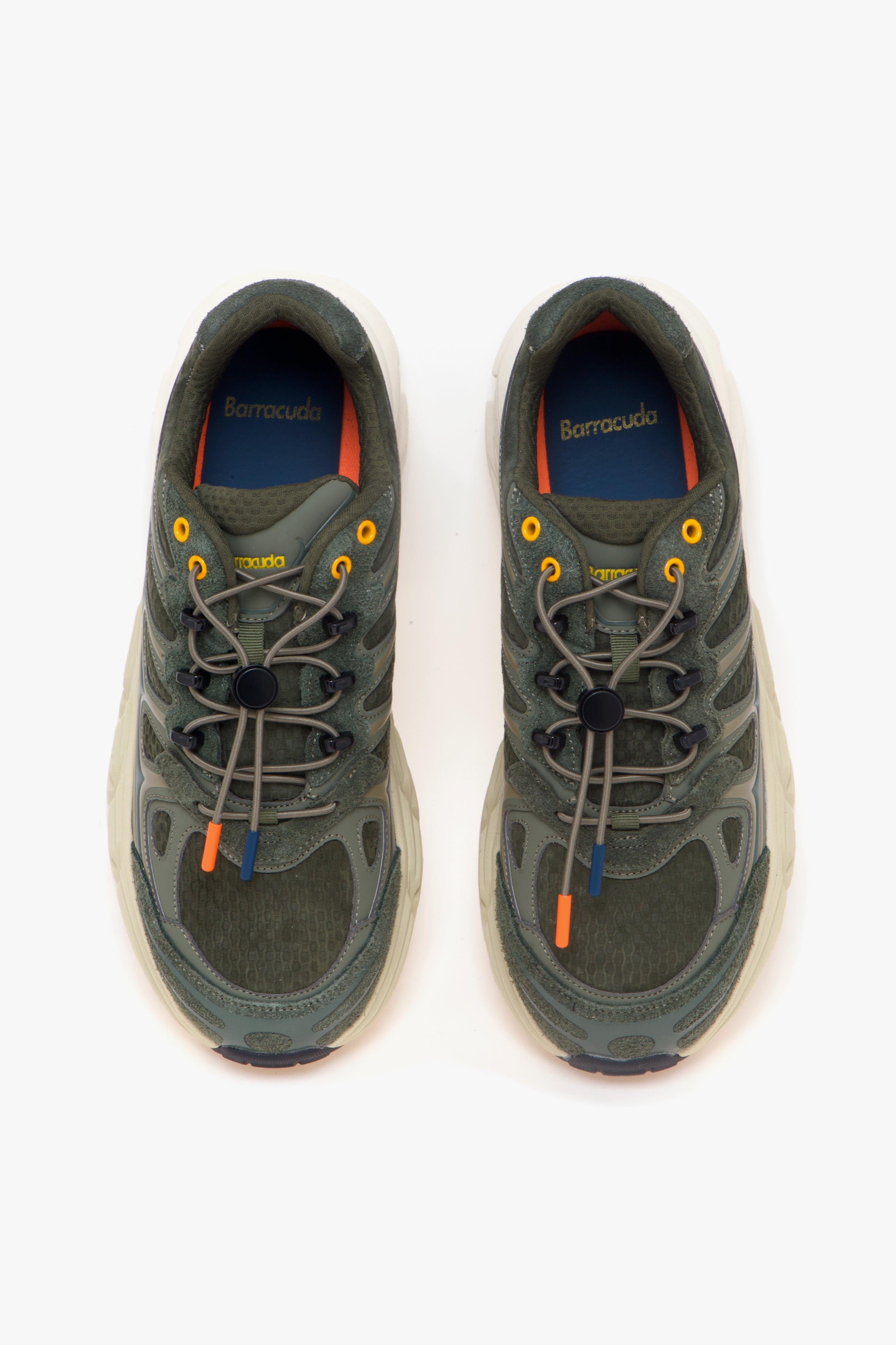 Ispirate alle calzature da running, le nuove Barracuda "Round One" sono un mix in perfetto equilibrio tra elementi provenienti dallo sport e altri dal mondo delle sneaker premium. La tomaia si distingue per elementi dalla forma tondeggiante alternando pelle e camoscio tono su tono, il tutto in perfetta armonia con i dettagli della suola. La suola, realizzata interamanete in gomma extralight e super soft, presenta un volume rialzato per agevolarne la comodità e l'ammortizzazione ad ogni passo. Infine, completano il look di qeusto modello, i lacci elasticizzati ispirati al mondo del trecking. Stile e confort si uniscono per ottenere una sneaker dal look contemporaneo perfetta per l'uso di tutti i giorni.# Tomaia in pelle e camoscio. # Fodera in tessuto. # Sottopiede estraibile in pelle. # Suola in gomma. # Made in Italy.