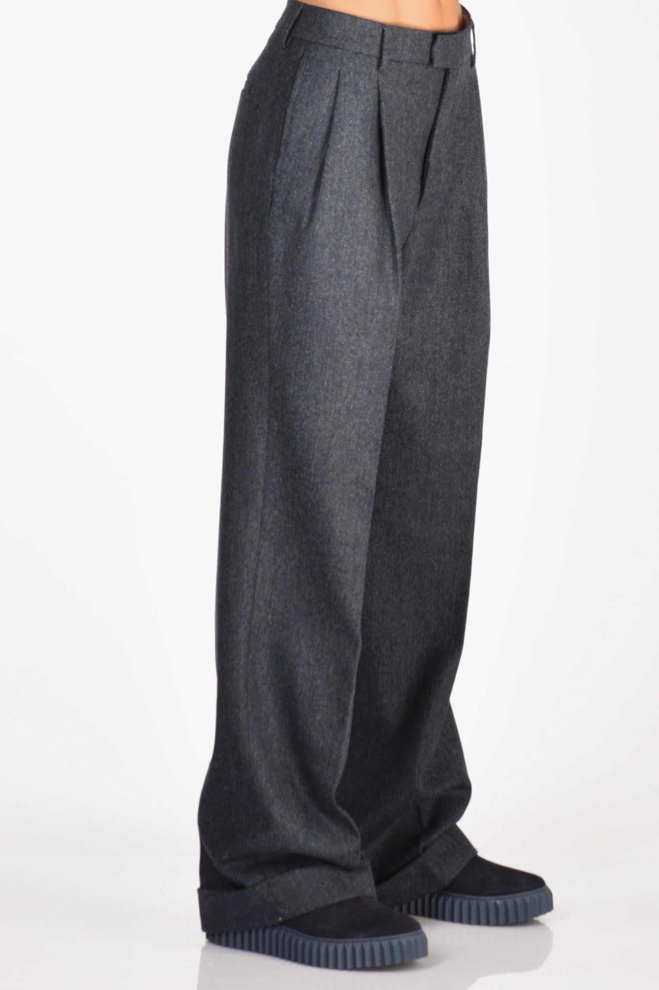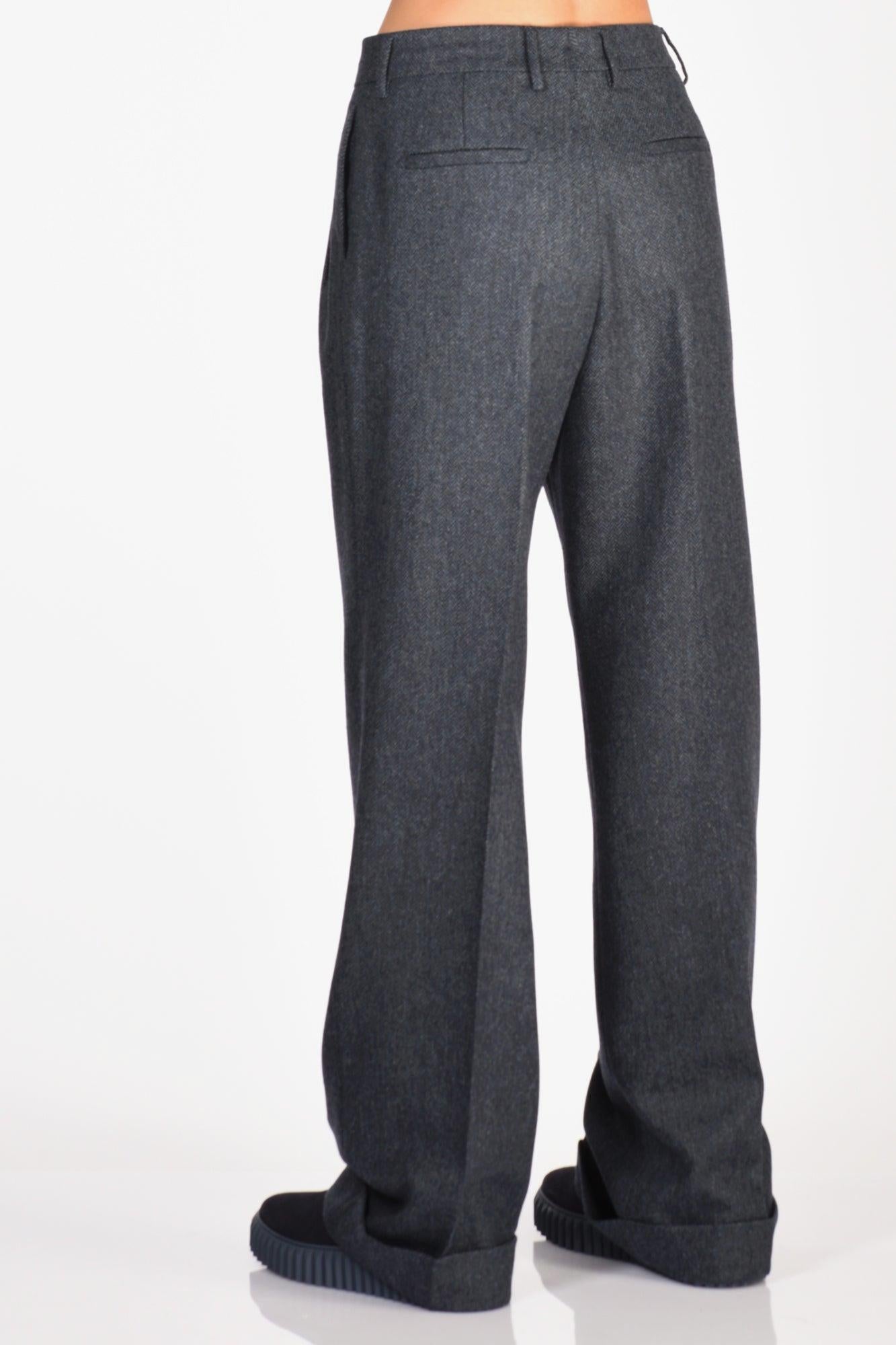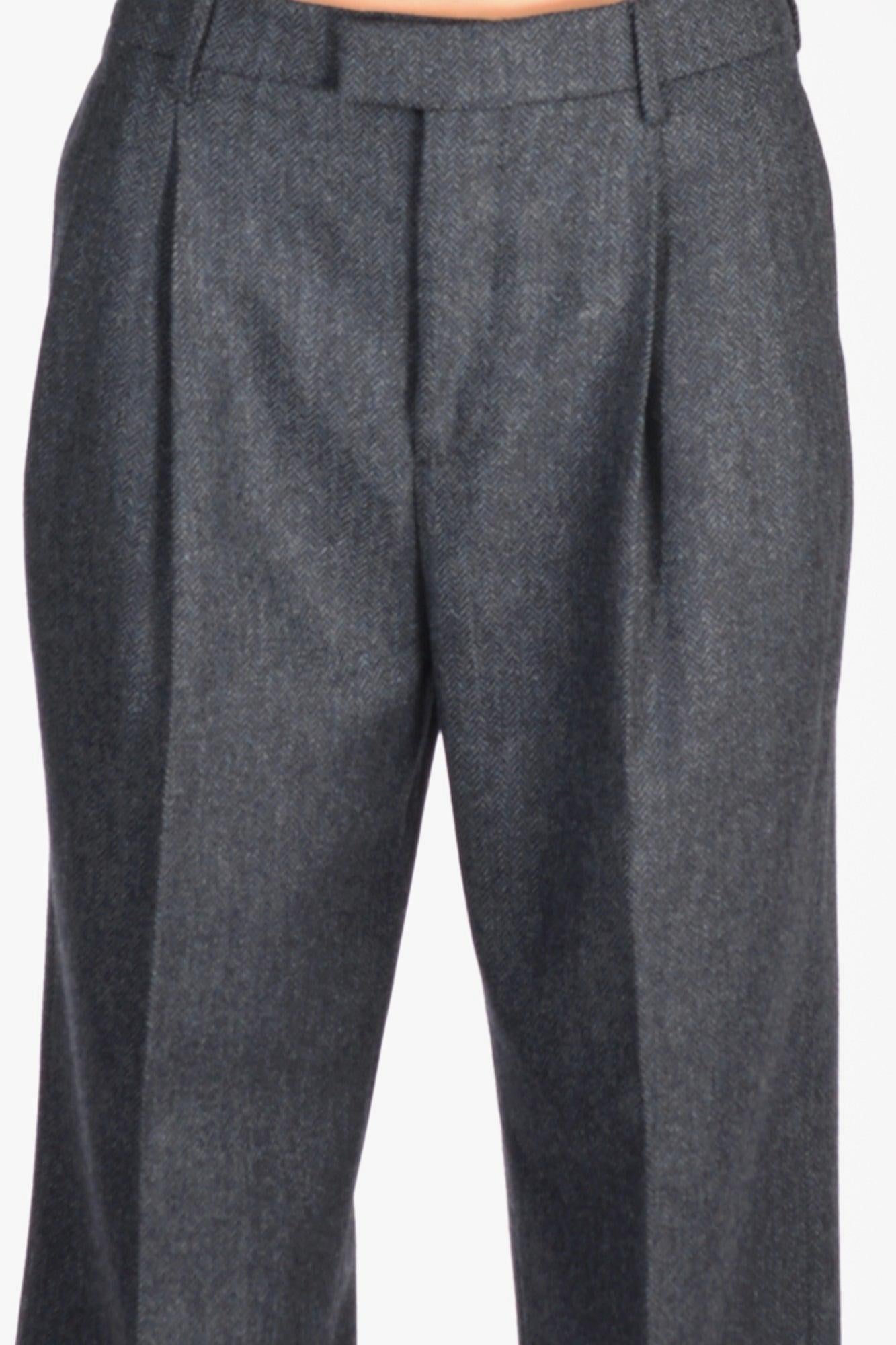 Pantalone Disegno Spina Di Pesce A Gamba Larga, Doppia Pences Frontale, Tasche Laterali Inserite E Posteriori A Filetto, Passanti In Vita, Chiusi Da Zip, Gancio Metallico E Bottone Nascosti, Fondo Con Risvolto, Vestibilita' Regular, Made In Italy, Composizione 100 Lana