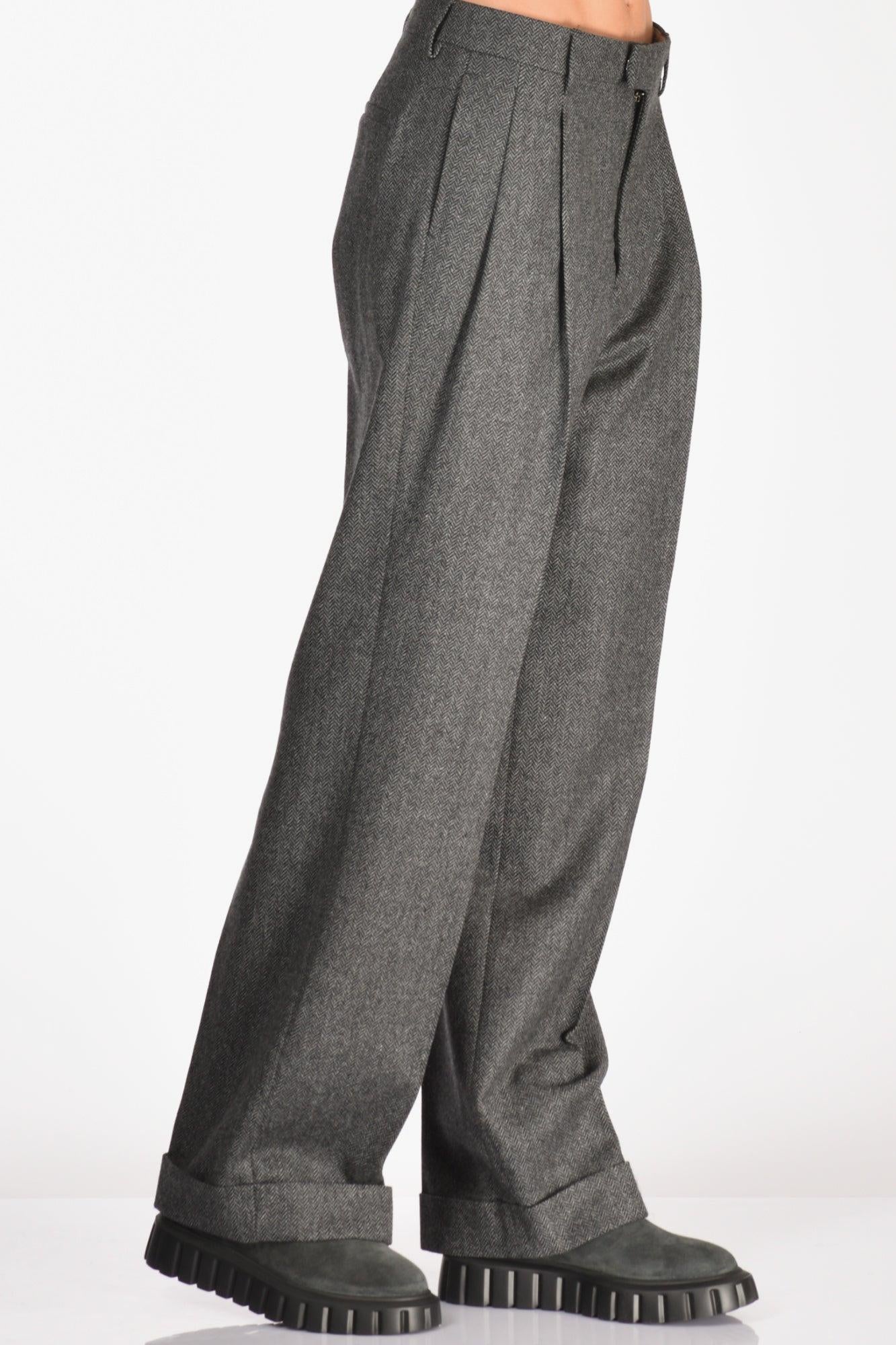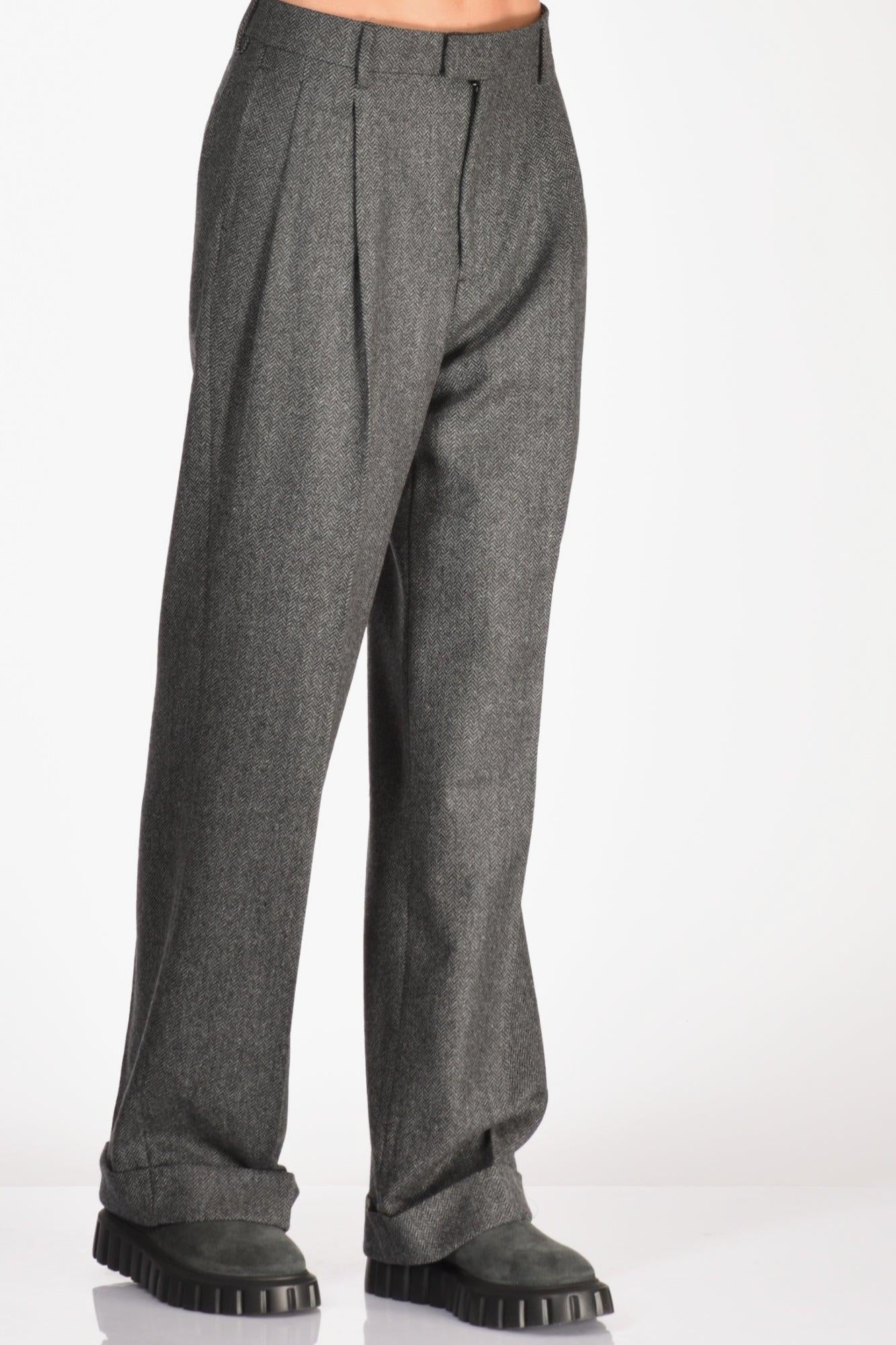 Pantalone Disegno Spina Di Pesce A Gamba Larga, Doppia Pences Frontale, Tasche Laterali Inserite E Posteriori A Filetto, Passanti In Vita, Chiusi Da Zip, Gancio Metallico E Bottone Nascosti, Fondo Con Risvolto, Vestibilita' Regular, Made In Italy, Composizione 100 Lana
