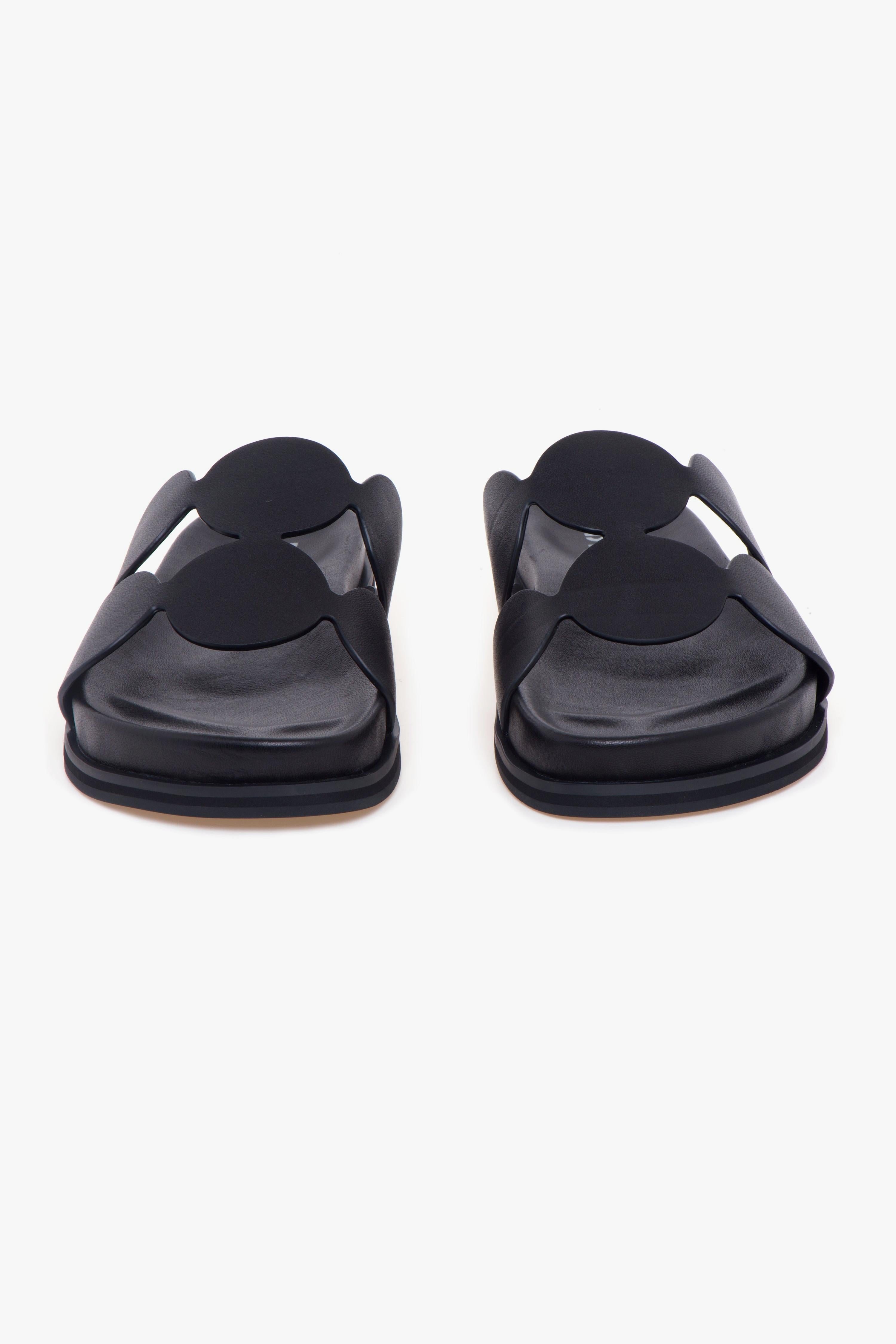 Ciabatta flat Bibi Lou in pelle che unisce comfort e stile in un design elegante e raffinato. Le doppie fasce, caratterizzate da un motivo ispirato a cerchi simmetrici, conferiscono alla calzatura un aspetto moderno e sofisticato. Il sottopiede con fussbet anatomico in pelle assicura un’ottima calzata, offrendo supporto e comfort per tutto il giorno.La suola in gomma garantisce una buona aderenza, rendendo questo modello ideale per essere indossato sia in ambienti casual che più eleganti.Consiglio di stile: Perfetta da abbinare a pantaloni a palazzo o a un maxi dress per un look estivo rilassato ma di classe.# Tomaia in pelle. # Fodera in pelle. # Sottopiede in pelle.# Suola in gomma.