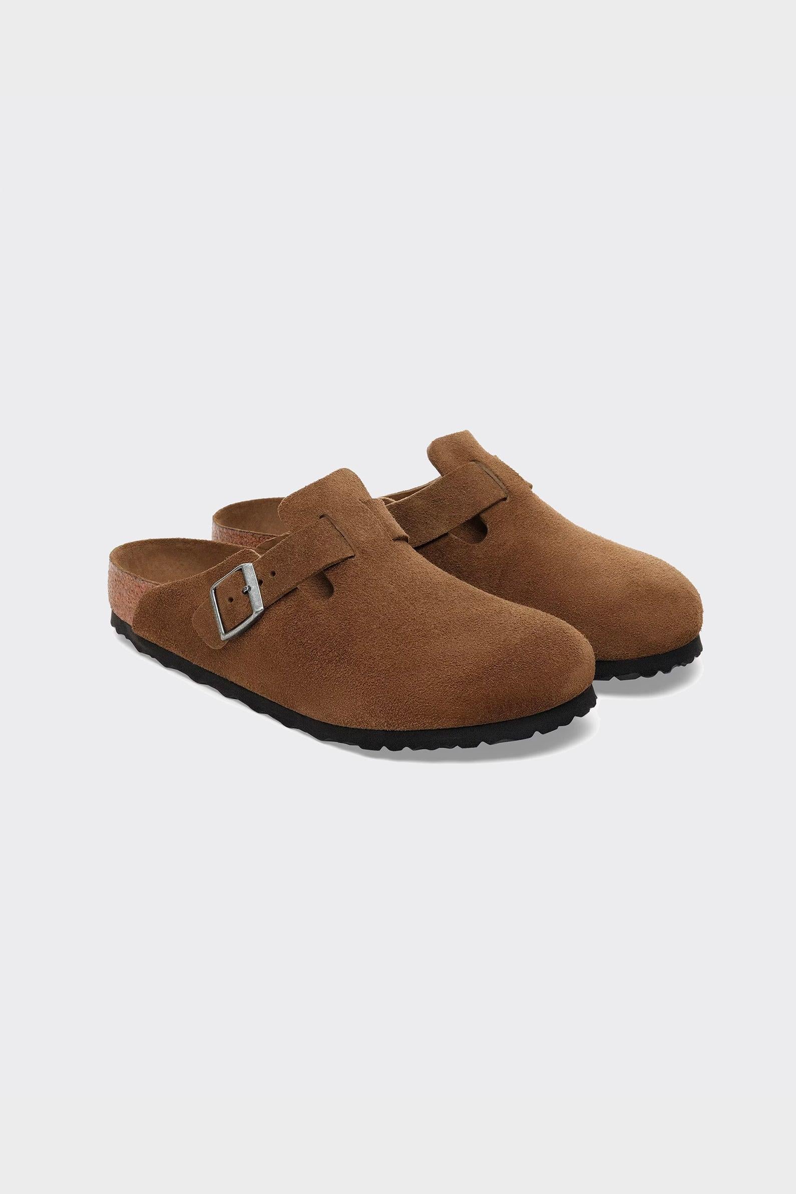 birkenstock Ciabatta Boston Softbed Suede Leather Dark Tea