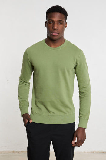 La felpa presenta un classico girocollo, ideale per un look casual ma ricercato. Le maniche lunghe e il girovita, così come i polsini, sono rifiniti con un lavorazione a coste che garantisce una vestibilità ottimale e un aspetto raffinato.