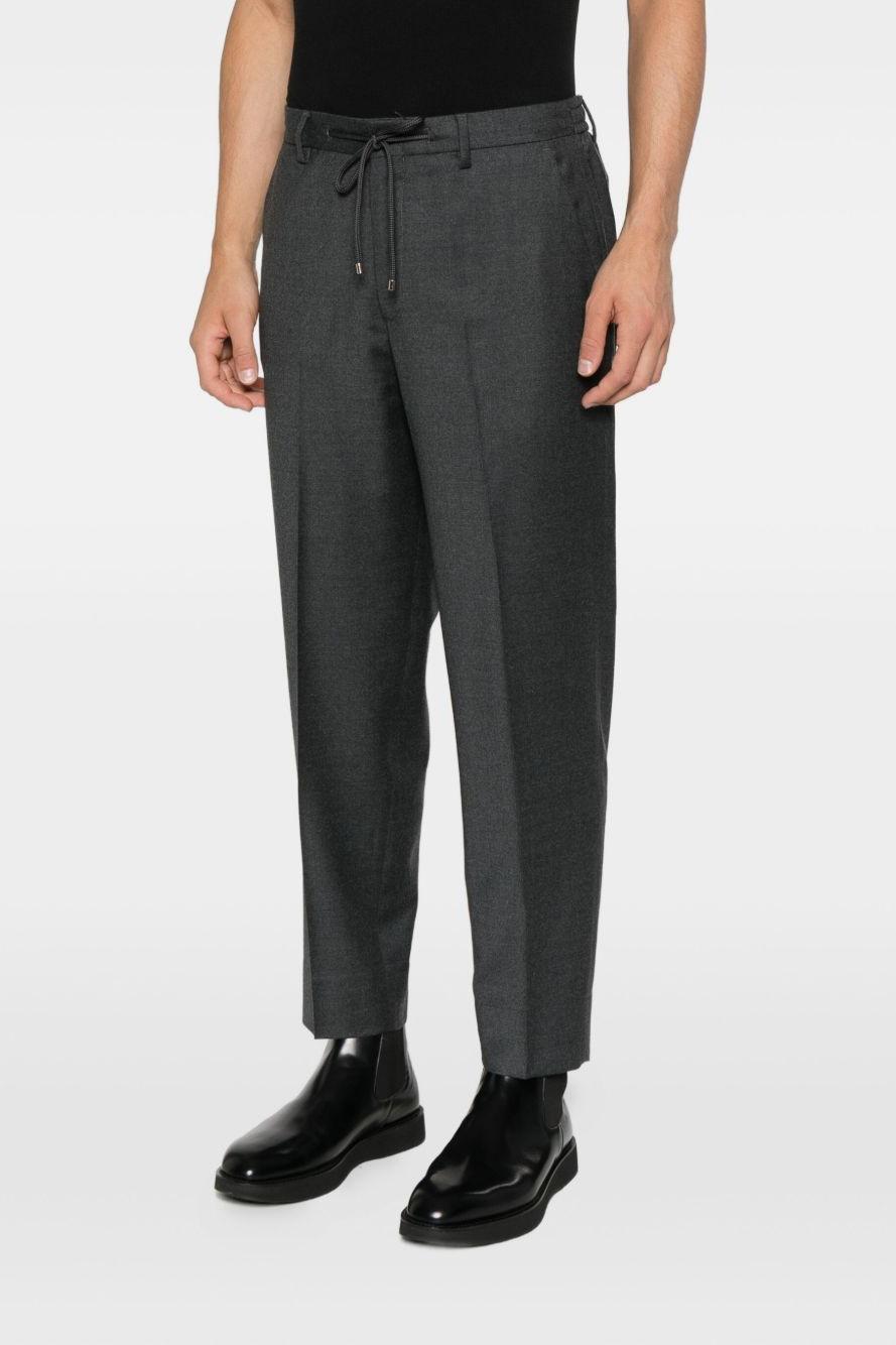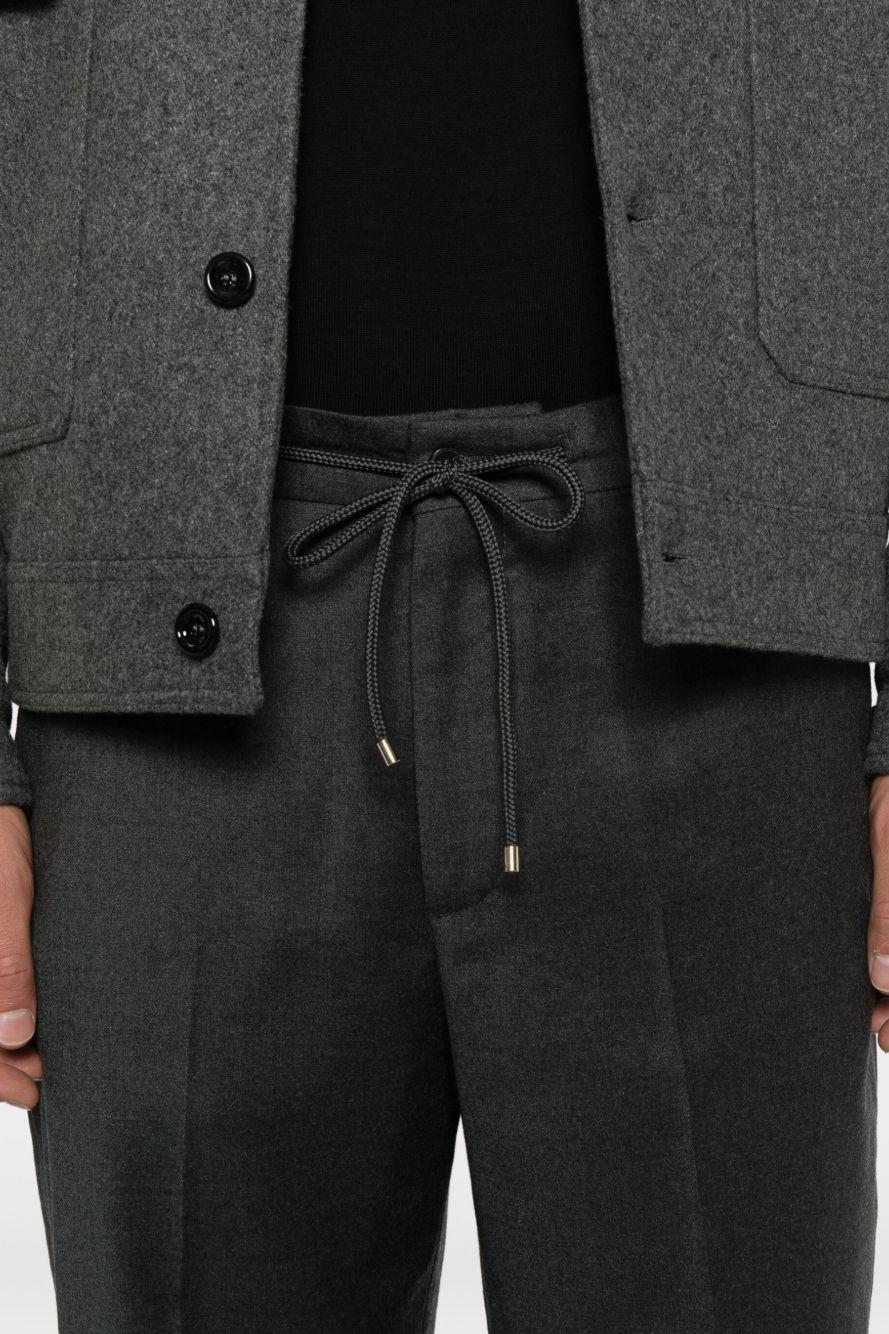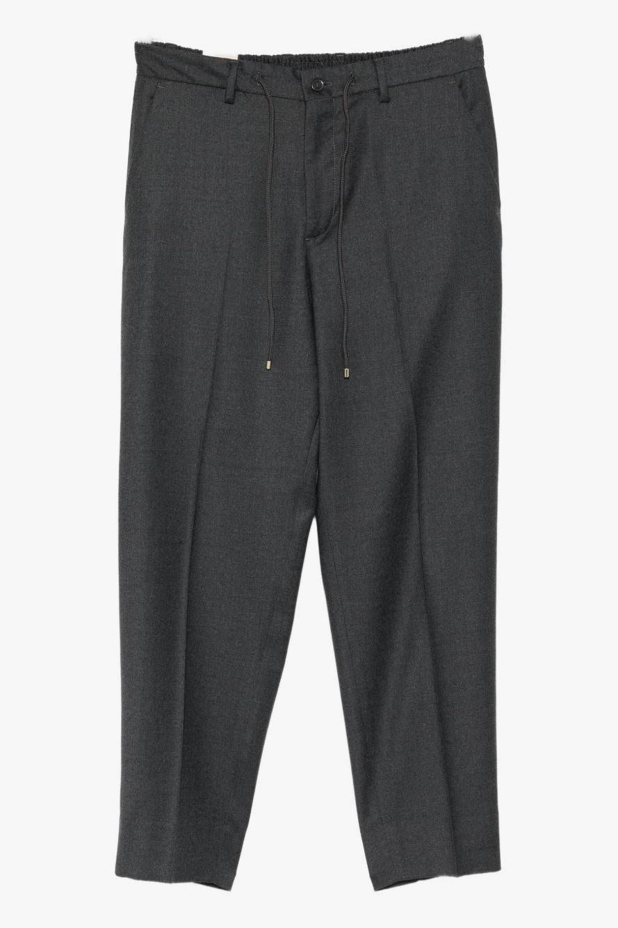Proposti in grigio, presentano inserti laterali elasticizzati e una fascia in vita con coulisse che consente di regolare la vestibilità con praticità. La chiusura frontale con bottoni, i passanti per cintura e le tasche laterali completano il design con equilibrio e precisione sartoriale. La fodera interna in cotone 100% assicura traspirabilità e comfort anche nelle giornate più intense.
