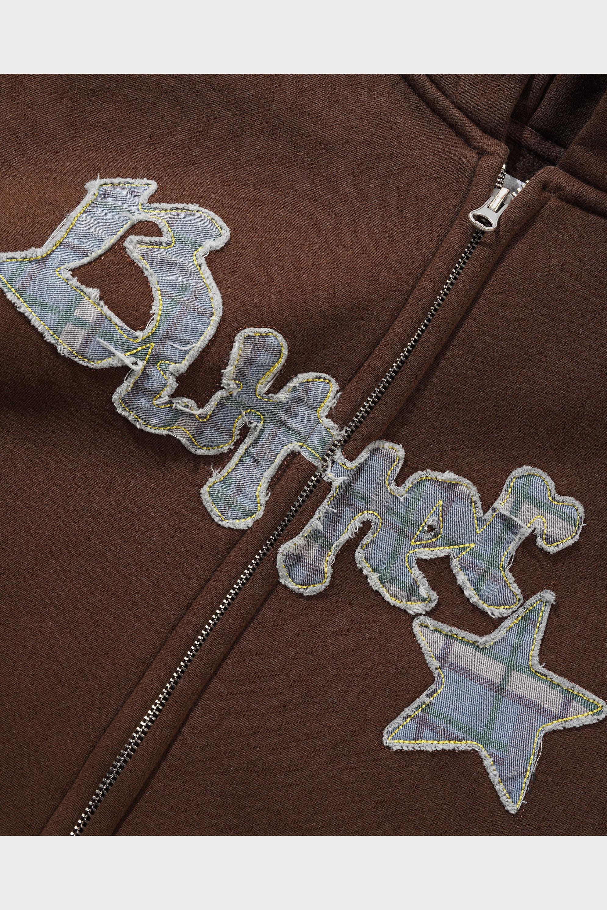 butter goods Felpa Edge Applique Zip-Thru Marrone