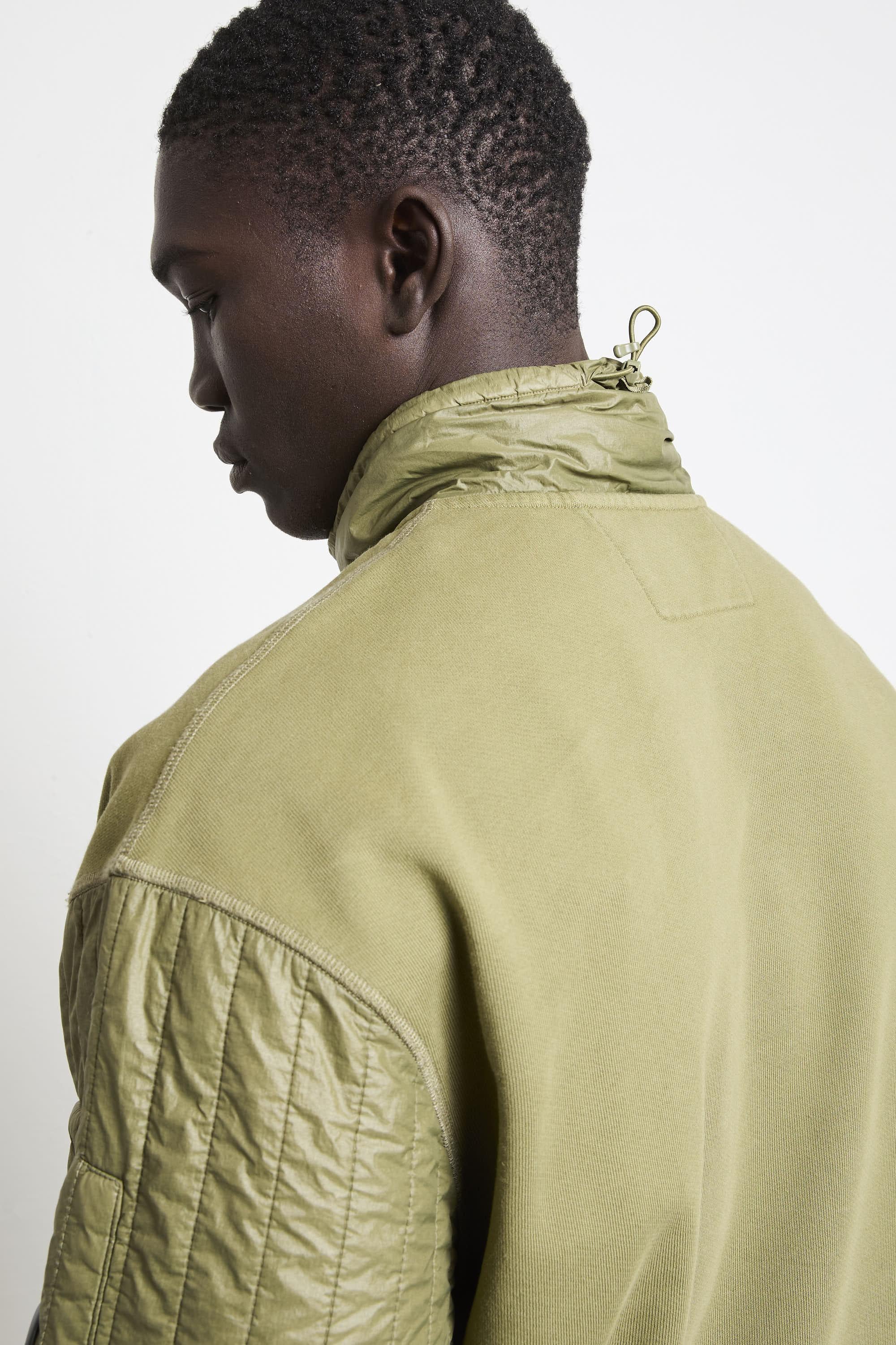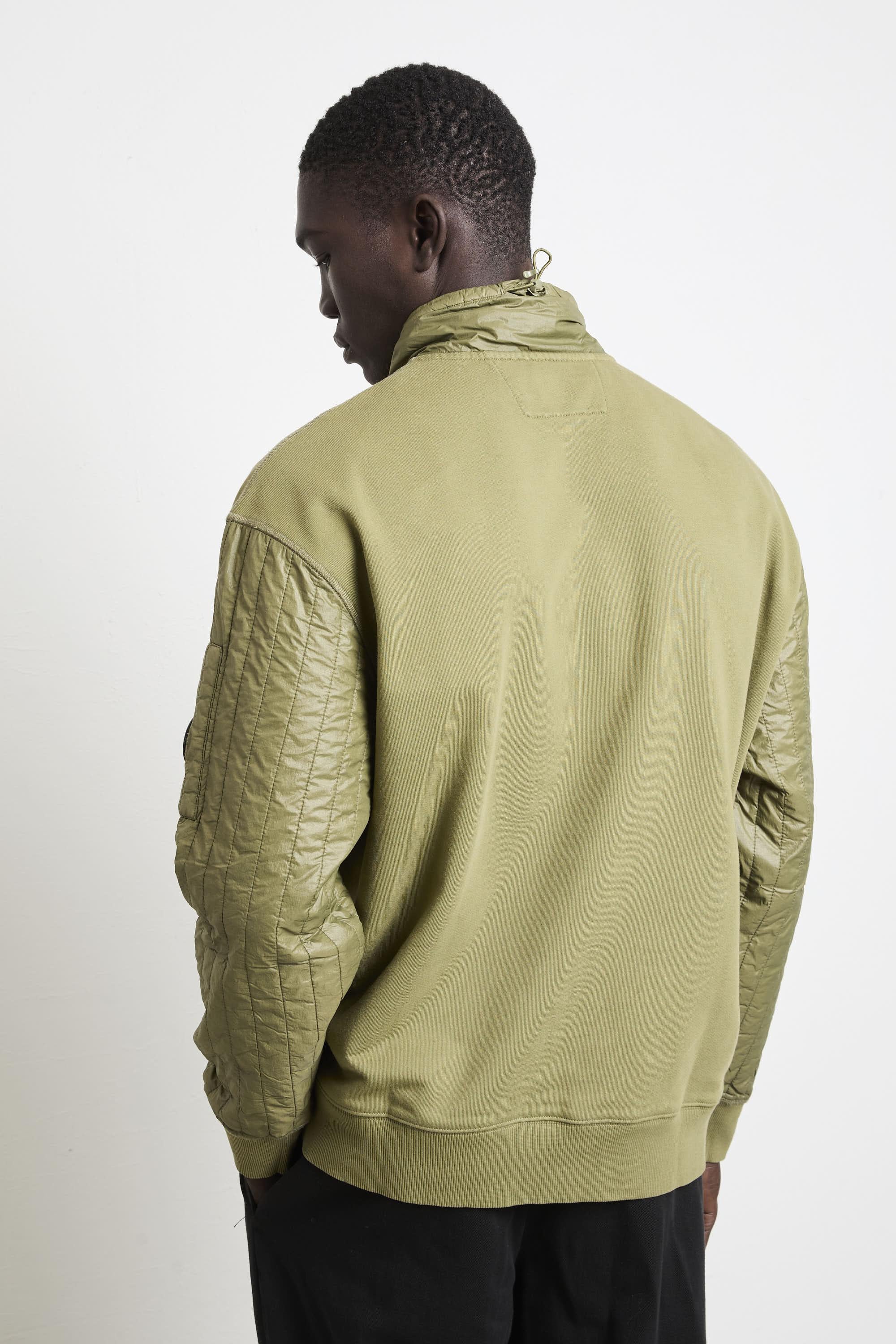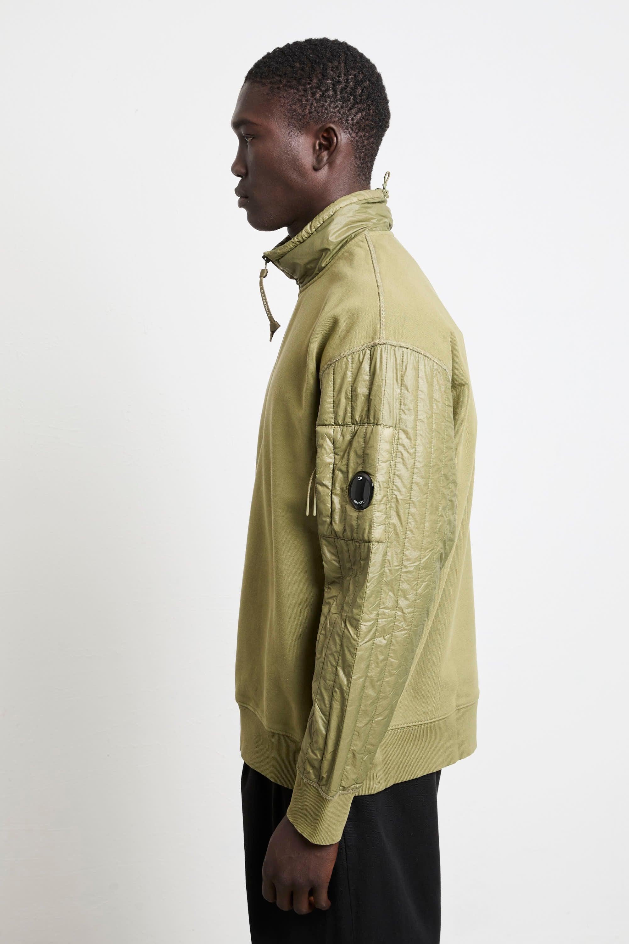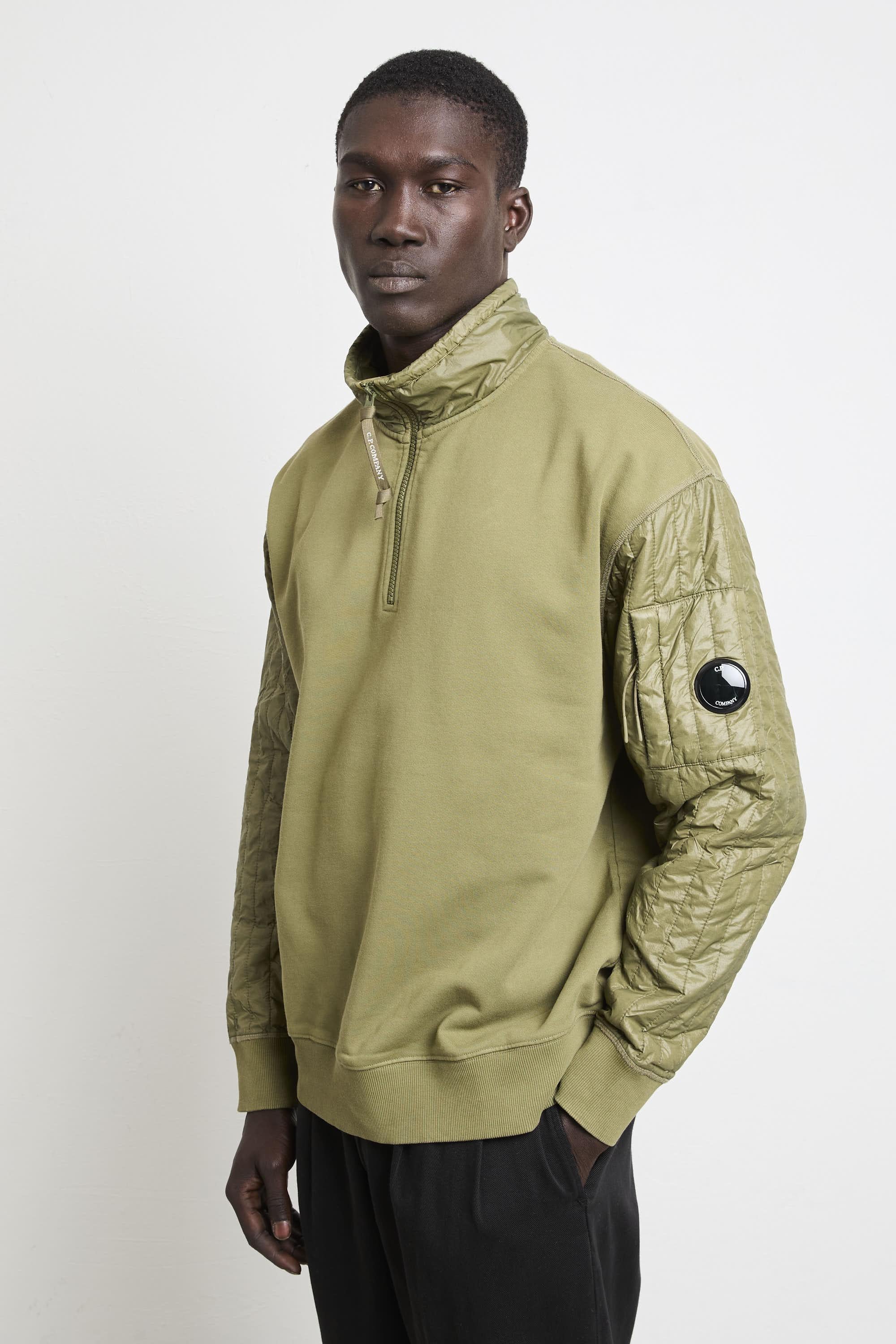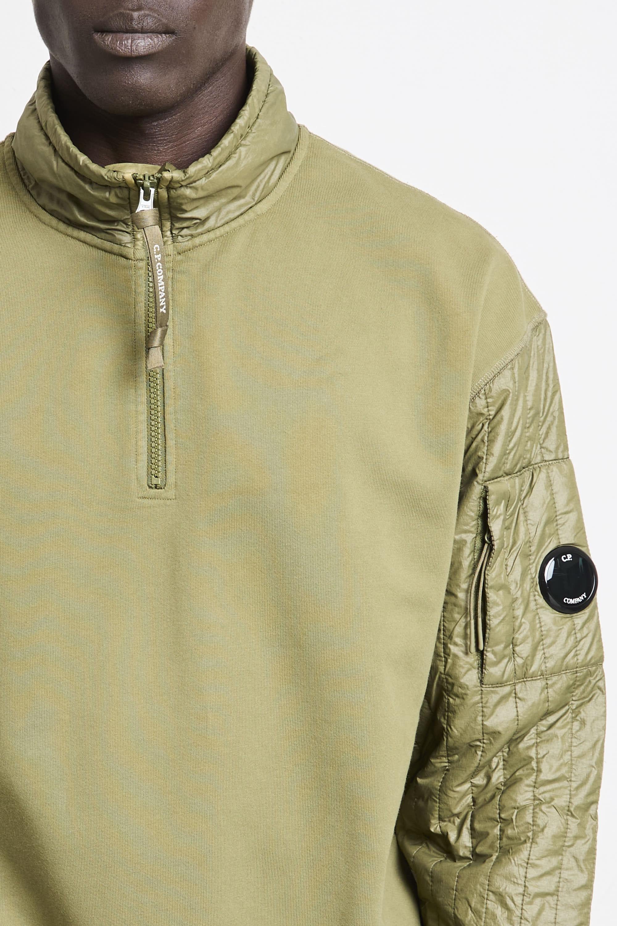 La felpa C.P. Company in verde è un capo che unisce estetica urbana e funzionalità tecnica, perfetto per chi cerca stile e comfort in ogni occasione. Realizzata in cotone con tessuto morbido e di medio spessore, presenta una mezza zip frontale che permette di modulare la vestibilità e il look, oltre a collo leggermente rialzato per maggiore protezione e carattere. Il fondo e i polsini a coste garantiscono comfort e aderenza, mentre la tasca sulla manica con il caratteristico dettaglio “Lens” aggiunge l’iconico tocco distintivo del brand. Il colore verde neutro e sofisticato rende la felpa estremamente versatile. Ideale con pantaloni cargo beige e sneakers bianche per un look casual urbano, oppure con jeans blu scuro e stivaletti in pelle marrone per uno stile smart-casual contemporaneo. Vestibilità: regolare Composizione: cotone e altre fibre Colore: verde Taglia indossata: L Logo: patch tono-su-tono con lente sul braccio