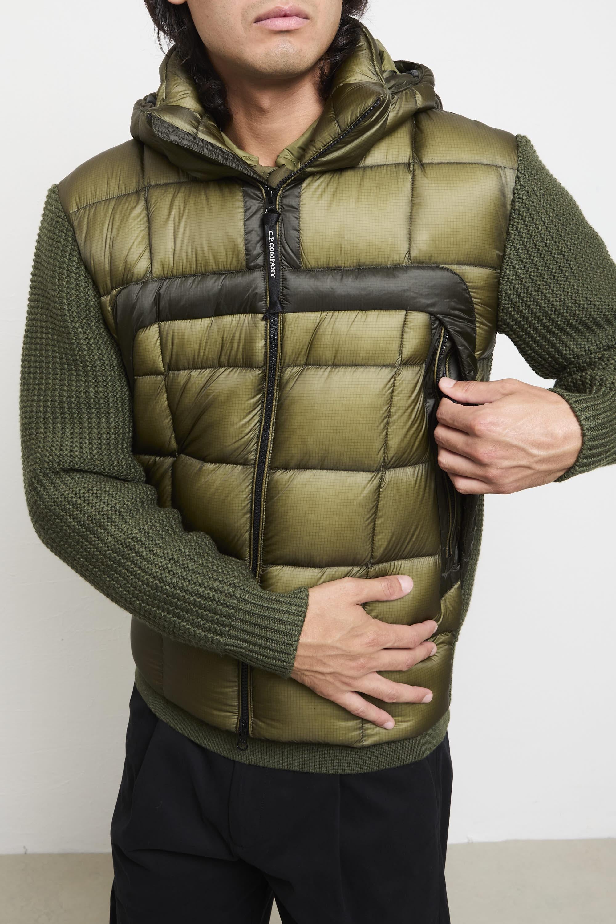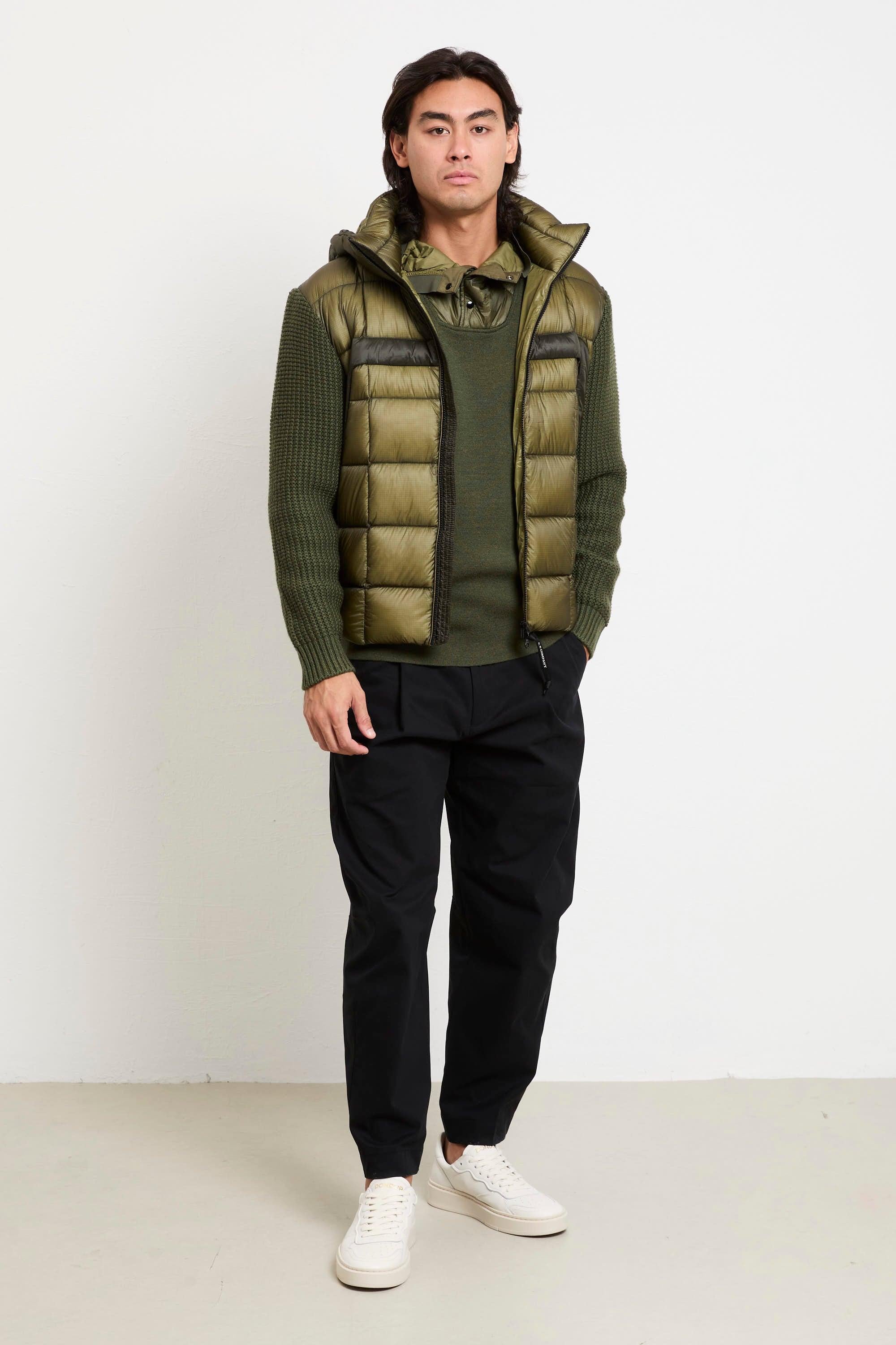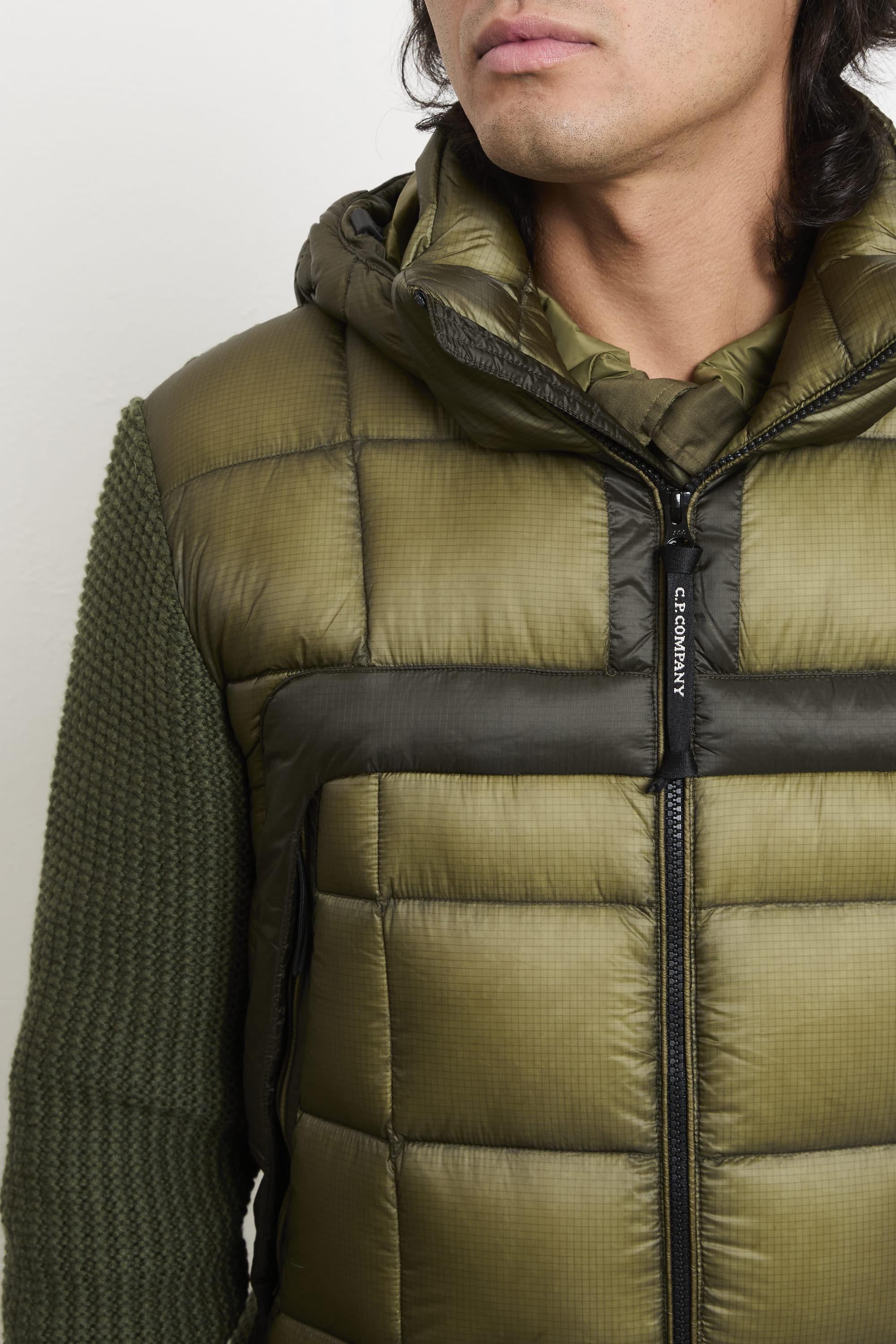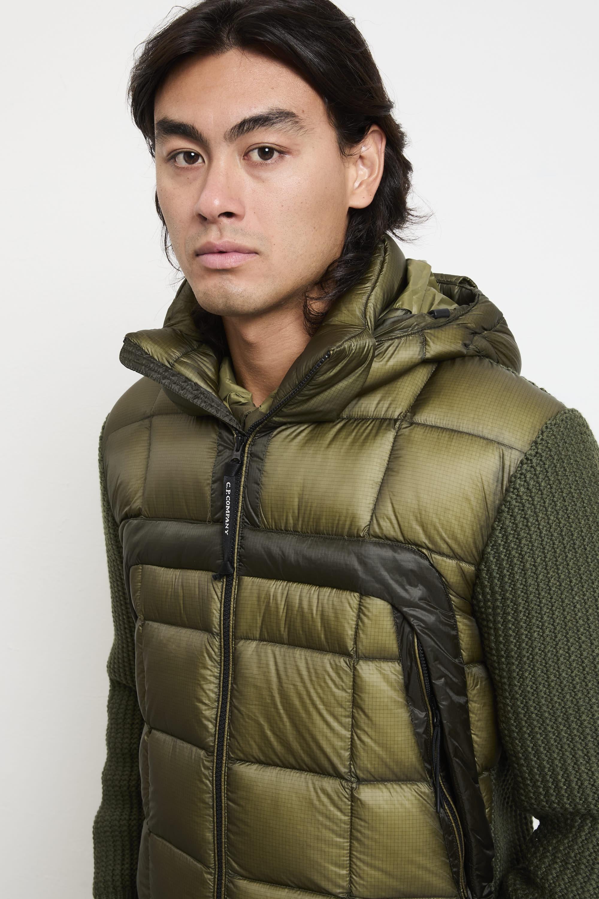 Un giubbotto C.P. Company dal design tecnico e raffinato, ideale per chi cerca comfort e stile in ogni contesto urbano. Realizzato in tessuto resistente e leggero con imbottitura in piuma garantire isolamento termico e comfort nelle giornate più fredde, unisce funzionalità e ricerca estetica. Il colore verde polveroso aggiunge un tocco sofisticato, perfetto da abbinare a pantaloni cargo beige o denim scuro per un look contemporaneo e disinvolto. Modello: Knitwear Jacket in Merino Wool Extrafine Vestibilità: regolare Composizione: esterno in tessuto tecnico, imbottitura in piuma Tasche: due tasche frontali con zip Fondo: fondo dritto, non elasticizzato Taglia indossata: M Chiusura: zip frontale a doppio cursore Colore: verde, tono neutro e versatile Cappuccio: fisso e regolabile con coulisse