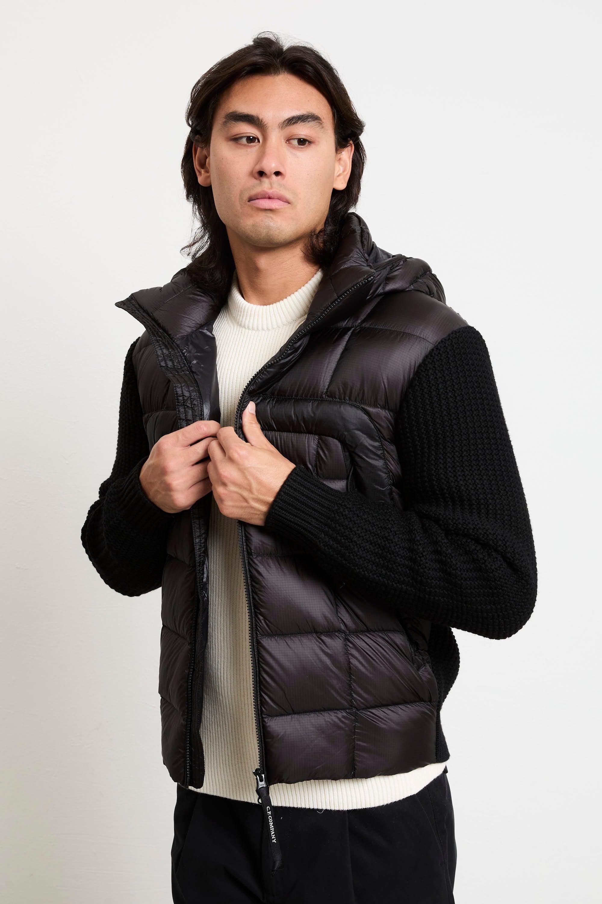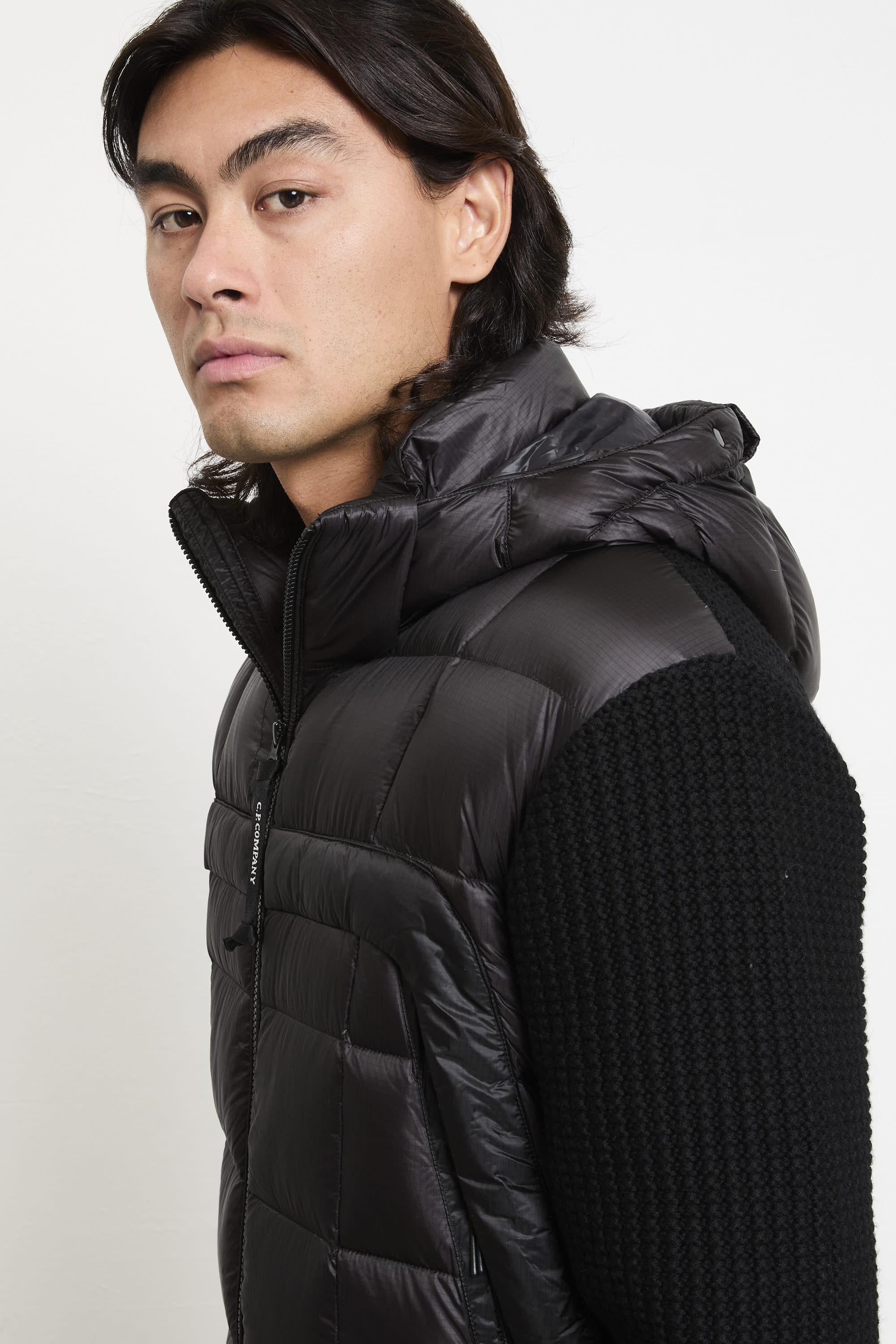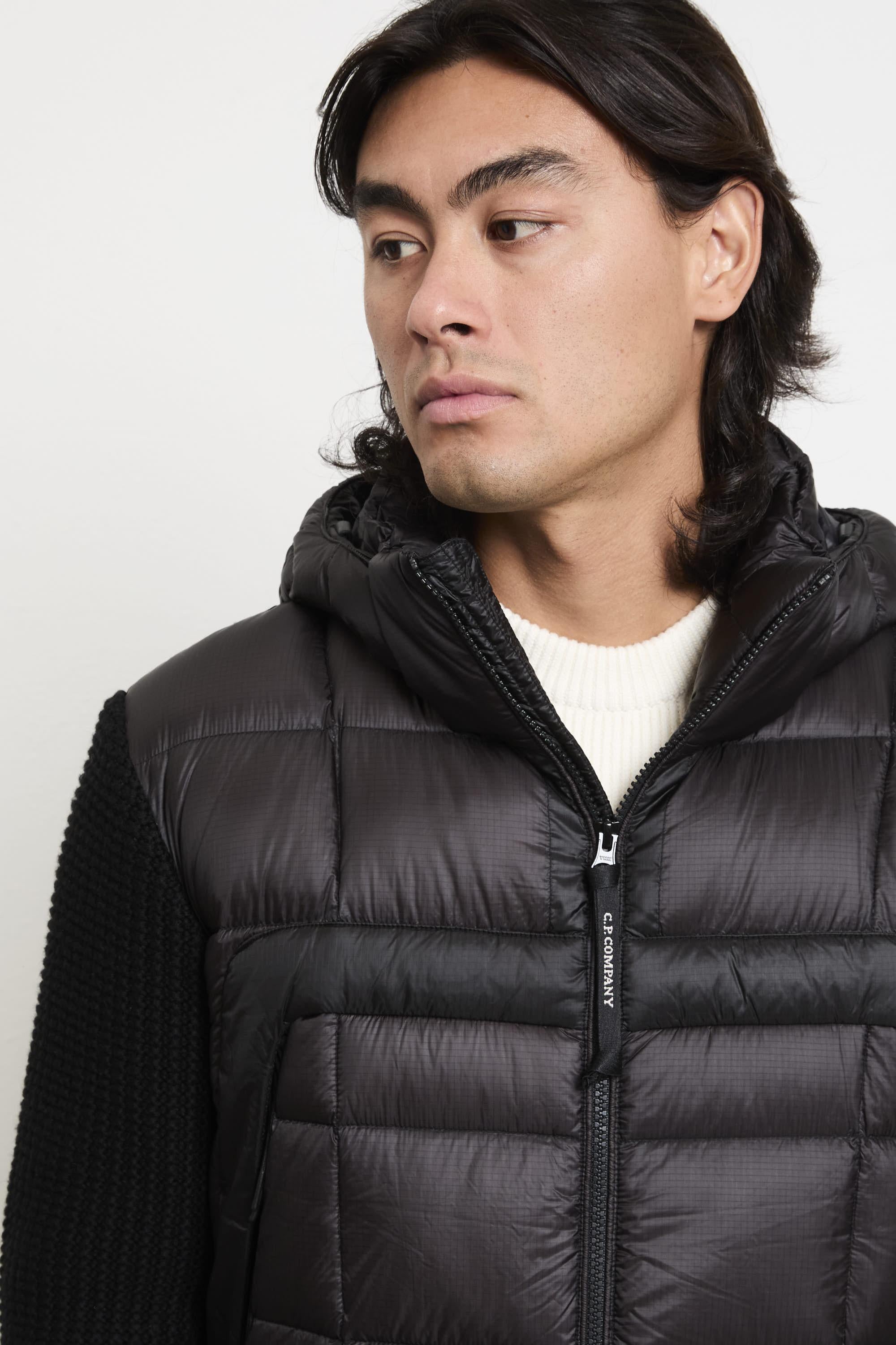 Modello: Knitwear Jacket in Merino Wool ExtrafineVestibilità: regolareComposizione: esterno in tessuto tecnico, imbottitura in piumaTasche: due tasche frontali con zipFondo: dritto, non elasticizzatoTaglia indossata: MChiusura: zip frontale a doppio cursoreColore: nero, classico e versatileCappuccio: fisso e regolabile con coulisse