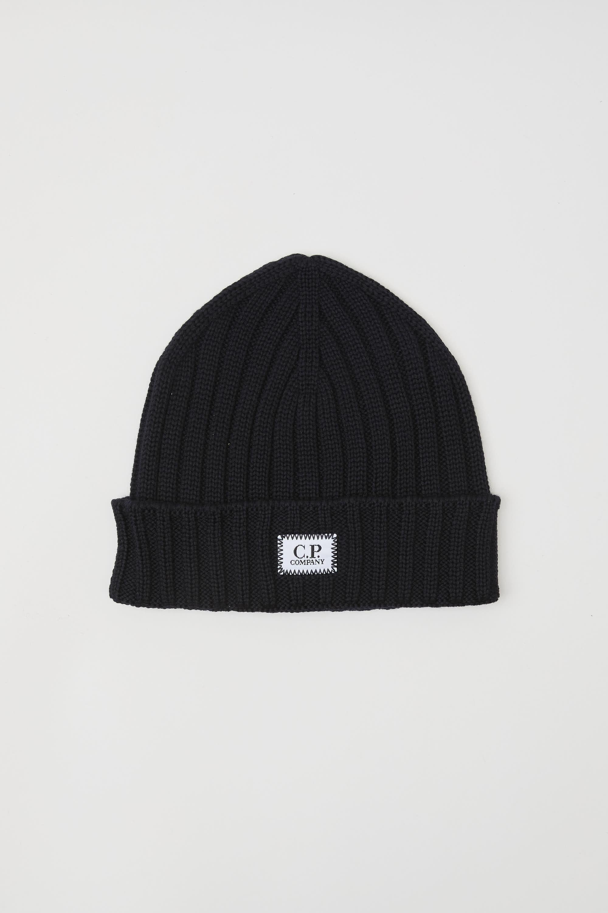 Beanie realizzato in lana merino extra fine con lavorazione in maglia a costine e logo patch ricamato. Materiale: 100% Lana