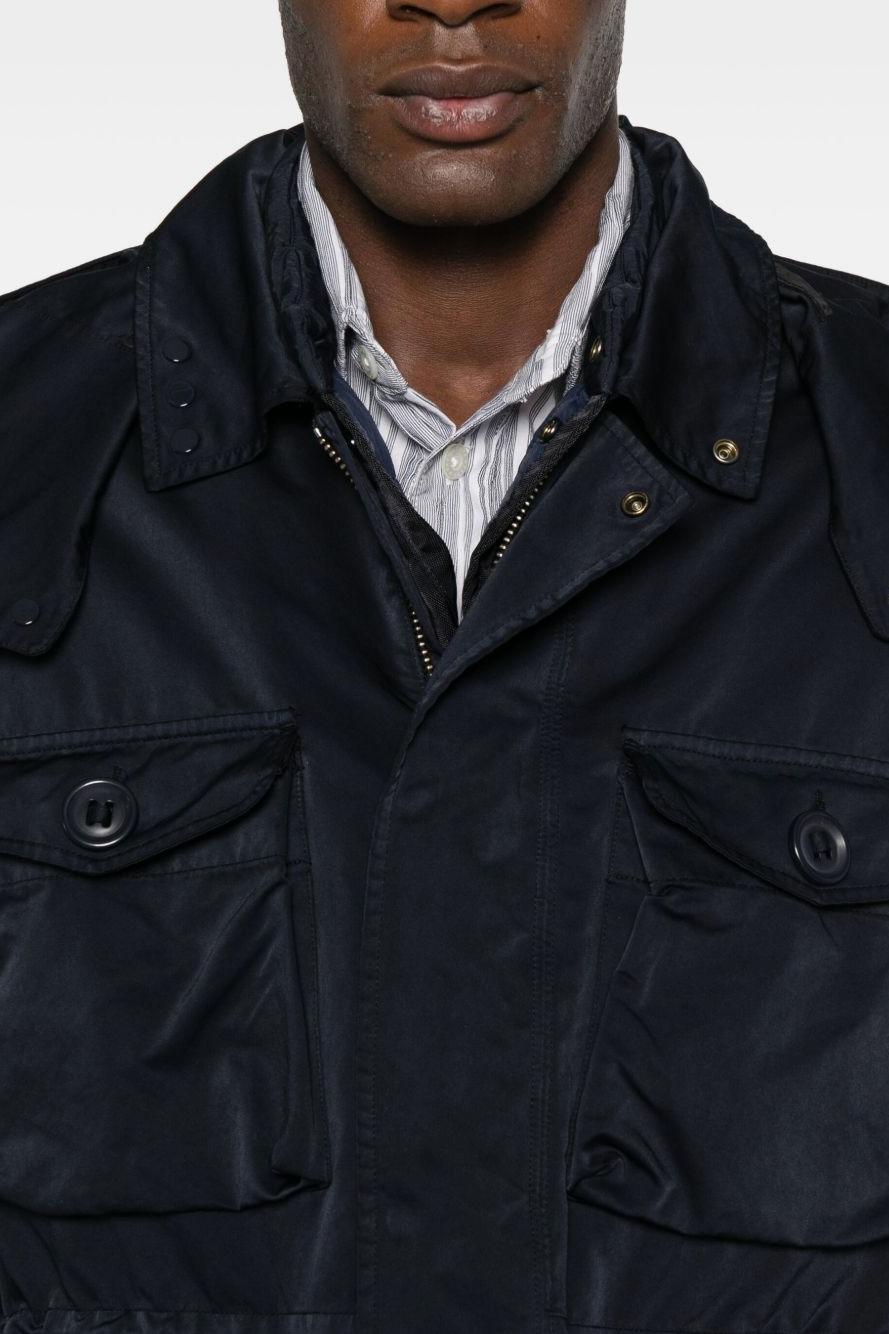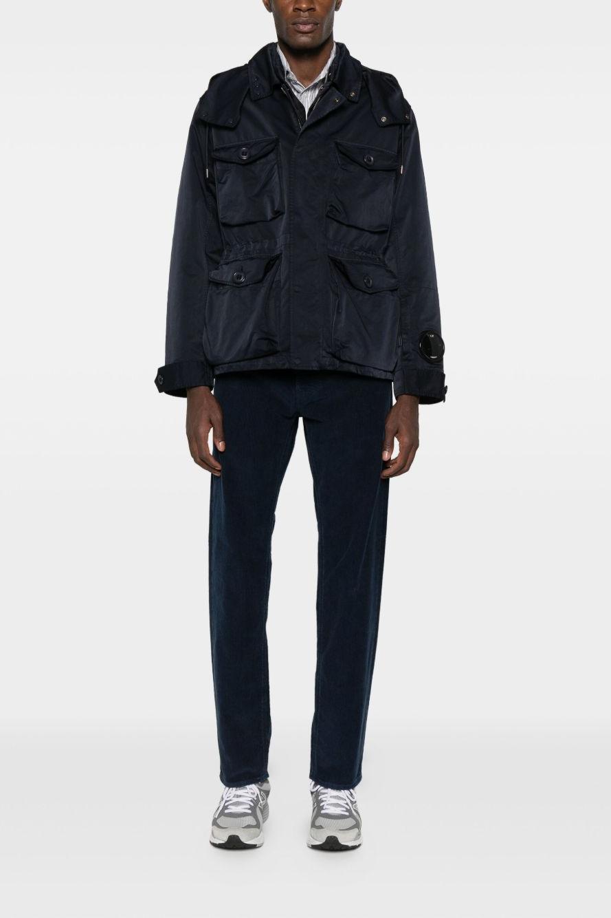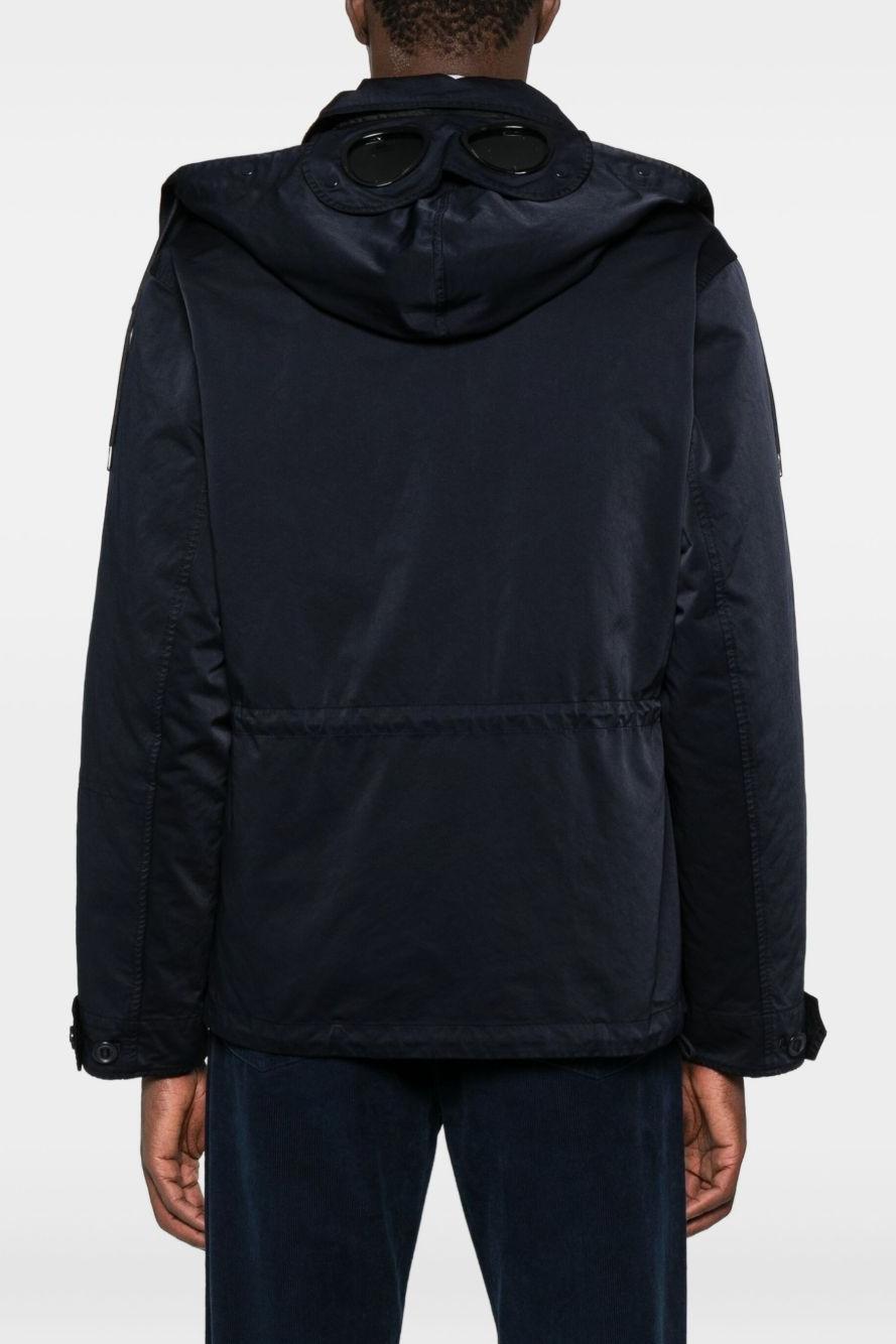 Proposta in blu scuro, presenta cappuccio regolabile, chiusura frontale con abbottonatura e orlo con coulisse per una vestibilità su misura. Le tasche frontali aggiungono funzionalità, mentre il caratteristico dettaglio Lens firma il design con il tratto distintivo di C.P. Company.