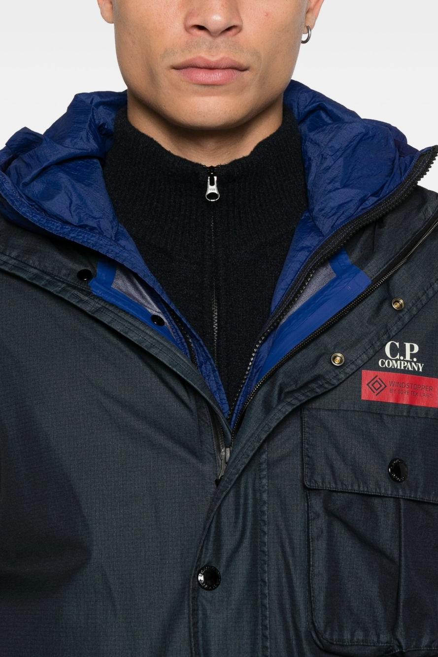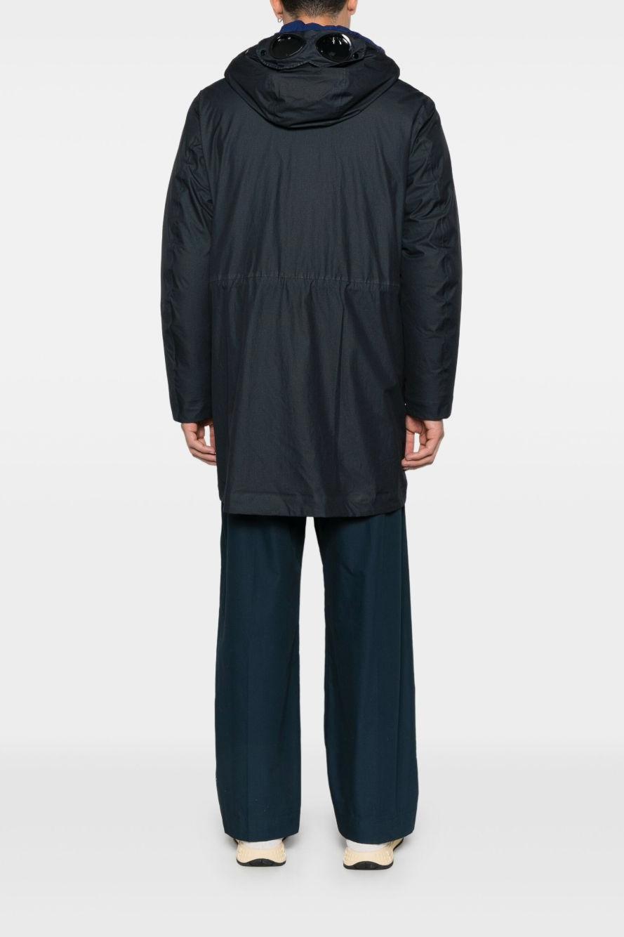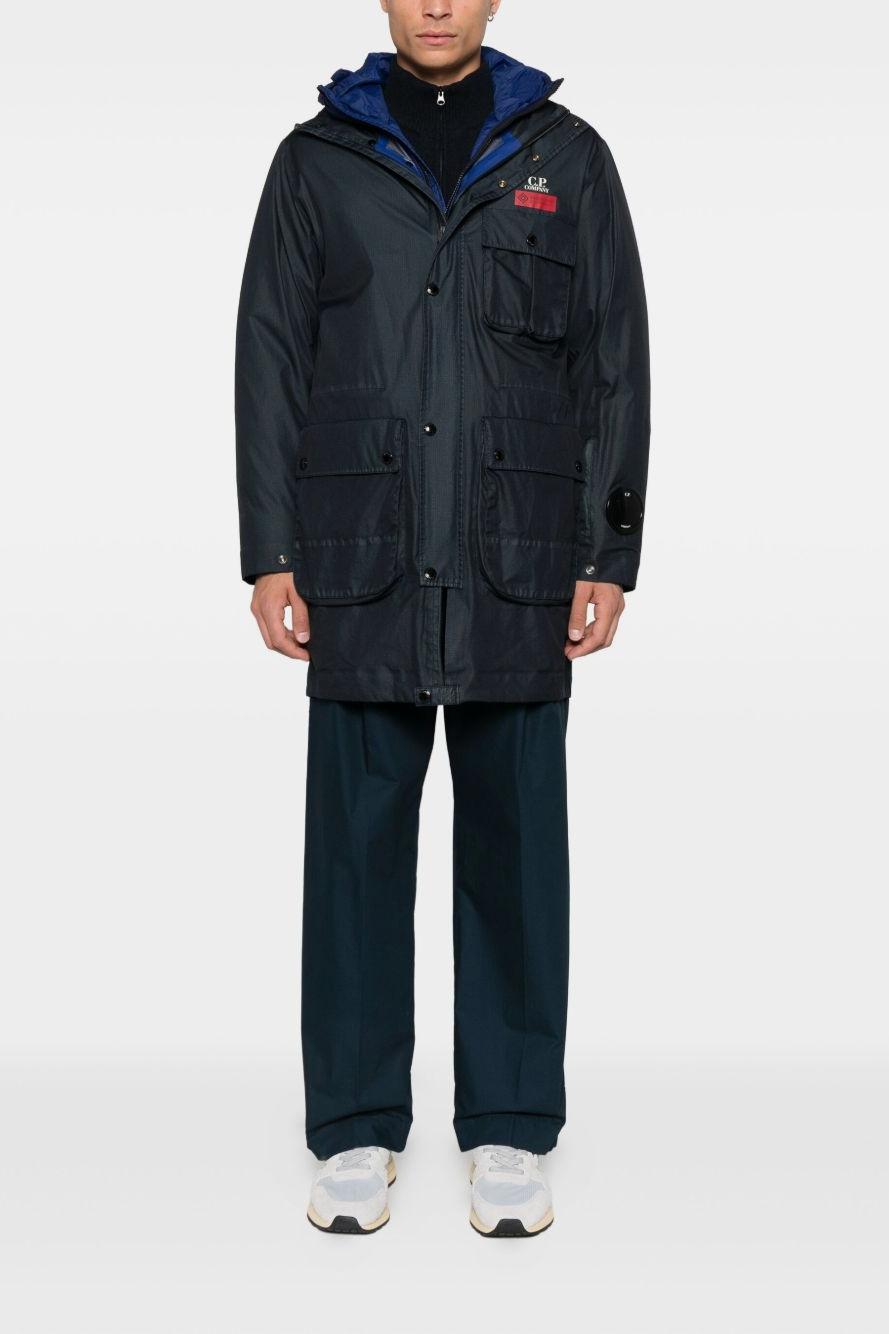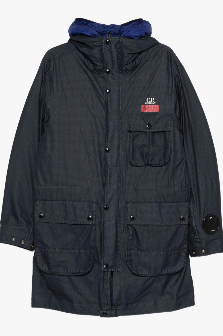 Proposta in blu, presenta una chiusura con zip e bottoni, un cappuccio integrato e tasche frontali pratiche e funzionali. La fodera trapuntata rimovibile consente di adattare il capo alle diverse temperature, garantendo comfort e versatilità. Il celebre dettaglio Lente firmato C.P. Company sulla manica aggiunge un tocco distintivo e riconoscibile, simbolo dello stile tecnico del brand.