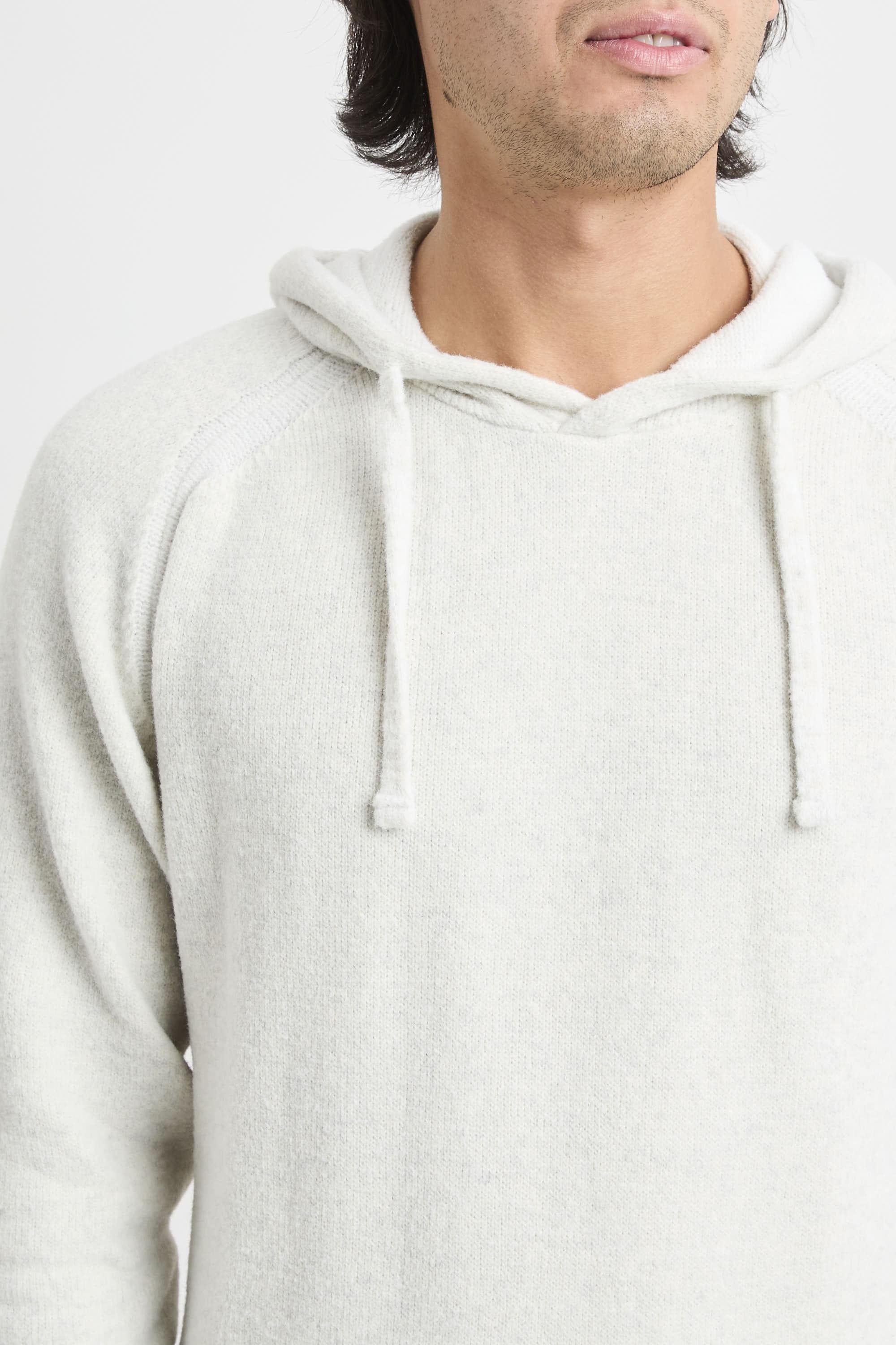 Maglione con cappuccio realizzata in lana vanisé con ciniglia poliestere a contrasto. Cappuccio regolabile, cuciture a contrasto e taschino con lente sulla manica. Polsini e fondo a costine. Finezza 7. Regular fit. Il modello è alto 187cm e indossa la taglia L.Materiale: 70% Poliammide 29% Lana 1% Altre fibre