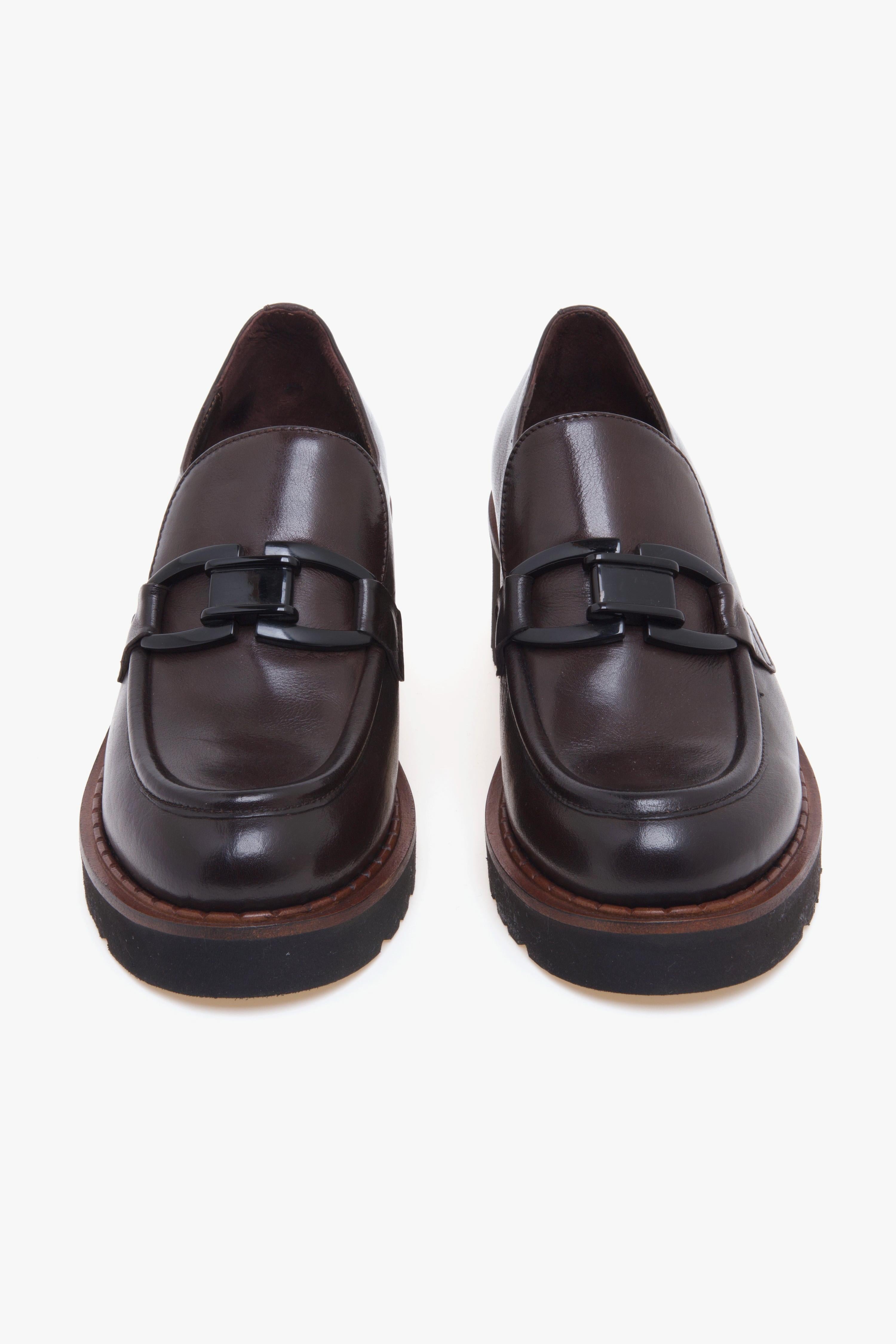 Realizzato in nappa morbida di alta qualità, questo mocassino montante firmato Calpierre combina stile intramontabile e comfort assoluto. Il design è impreziosito da un morsetto in metallo tono su tono, dettaglio discreto ma raffinato che aggiunge un tocco di eleganza contemporanea.La suola in gomma extra light garantisce leggerezza, isolamento dal terreno e un appoggio estremamente confortevole. Il tacco ampio da 50 mm, abbinato alla platform da 15 mm, crea un dislivello equilibrato di 35 mm, permettendo di slanciare la silhouette senza rinunciare alla comodità quotidiana.Un modello ideale per chi cerca un mocassino con tacco dallo stile elegante, pratico e versatile, capace di completare con classe qualsiasi look.Dettagli prodotto:# Tomaia in nappa morbida.# Morsetto tono su tono.# Suola in gomma extra light.# Tacco 50 mm.# Platform 15 mm.# Dislivello tacco/pianta 35 mm.# Fodera e sottopiede in pelle.# Made in Italy.