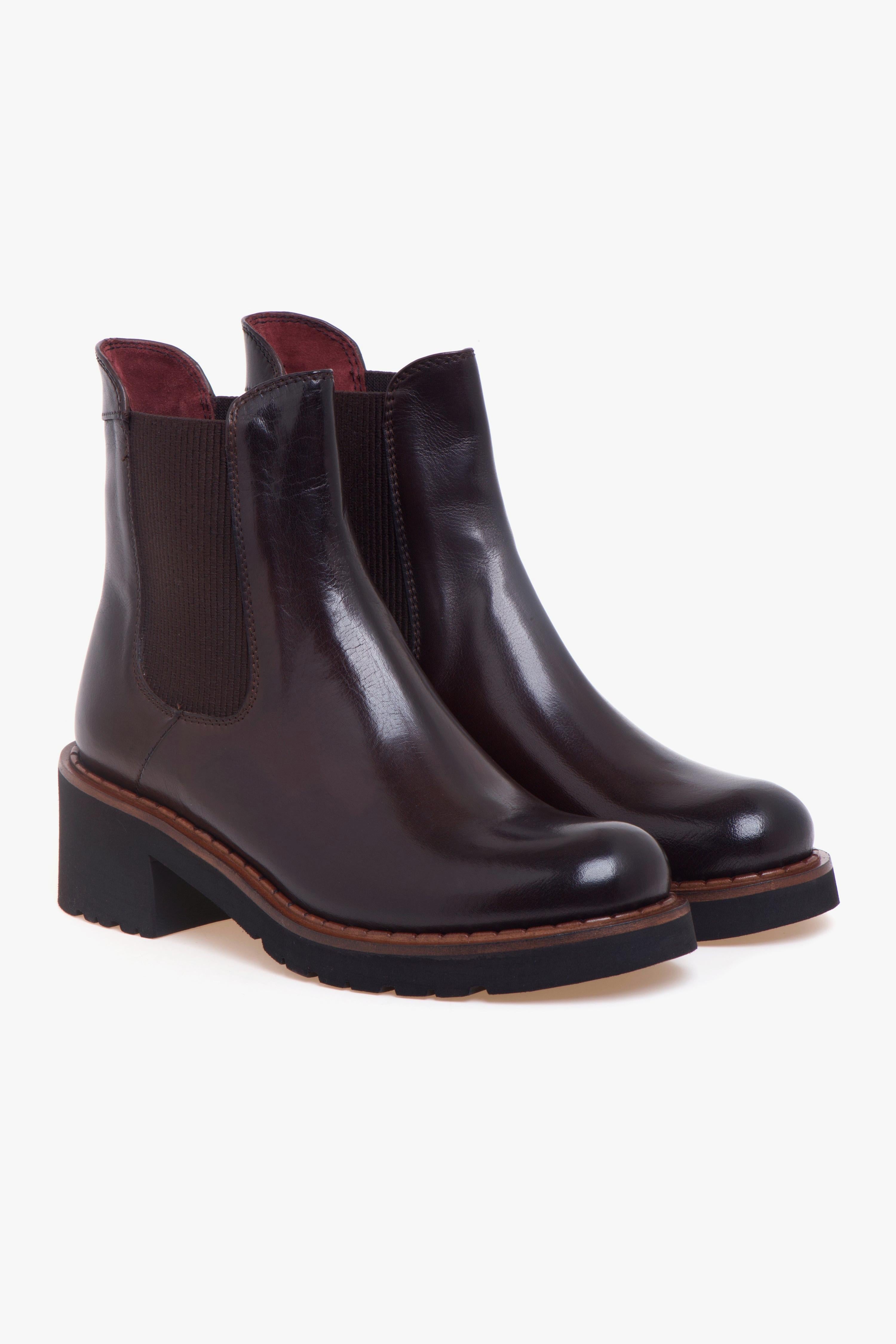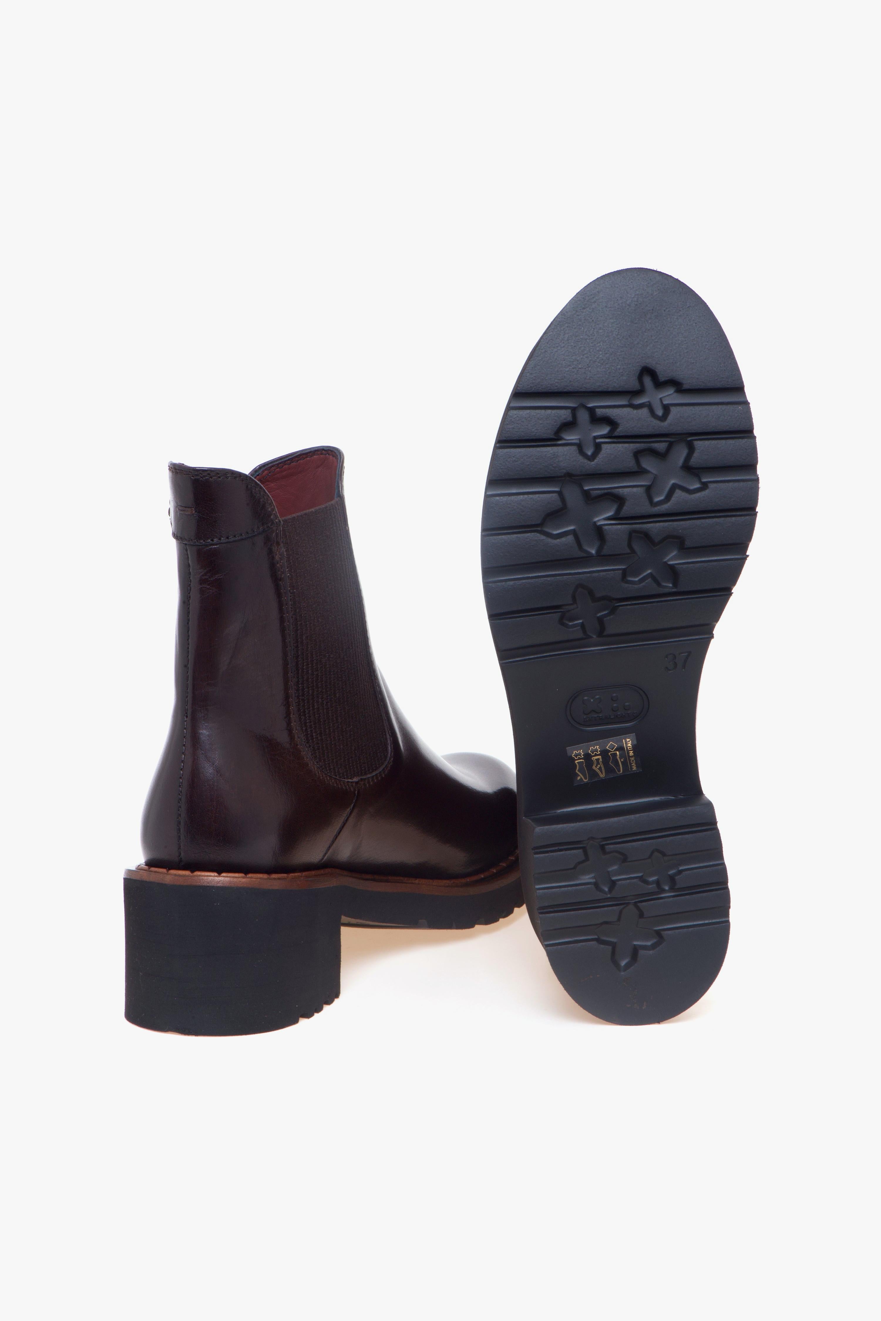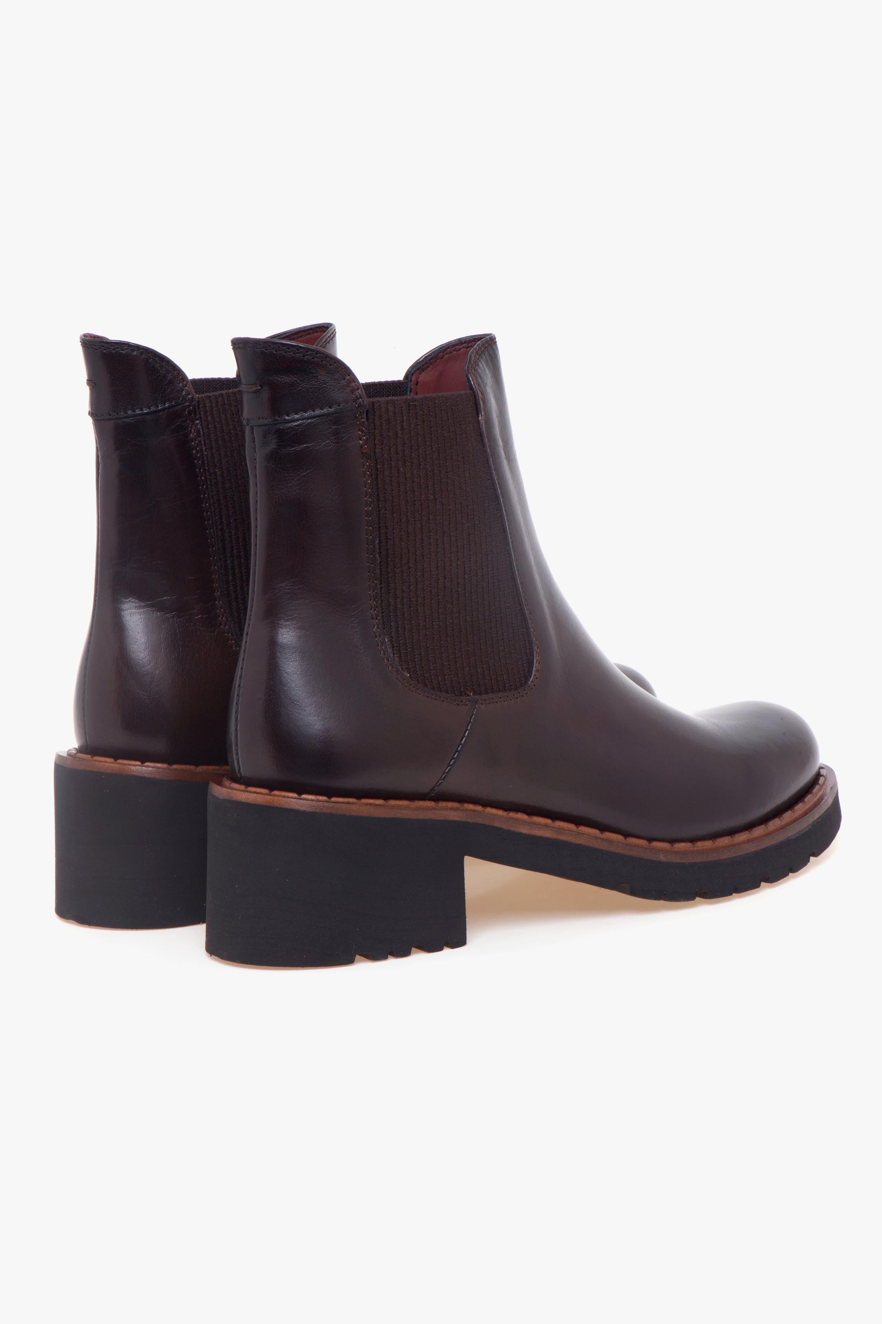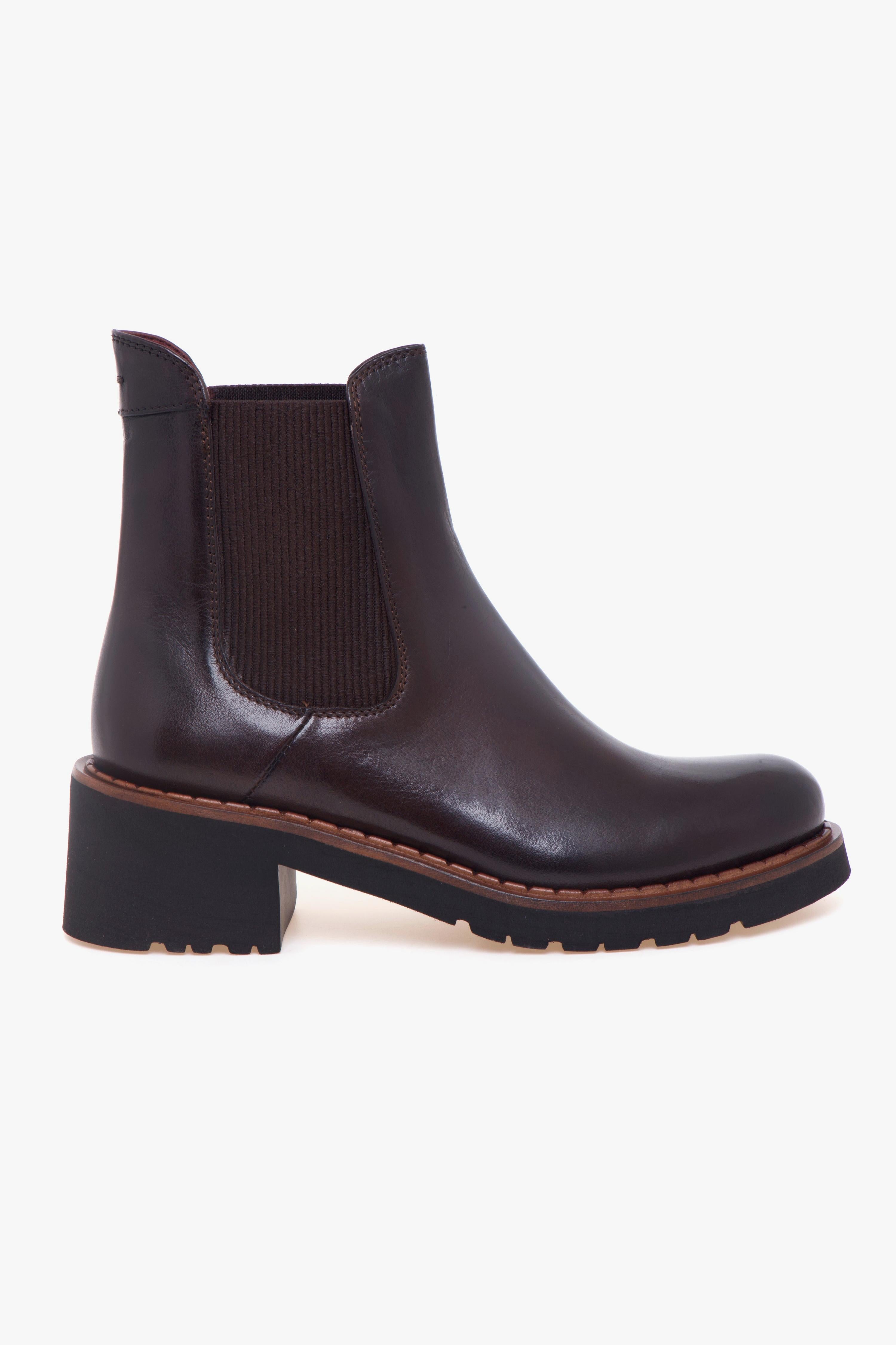 Realizzato in morbida pelle color cioccolato dal raffinato effetto semilucido, questo tronchetto Calpierre si distingue per il suo look elegante e contemporaneo. Il doppio elastico laterale garantisce una calzata rapida, pratica e straordinariamente confortevole, rendendolo un alleato ideale per l’uso quotidiano.La suola in gomma leggera, abbinata al tacco largo da 45 mm, offre stabilità, isolamento e un appoggio sicuro, slanciando la silhouette con naturalezza. Gli interni in pelle amplificano la sensazione di comfort, mentre l’inserto in gomma nella suola assicura maggiore grip e durata.Un tronchetto versatile, sofisticato e perfetto per completare look casual chic con un tocco di artigianalità italiana.Dettagli prodotto:# Pelle morbida color cioccolato effetto semilucido.# Doppio elastico laterale.# Fodera e sottopiede in pelle.# Suola in gomma leggera con inserto in gomma.# Tacco largo 45 mm.# Made in Italy.