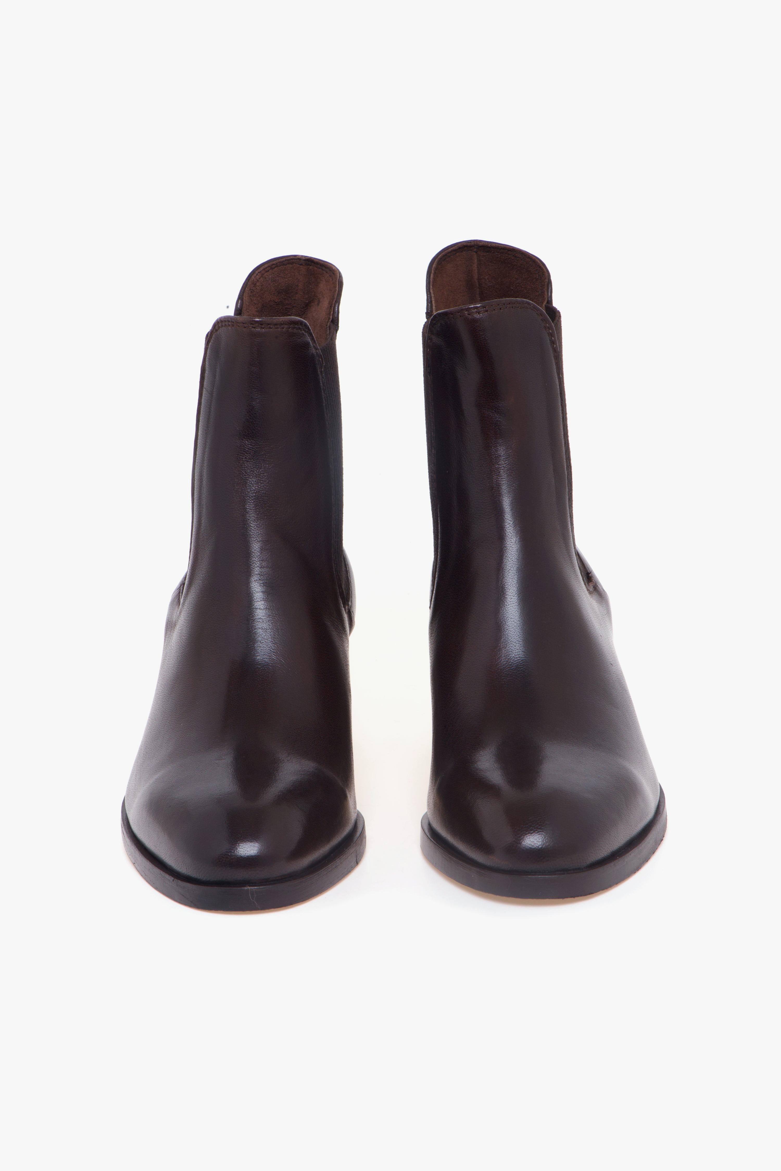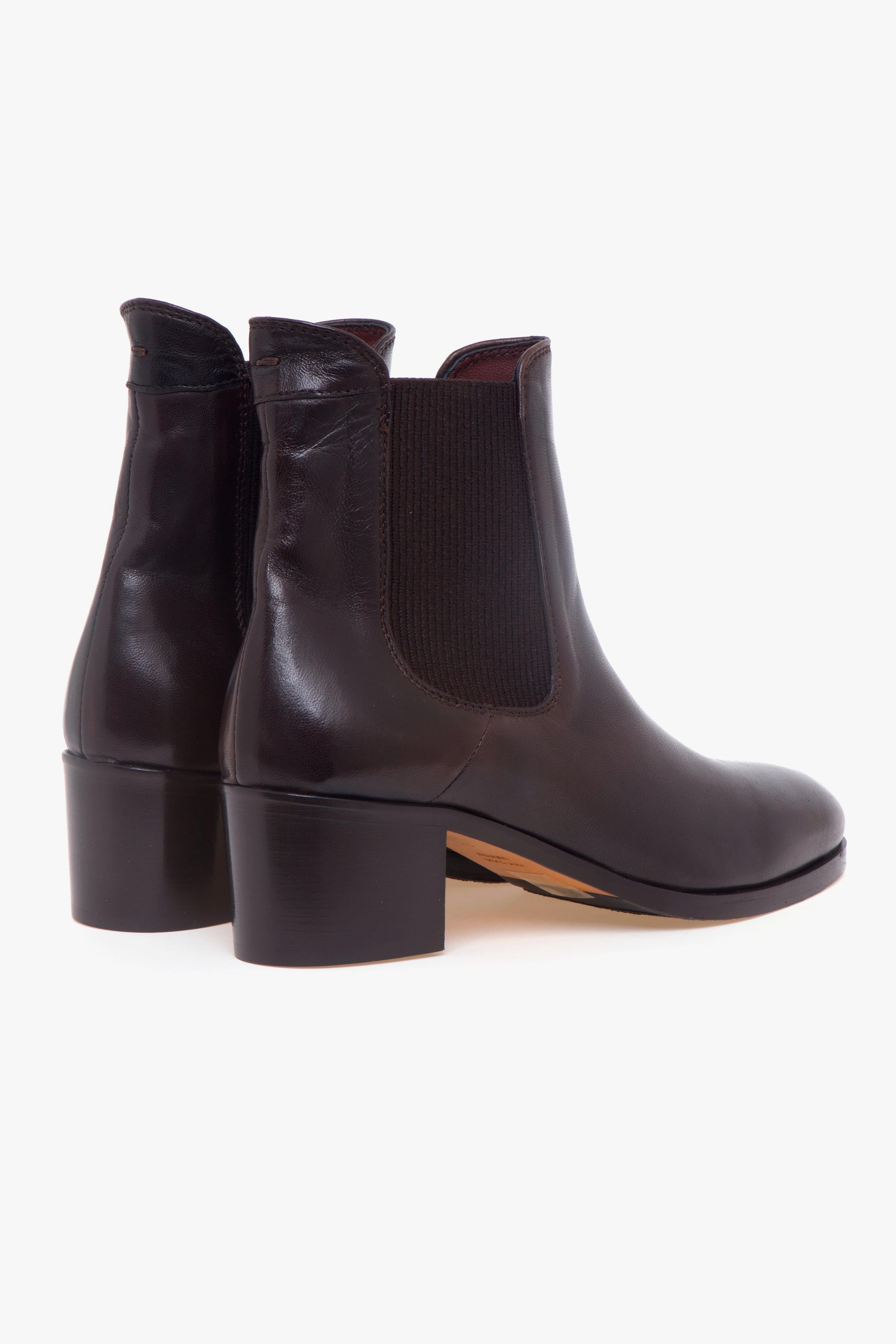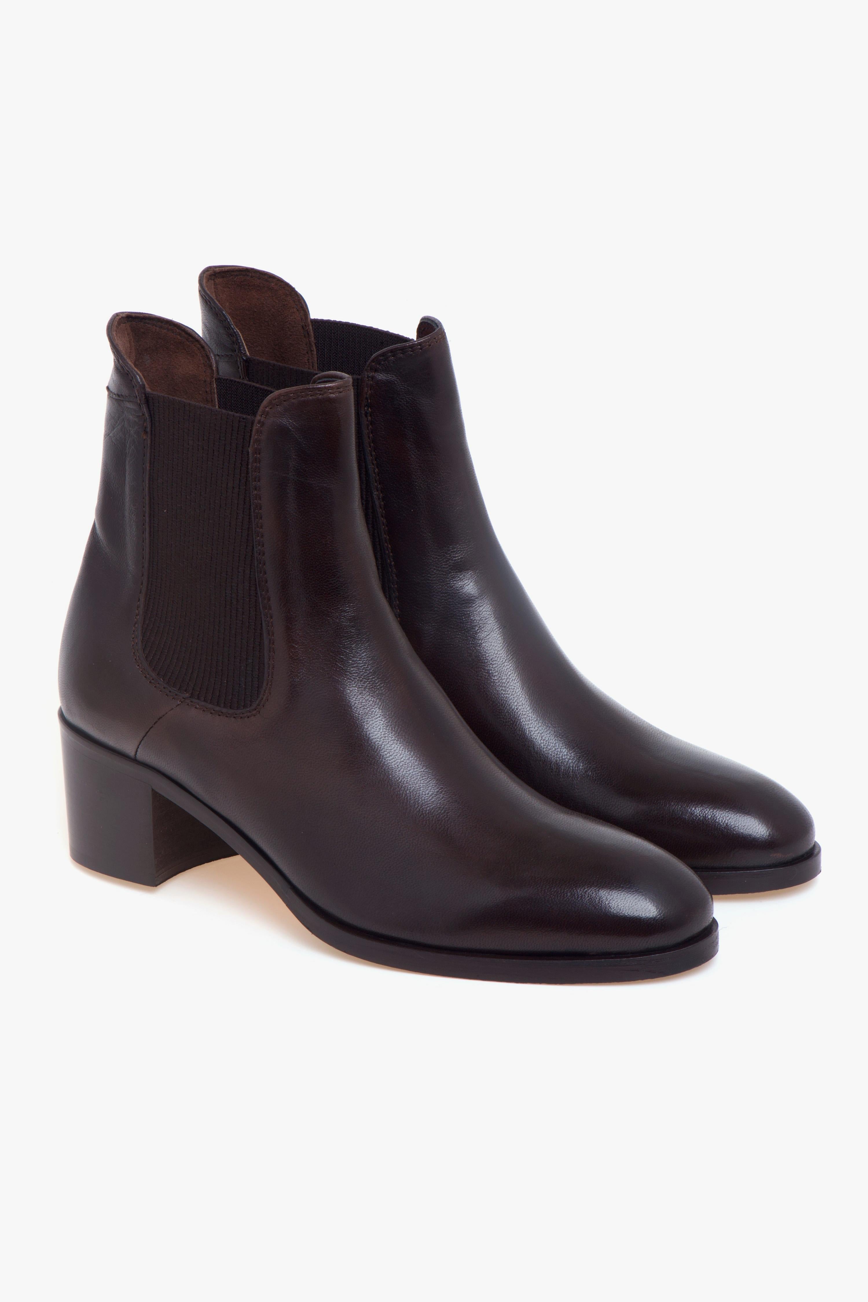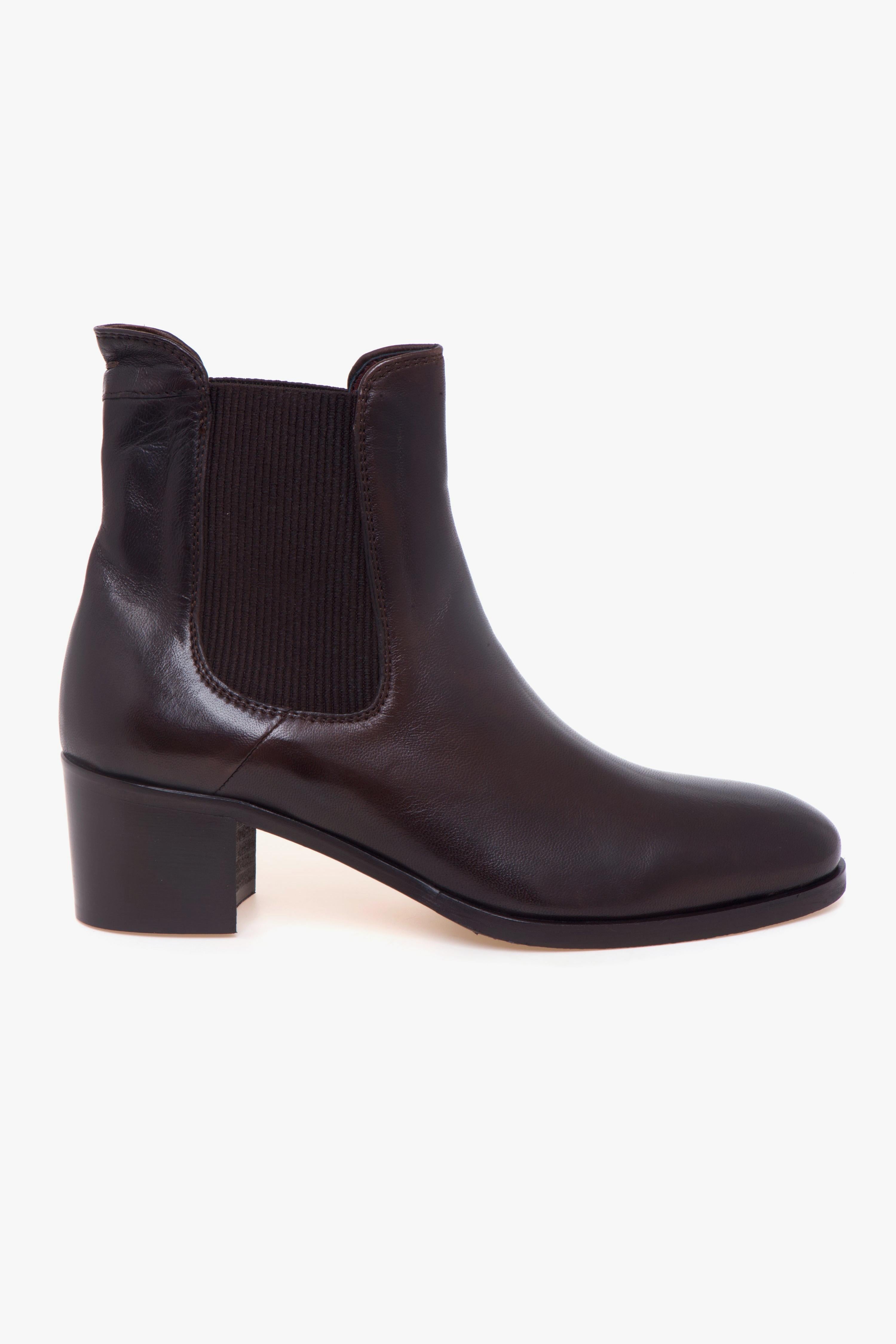 Realizzato in morbida pelle color caffè, questo tronchetto Calpierre unisce eleganza essenziale e praticità. Il design è caratterizzato dal doppio elastico sui lati del gambale, un dettaglio funzionale che permette una calzata rapida e sorprendentemente confortevole.La struttura interna è completamente foderata in pelle, così come il sottopiede, per una sensazione di qualità e benessere durante tutta la giornata. La suola in cuoio con inserto in gomma assicura aderenza e durata, mentre il tacco largo da 45 mm dona stabilità e slancia la silhouette con naturalezza.Un modello versatile, perfetto per completare look casual raffinati con un tocco di artigianalità italiana.Dettagli prodotto:# Realizzato in pelle color caffè.# Doppio elastico laterale.# Fodera in pelle.# Sottopiede in pelle.# Suola in cuoio con inserto in gomma.# Tacco largo 45 mm.# Made in Italy.