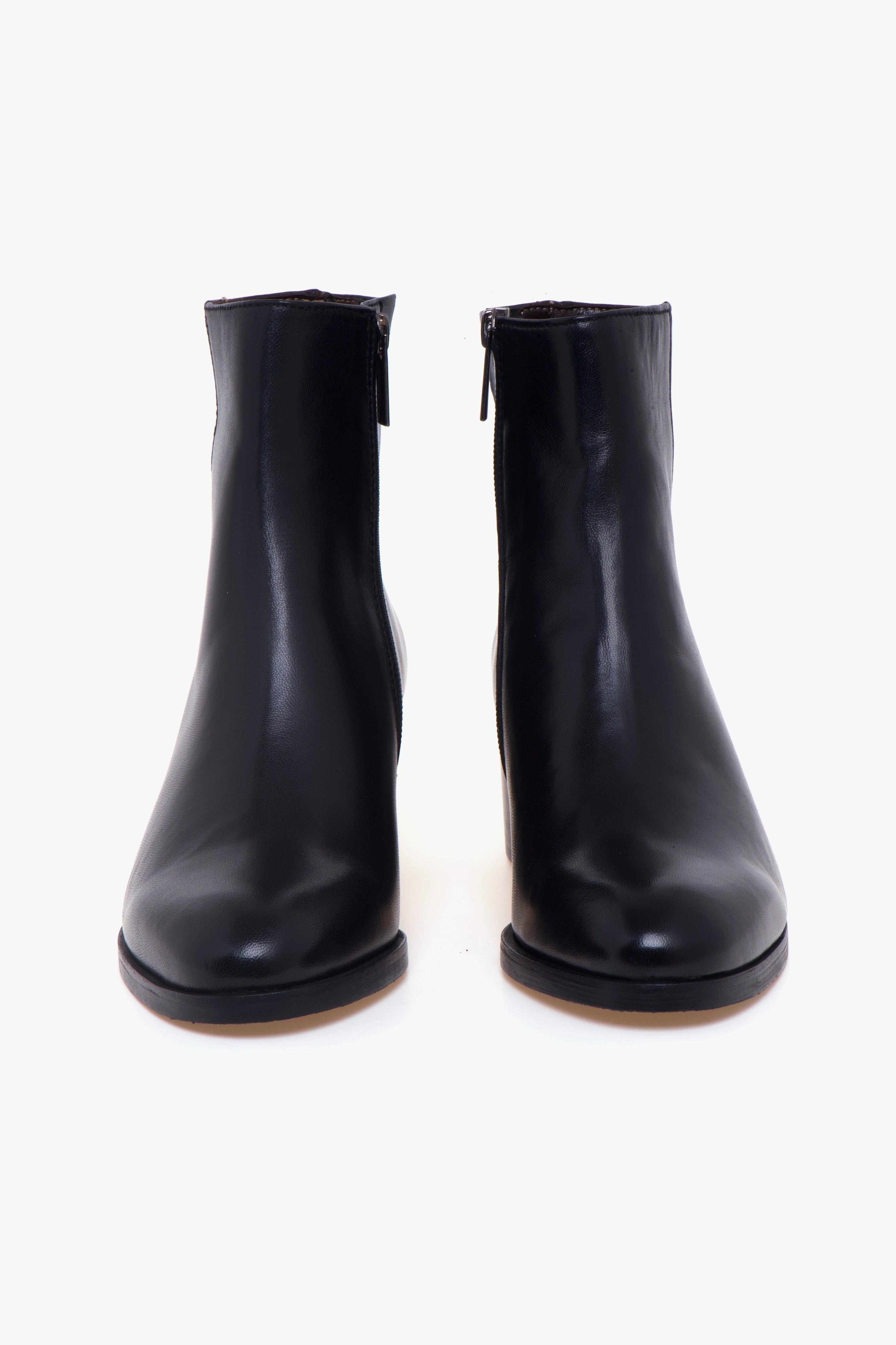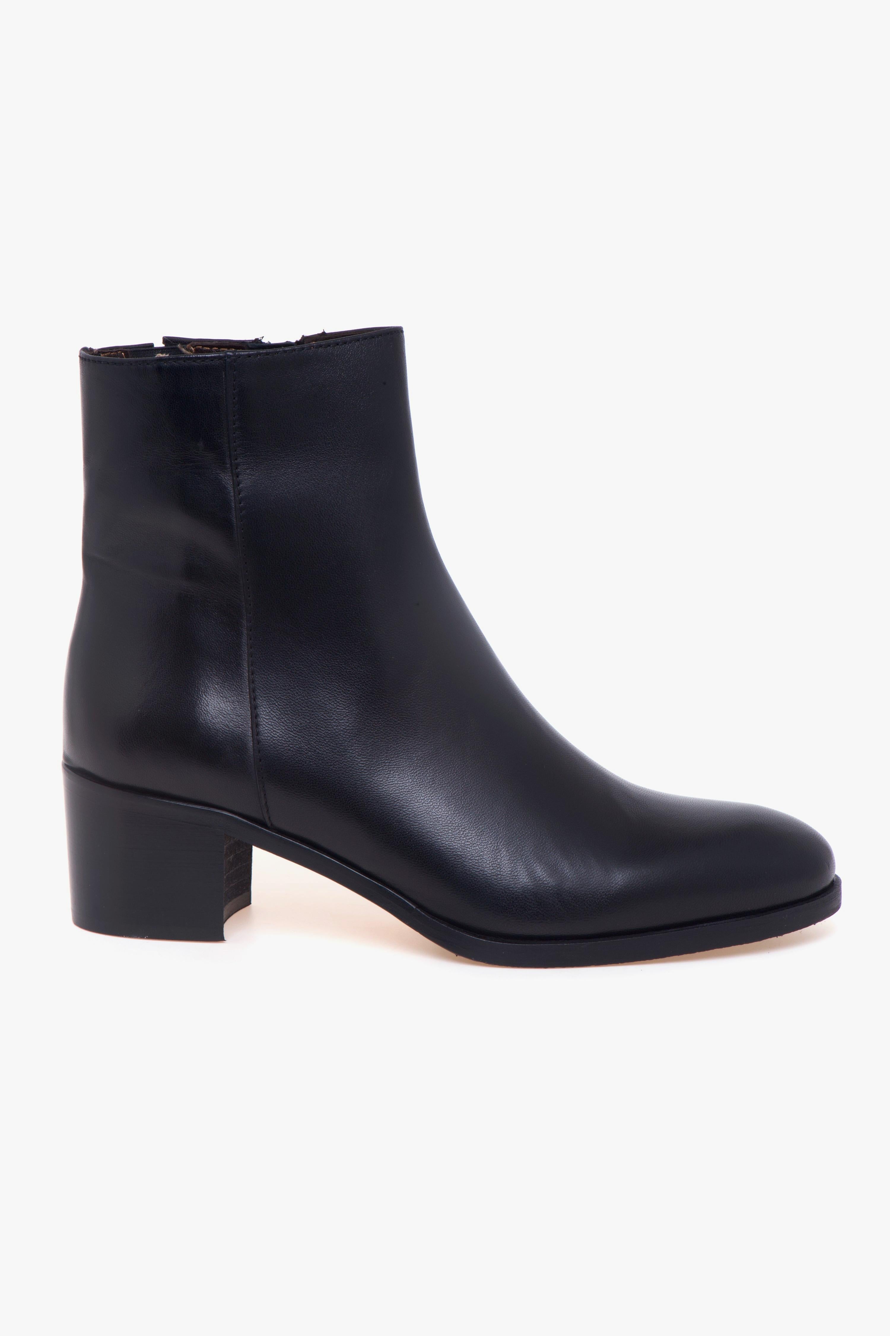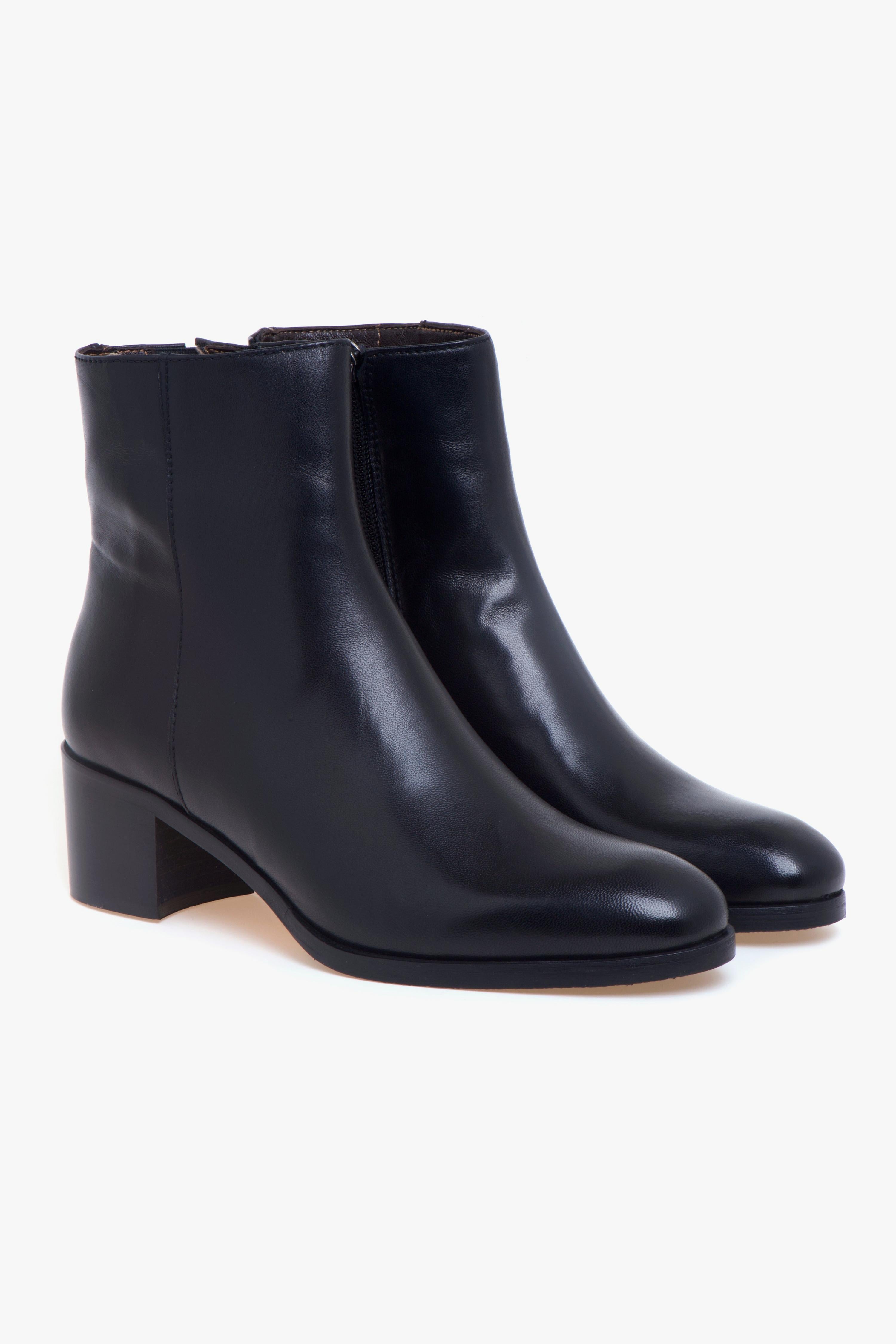 Minimalista, raffinato e pensato per il comfort quotidiano, il tronchetto Calpierre è realizzato in pelle morbida e presenta un design pulito e senza tempo.Il tacco largo da 45 mm dona stabilità e slancia delicatamente la silhouette, rendendolo perfetto per accompagnare look casual ma ricercati.La zip sul lato interno assicura una calzata pratica e veloce, mentre il piccolo inserto elasticizzato posizionato nella parte superiore del gambale offre un comfort extra, ideale anche per chi ha un polpaccio più pronunciato. Gli interni completamente in pelle garantiscono una sensazione di qualità e traspirabilità, mentre la suola in cuoio con inserto in gomma assicura aderenza e durata.Un tronchetto essenziale e versatile, capace di elevare con discrezione ogni outfit.Dettagli prodotto:# Design essenziale in pelle.# Tacco largo 45 mm.# Zip interna.# Inserto elasticizzato sul gambale.# Fodera e sottopiede in pelle.# Suola in cuoio con inserto in gomma.# Made in Italy.
