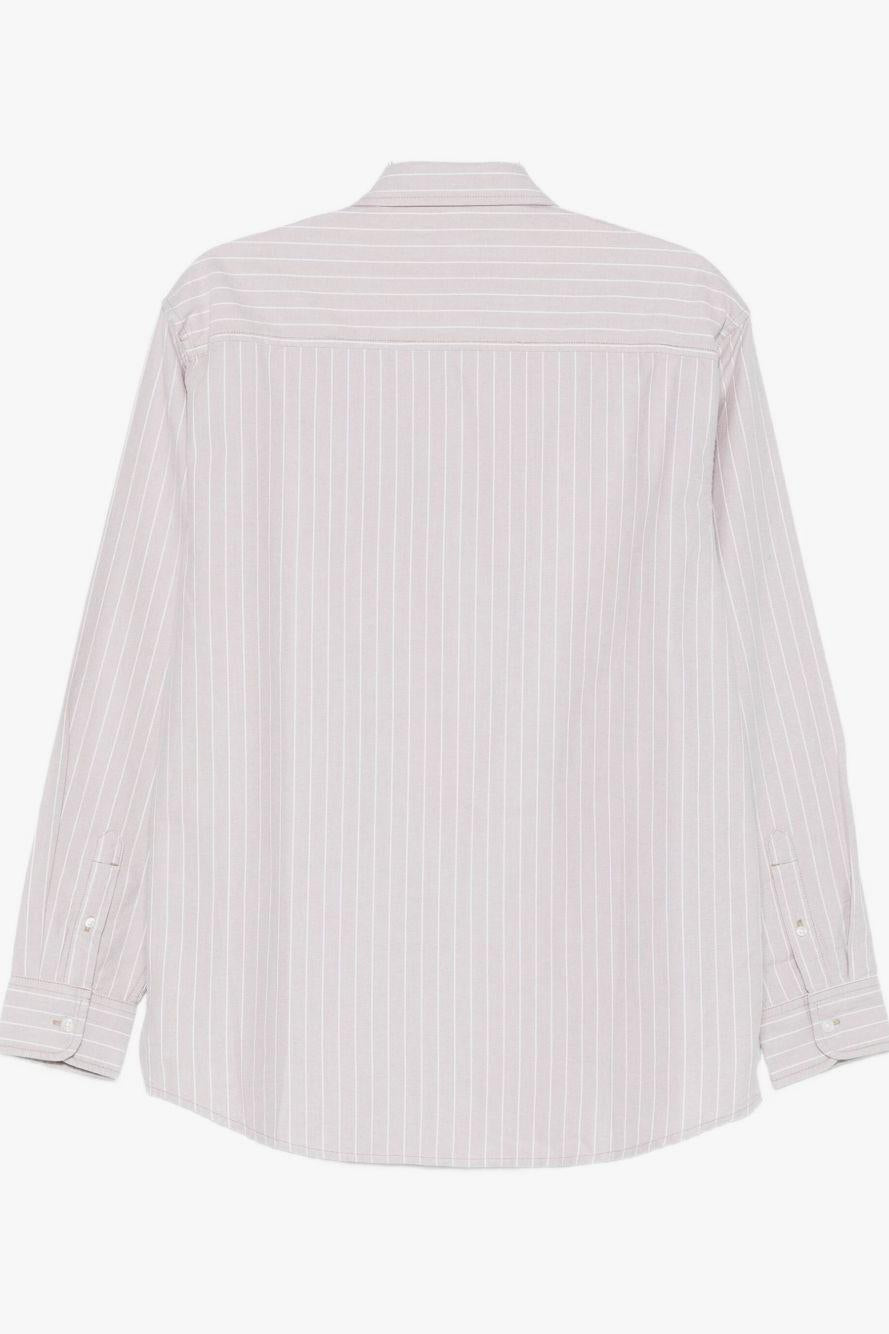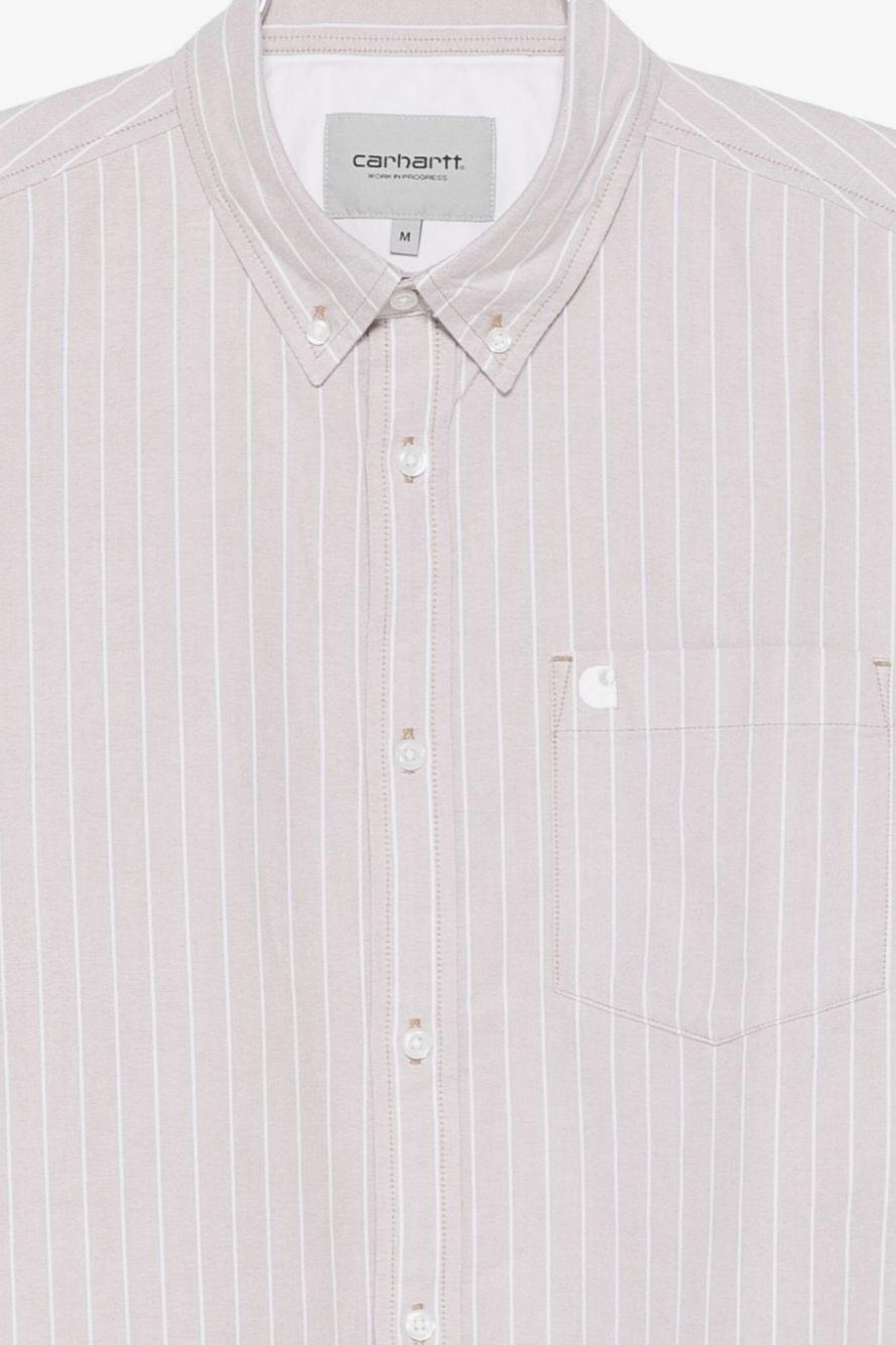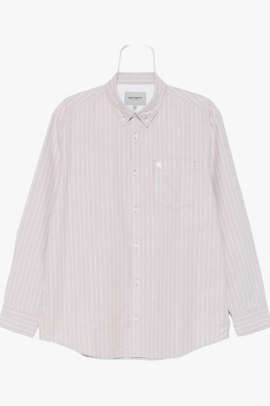 Proposta in bianco con motivo a righe, presenta chiusura frontale con bottoni, taschino applicato sul petto, maniche lunghe e polsini con bottoni, per un look pulito e funzionale. Il design essenziale riflette l’anima autentica e resistente di Carhartt WIP, ideale per outfit casual dal carattere deciso.