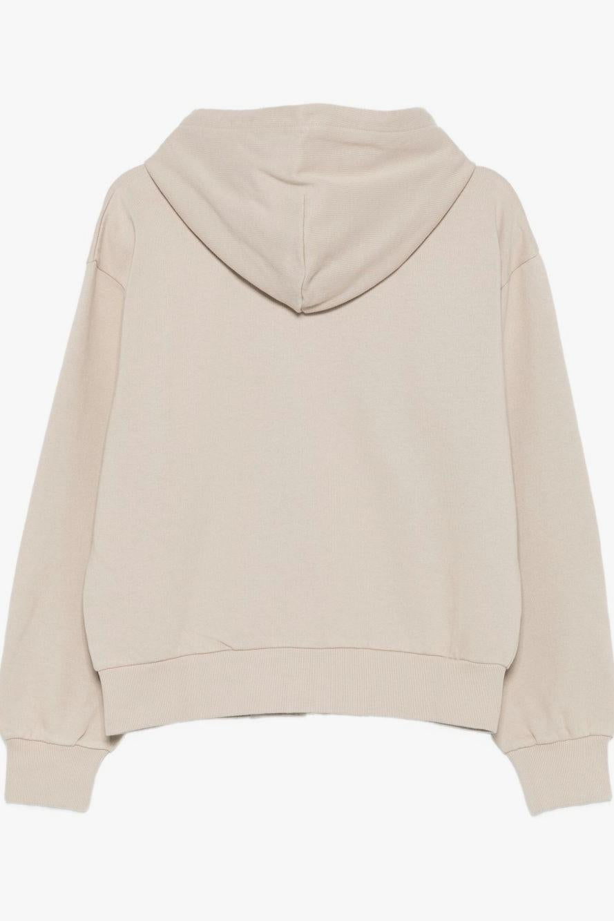 La chiusura frontale con zip e la tasca a canguro rendono il modello pratico e funzionale, mentre il cappuccio e le maniche lunghe assicurano protezione e comodità. Il logo discreto completa il design con un tocco riconoscibile ma minimal.