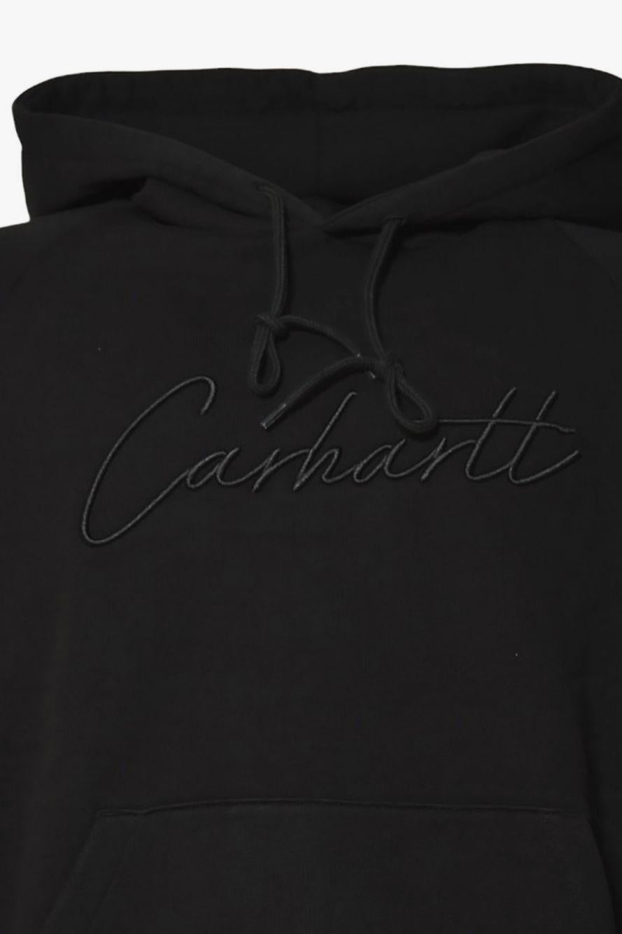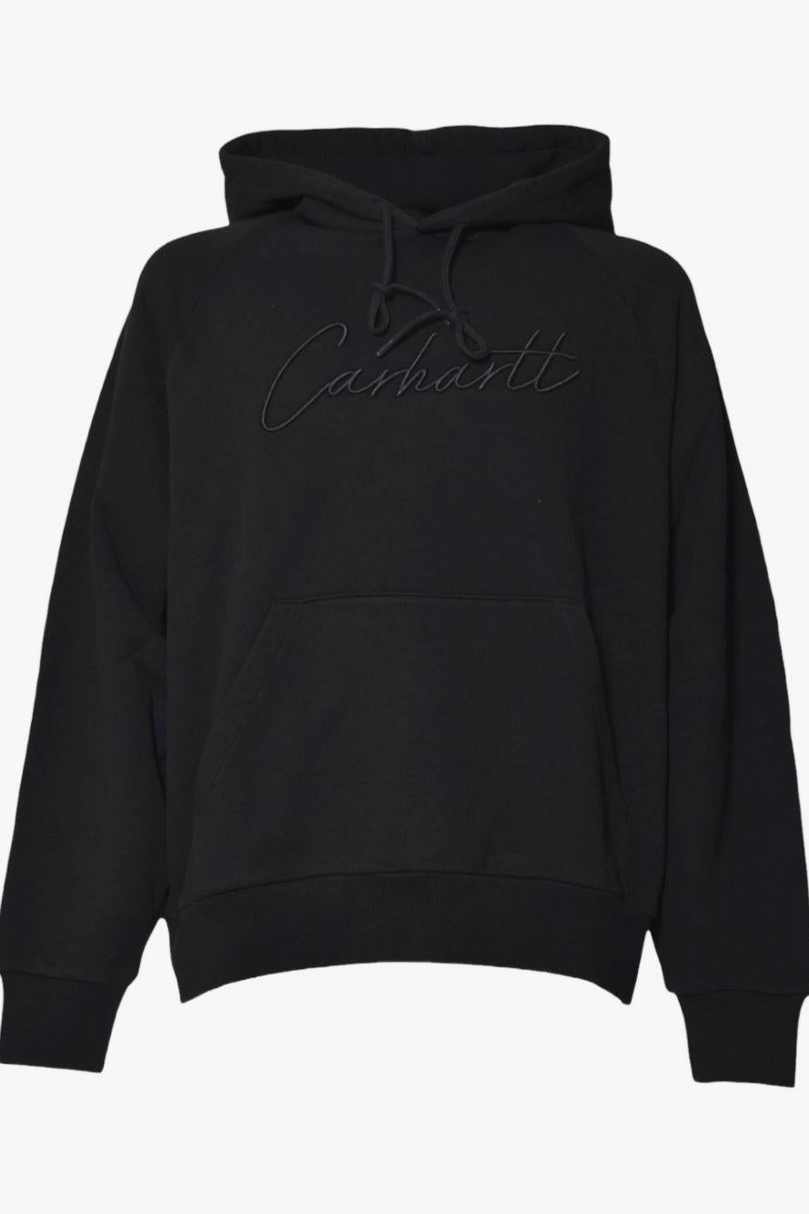 Proposta in nero, presenta cappuccio con coulisse regolabile, tasca applicata frontale, maniche raglan e cuciture tono su tono che ne esaltano il design pulito. Il logo ricamato sul petto aggiunge un tocco distintivo, firmando il capo con l’inconfondibile stile Carhartt WIP.
