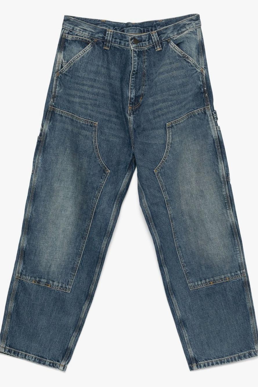 Proposti in blu denim, si distinguono per il design a inserti e le cuciture a contrasto che donano al capo un aspetto dinamico e autentico. I passanti per cintura, il classico modello a cinque tasche e la chiusura con zip completano il look, mantenendo la praticità tipica dello stile Carhartt WIP.