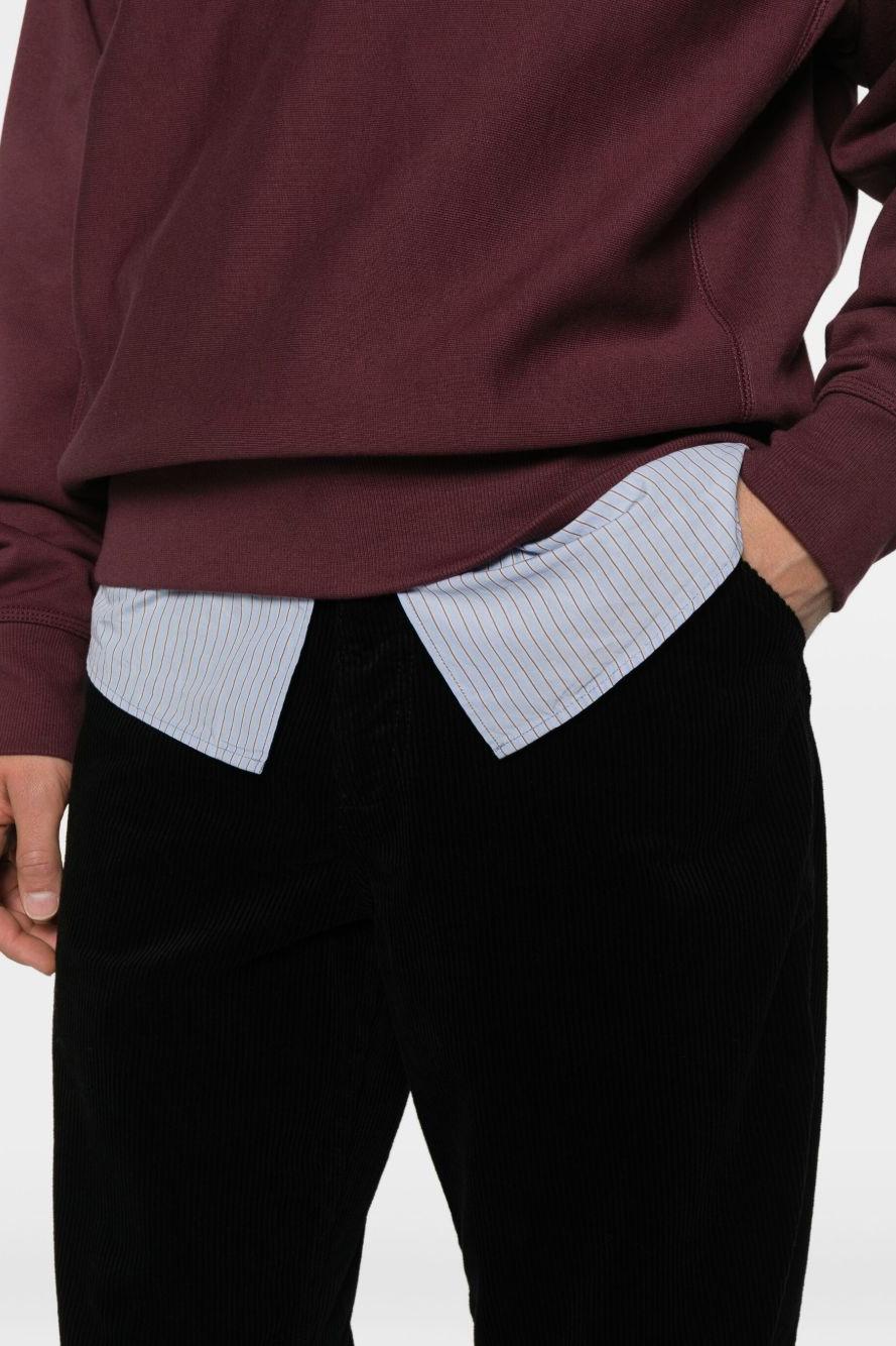 Proposti in nero, presentano una texture in corduroy che dona profondità e carattere al design. La chiusura frontale con bottone e i passanti per cintura completano il look, assicurando una vestibilità pratica e sempre impeccabile. La fodera interna in misto poliestere e cotone garantisce comfort e durabilità, anche durante un uso prolungato.