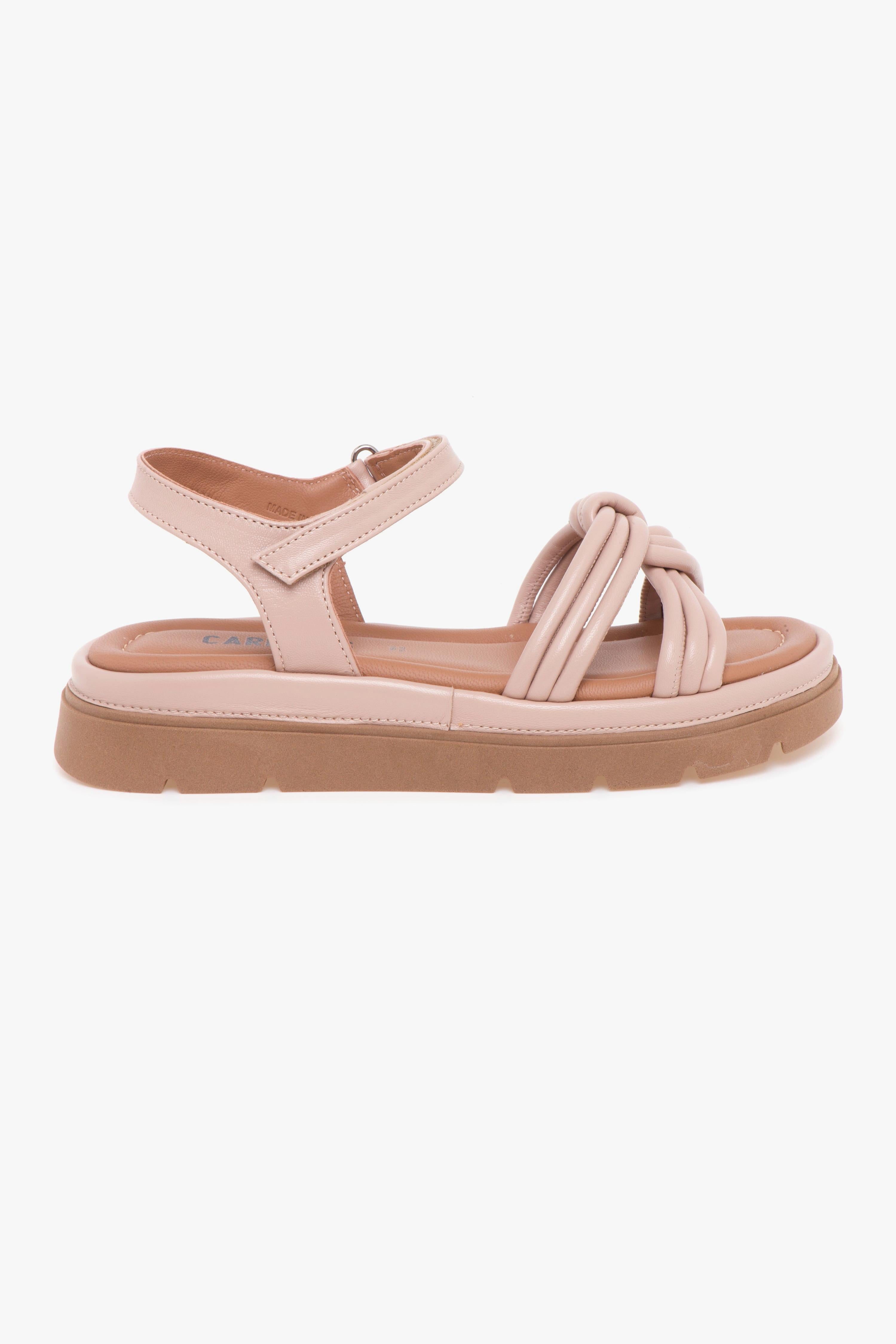 Linee morbide e un’estetica raffinata definiscono il carattere di questo sandalo Carmens Padova, progettato per coniugare comfort e femminilità in ogni passo. La tomaia si distingue per l’intreccio di sottili fasce imbottite annodate tra loro, un dettaglio ricercato che valorizza il piede con discreta eleganza.Il cinturino con chiusura a velcro avvolge delicatamente la caviglia, assicurando una calzata regolabile e stabile. Il platform in gomma leggera e il sottopiede imbottito in pelle completano il design con una struttura flessibile e confortevole, ideale per accompagnare la quotidianità con stile.Da indossare con un abito lungo in cotone leggero o con pantaloni palazzo e top in seta, per un look fresco, versatile e dallo spirito sofisticato.# Tomaia in pelle. # Fodera in pelle.# Sottopiede in pelle. # Suola in gomma.