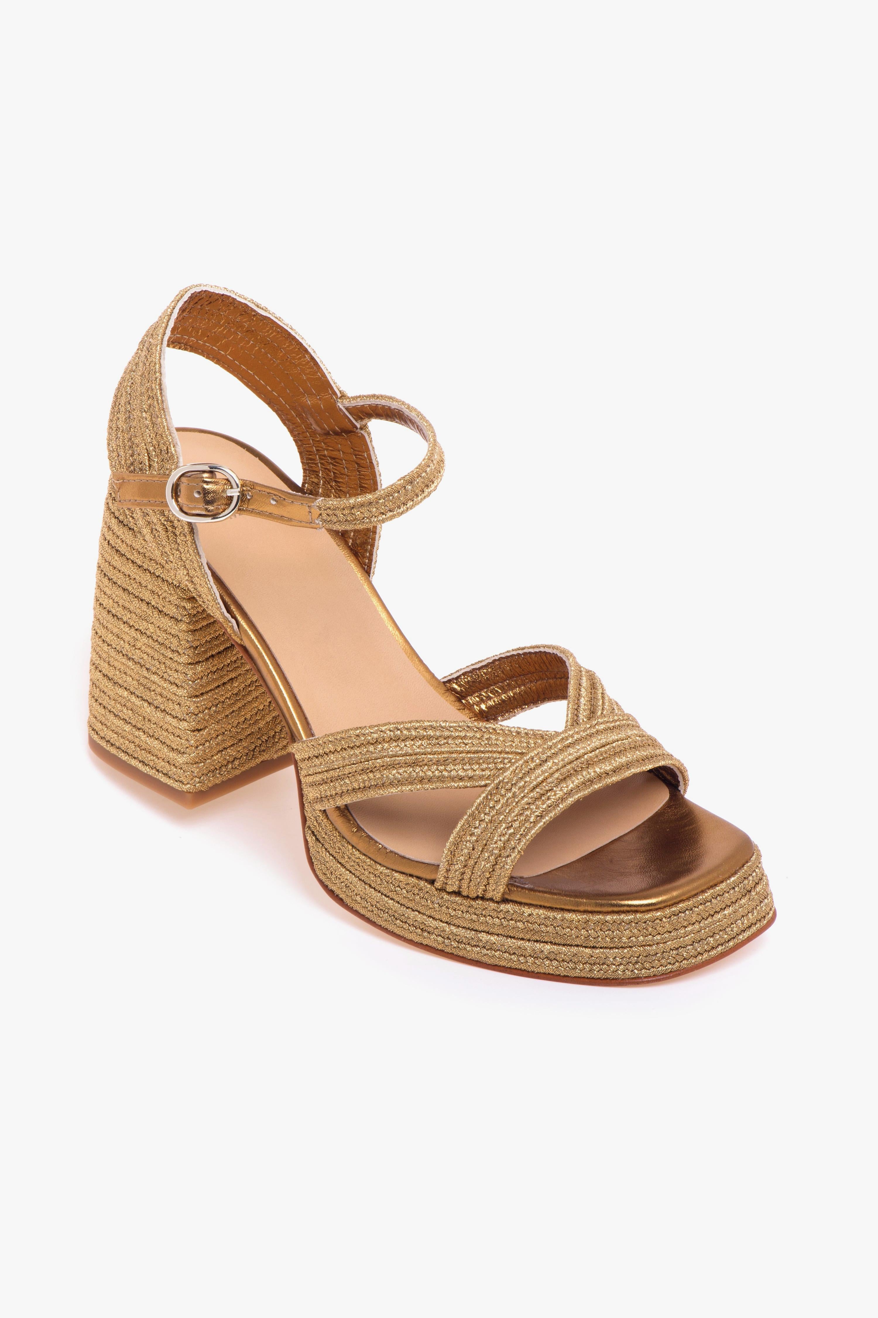 castañer Sandalo Valle in tessuto laminato intrecciato e tacco 100 mm