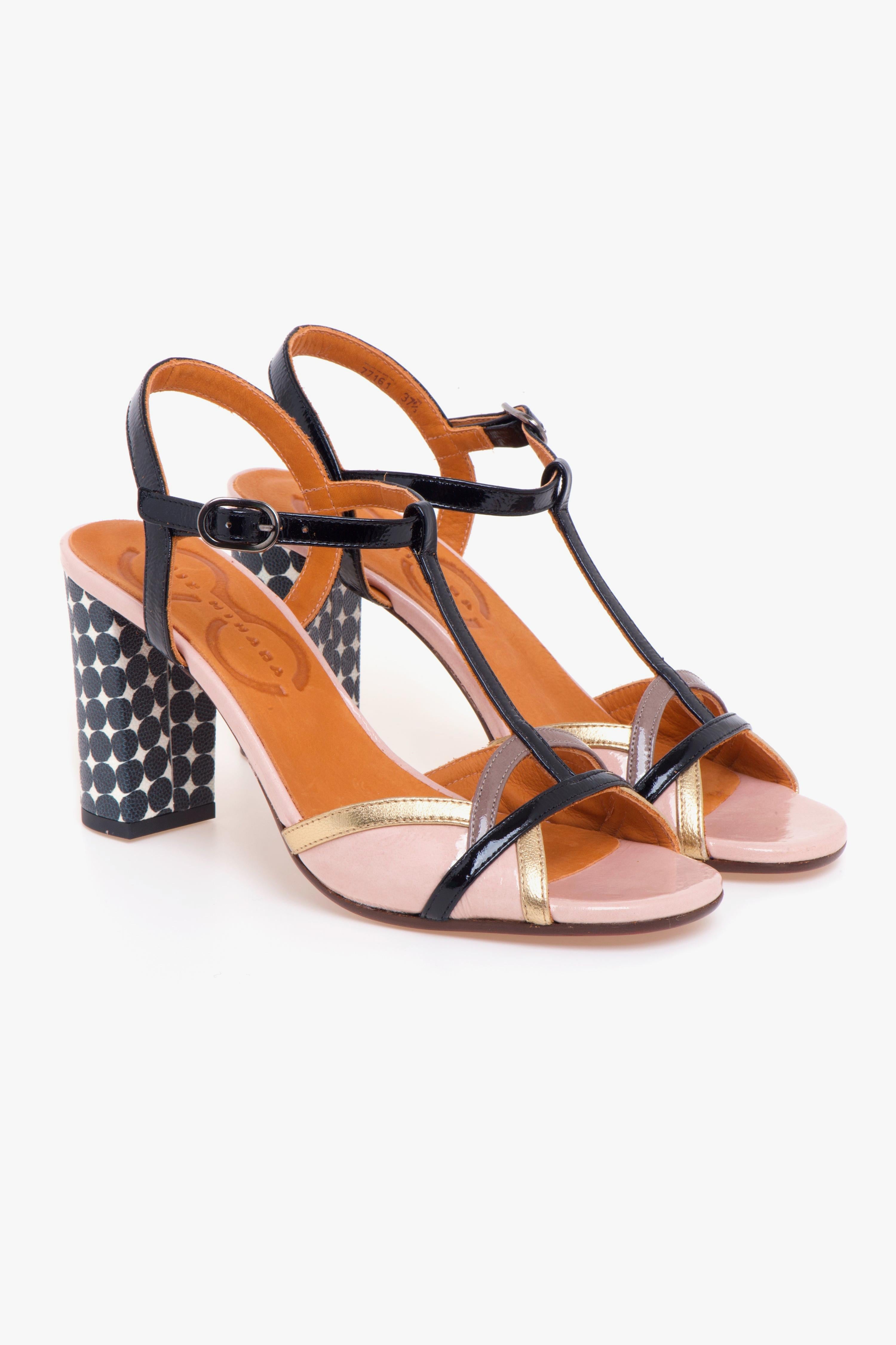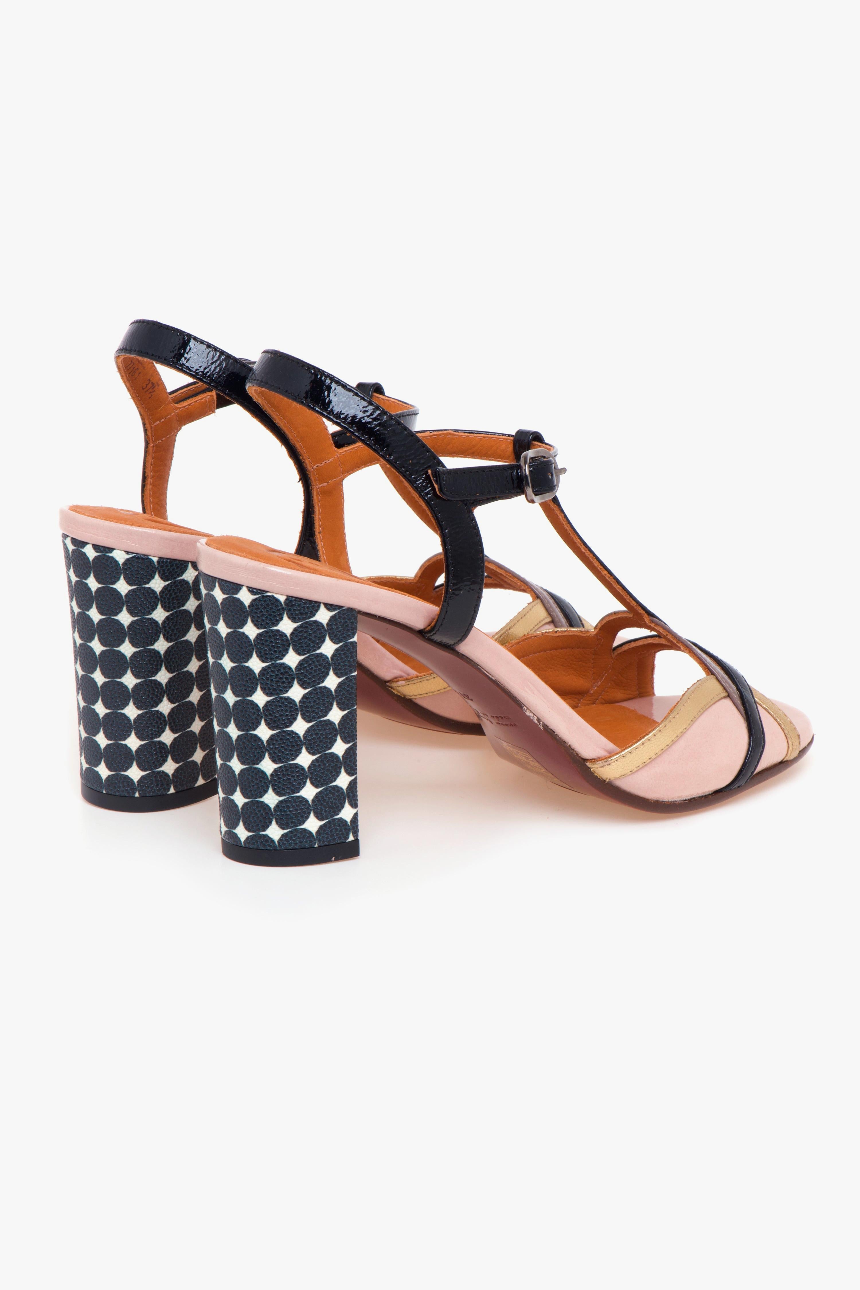 Il sandalo Chie Mihara in pelle naplack si distingue per il suo look raffinato e sofisticato, perfetto per aggiungere eleganza a qualsiasi outfit. La tomaia essenziale è arricchita da piccole fasce a contrasto che creano un gioco di colori, mentre la T-Bar slancia il piede e dona un tocco di originalità. Il cinturino regolabile alla caviglia assicura una calzata perfetta e sicura.Il tacco di 85 mm dal volume ampio è rivestito in pelle con una stampa geometrica a poi ravvicinatii black & white, un dettaglio che conferisce al modello una sensazione di modernità e raffinatezza. I colori delicati di rosa tenue e nero si combinano perfettamente con gli inserti in pelle laminata platino e tortora, creando un equilibrio di toni eleganti e facili da abbinare.Adatto a eventi eleganti o a un look quotidiano sofisticato, questo sandalo si abbina bene con abiti midi o pantaloni dal taglio classico. Perfetto per chi cerca un accessorio che unisca comfort e stile senza rinunciare alla classe.# Tomaia in pelle. # Fodera in pelle. # Sottopiede in pelle. # Suola in gomma.