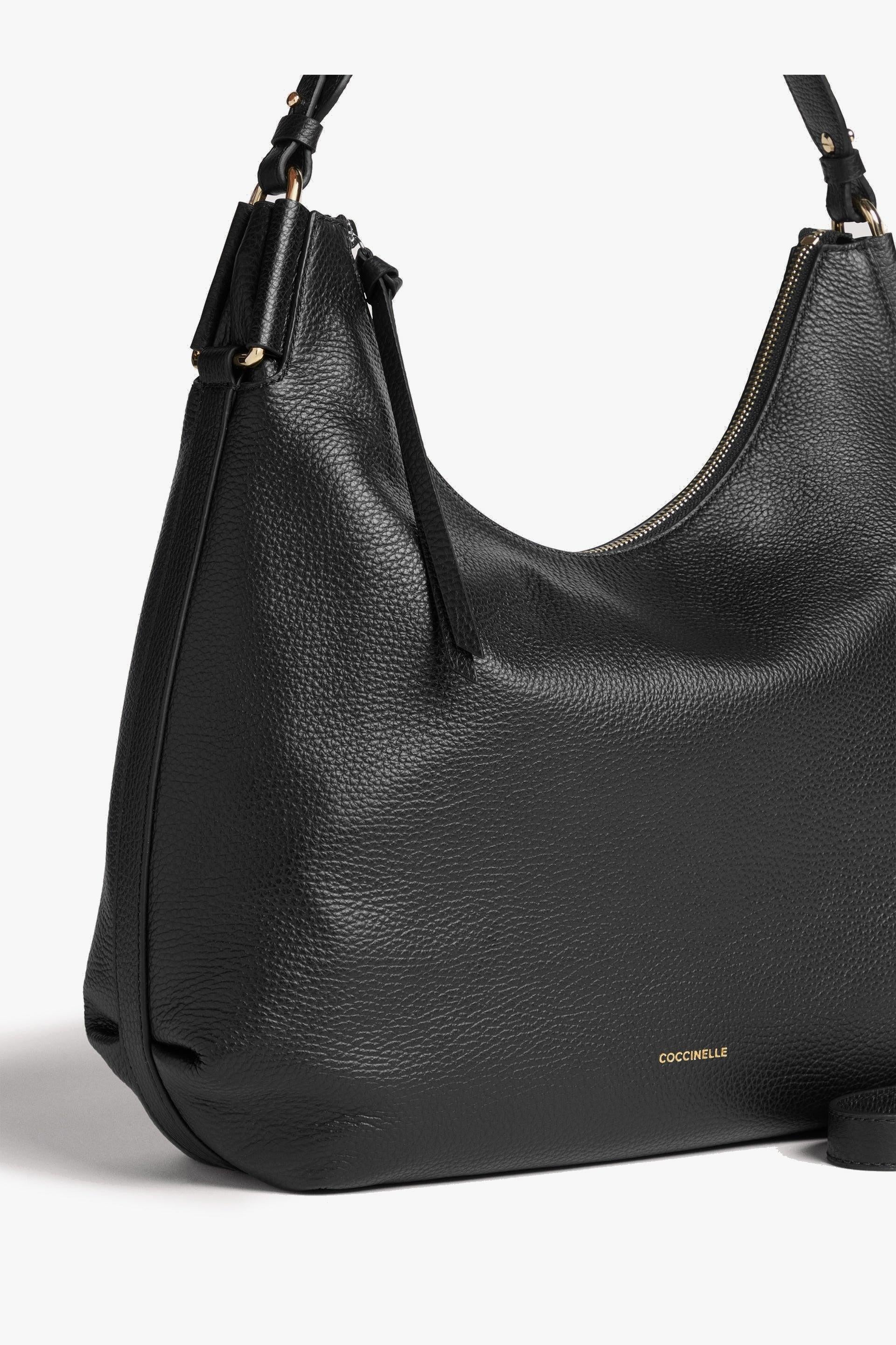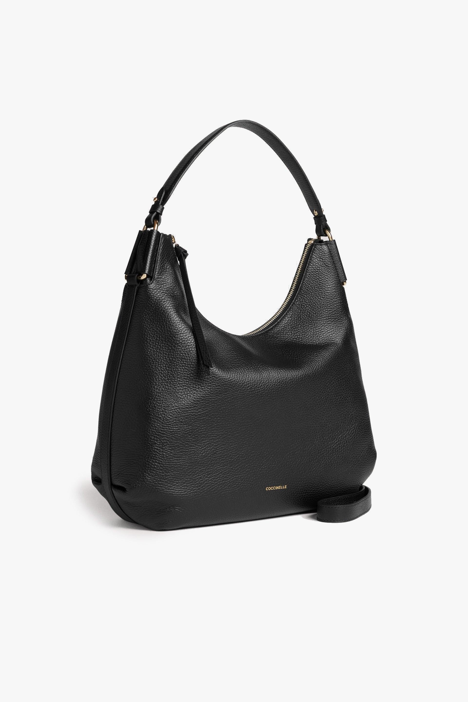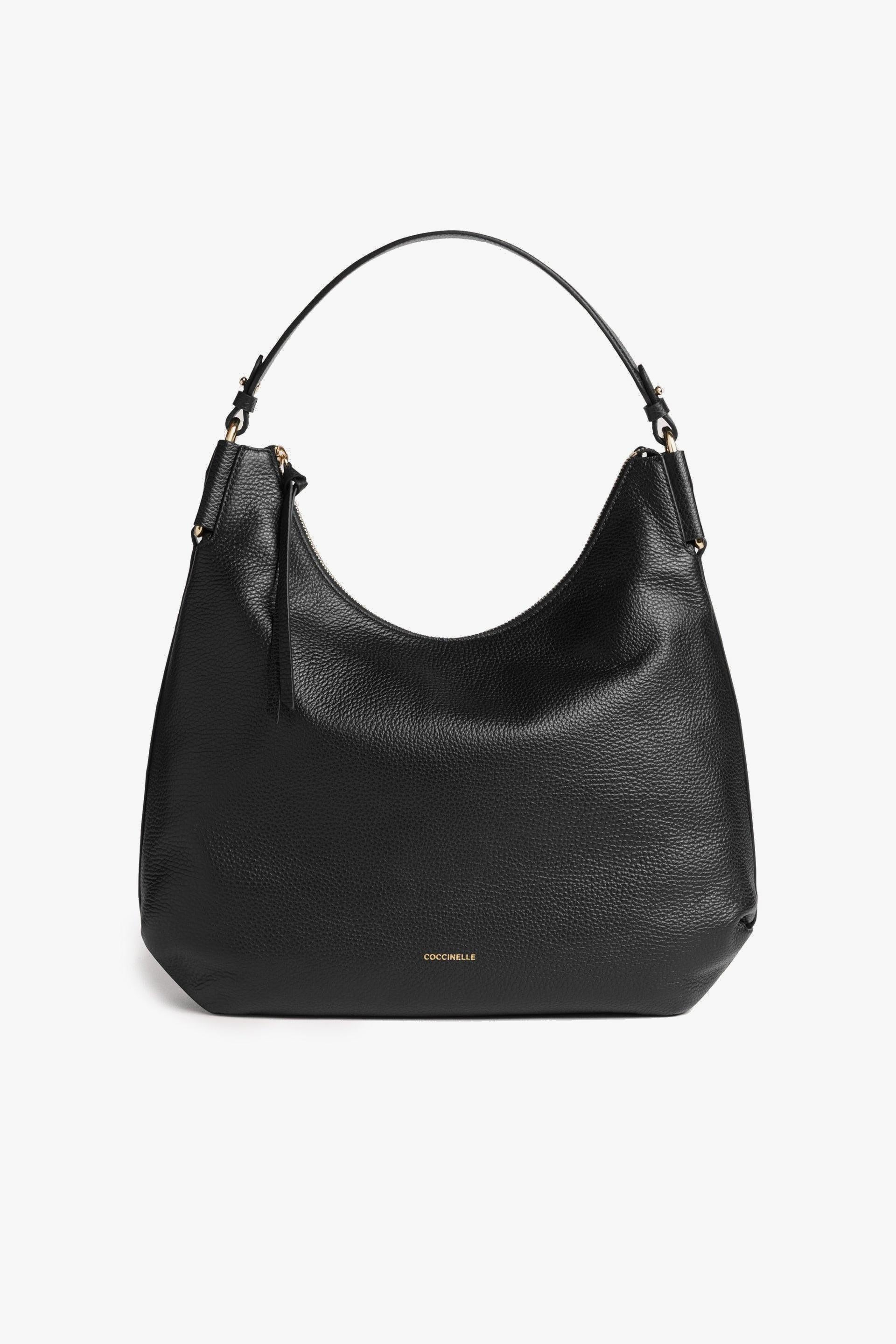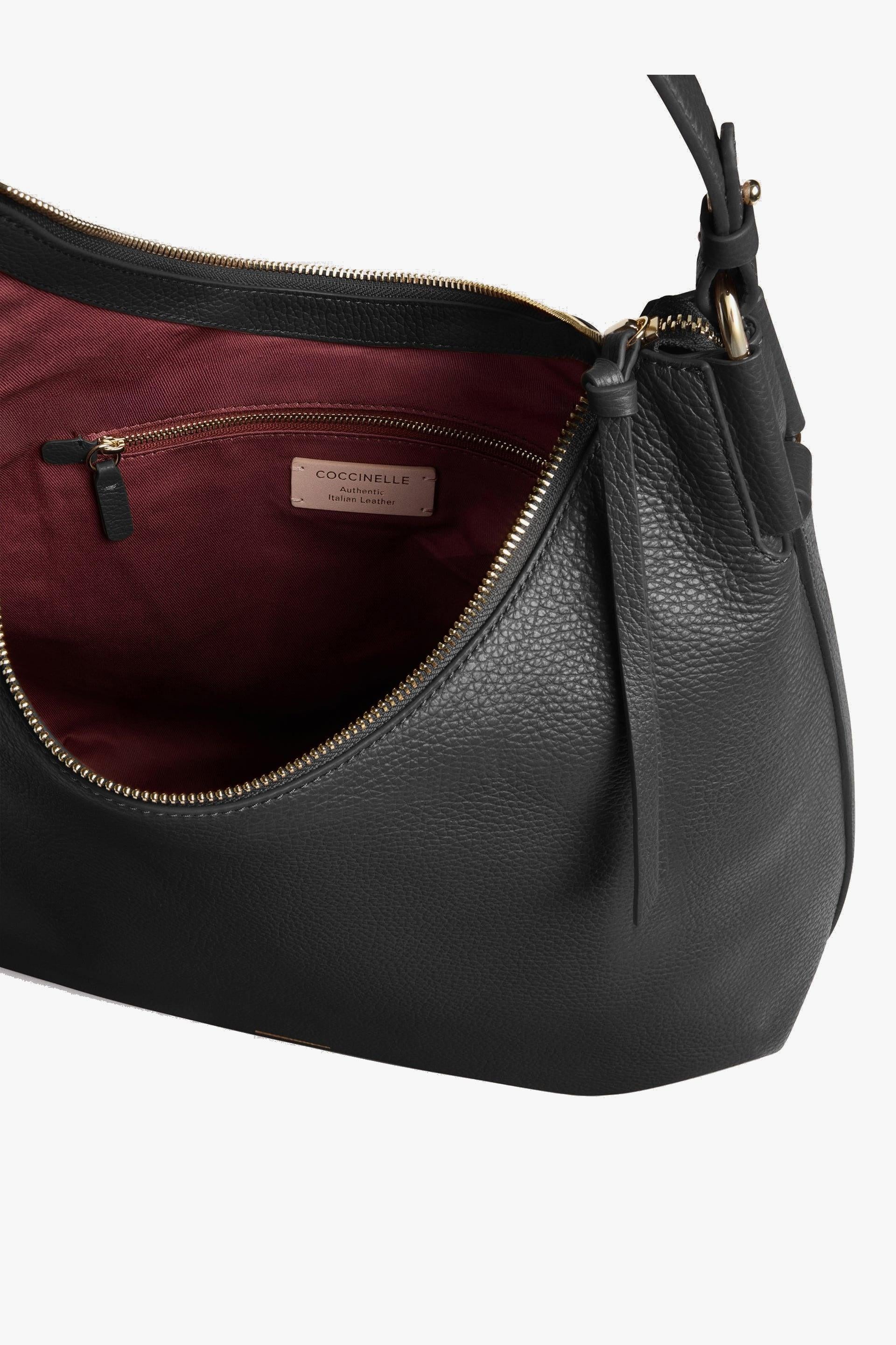 Linee morbide e costruzione curata definiscono Coccinelle Rebekka Medium in nero, una hobo capiente ma leggera che bilancia eleganza e funzionalità. La silhouette arrotondata valorizza la pelle a grana, lavorata con macchinari dedicati e poi bottalata per mantenerne la morbidezza; un materiale robusto e facile da pulire, ideale per l’uso quotidiano. Il dettaglio identitario è il plettro laterale oversize che funge da attacco per la tracolla, mentre la chiusura con zip mette al sicuro l’interno organizzato. Completano il profilo i metalli light gold e il logo timbrato oro, in un’estetica pulita pensata per la città. Caratteristiche principali:# Modello: Rebekka Medium – SKU E1T95130101.# Portabilità: a spalla o a tracolla (manico rimovibile; tracolla regolabile e rimovibile). # Materiale: pelle a grana lavorata e bottalata; resistente e facile da pulire. # Chiusura: zip superiore. # Interno: tre tasche, di cui una con zip. # Dettagli: plettro laterale oversize per l’attacco tracolla; logo timbrato oro; finiture light gold. # Dimensioni e peso: 38 × 24 × 12 cm; 980 g. # Cura: evitare detergenti aggressivi o gel igienizzanti sugli accessori.