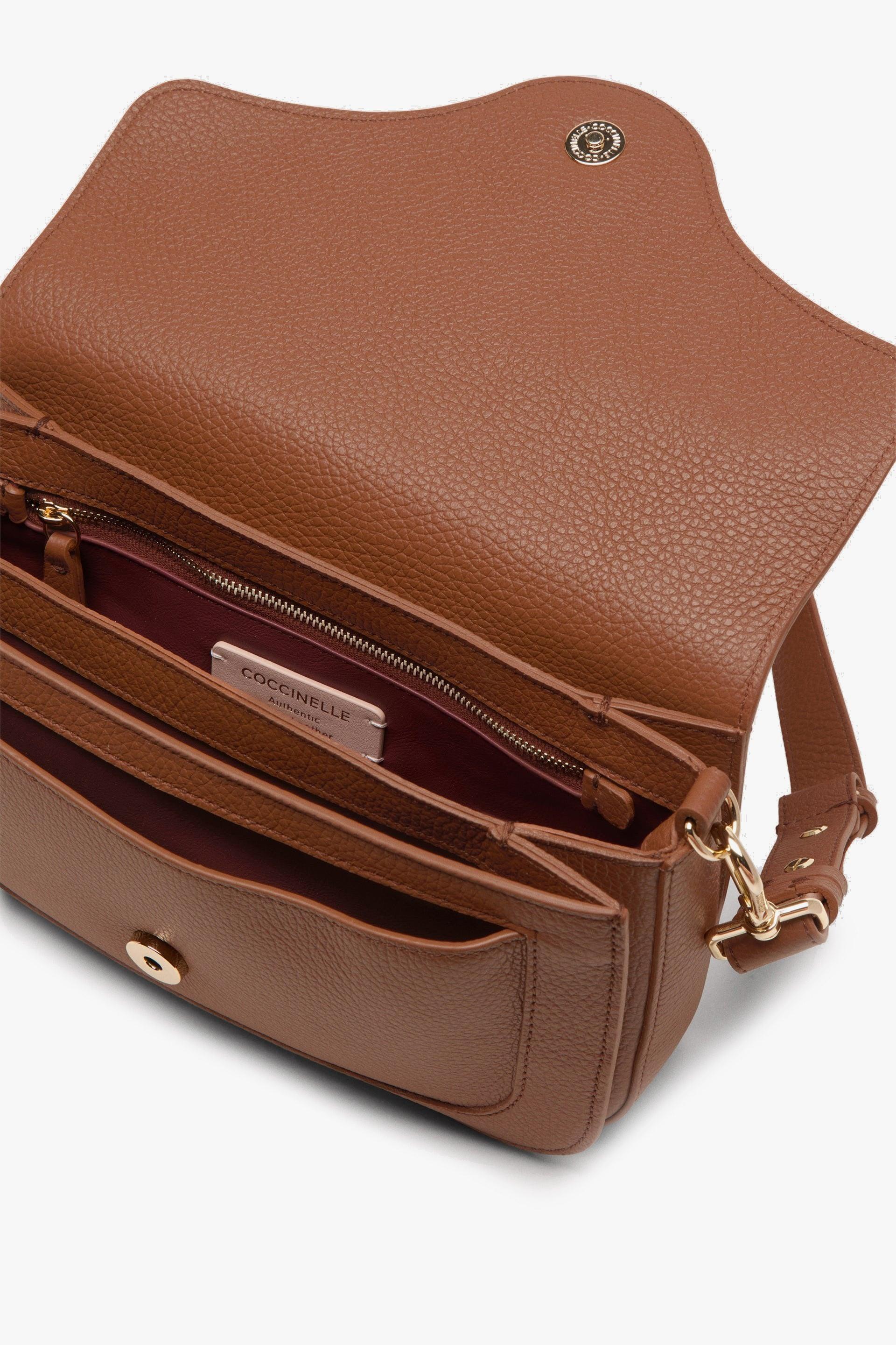 Linee geometriche e curve morbide definiscono Coccinelle C-Me Medium, una shoulder bag dal carattere essenziale che reinterpreta il nuovo logo del brand: la C che abbraccia il plettro in un gesto simbolico tra passato e presente.La costruzione a soffietti rende il modello funzionale senza perdere eleganza, mentre la pelle a grana, lavorata e poi bottalata per mantenerne la morbidezza, assicura resistenza e facile manutenzione nell’uso quotidiano. La patta con chiusura magnetica custodisce l’interno organizzato, completato da tasca frontale e tasca interna con zip; la tracolla regolabile e rimovibile consente di portarla a spalla o crossbody secondo le esigenze. Dettagli in light gold e logo timbro oro firmano un profilo pulito e contemporaneo. Caratteristiche principali:# Modello: Coccinelle C-Me Medium – SKU E1SSL12030. # Portabilità: a spalla o a tracolla (manico/tracolla rimovibile e regolabile).# Materiale: pelle a grana lavorata e bottalata; robusta e facile da pulire. # Chiusura: magnete sotto patta. # Tasche: tasca frontale; tasca interna con zip. # Struttura: costruzione a soffietti. # Dettagli metallici: light gold plating; logo timbrato oro. # Dimensioni e peso: 26 × 15 × 7 cm, 720 g. # Cura: evitare detergenti aggressivi/gel igienizzanti a contatto con gli accessori.