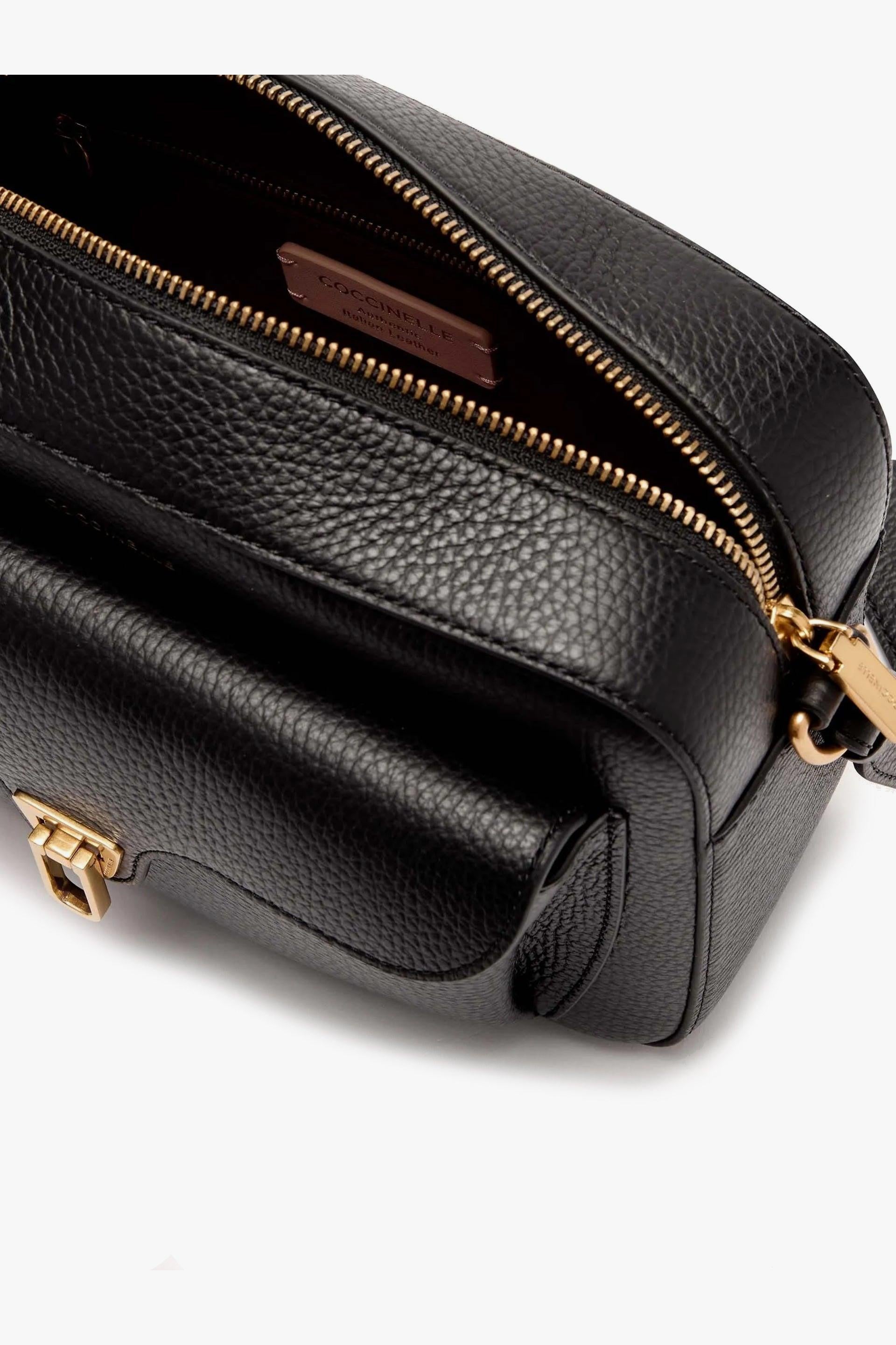 Linee compatte e dettagli iconici raccontano Coccinelle Beat Large, la camera bag della linea Beat riconoscibile dalla tasca frontale con chiusura a plettro metallico.Il pellame a grana, lavorato con macchinari dedicati e successivamente bottalato per mantenerne la morbidezza, è pensato per un uso quotidiano: resistente, facile da pulire e piacevole al tatto. La tracolla in pelle regolabile e rimovibile assicura versatilità d’uso, mentre l’organizzazione interna con tasca chiusa da zip e fodera in tessuto custodisce l’essenziale con ordine. La finitura gold e il logo dorato stampato a pressione completano un profilo femminile e trasversale, ideale dalla mattina alla sera. Caratteristiche principali:# Modello: Beat Large – E1MF6150601.# Materiale: pelle a grana morbida, bottalata; resistente e facile da pulire. # Dettagli distintivi: tasca frontale con chiusura a plettro metallica; logo dorato timbrato. # Tracolla: in pelle, regolabile e rimovibile (con sistemi a bottoni). # Interni: fodera in tessuto; tasca interna con zip. # Finitura metalli: antik gold. # Dimensioni e peso: 25 × 18 × 8 cm, circa 630 g.