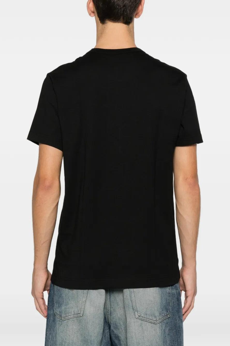 Il design presenta girocollo, maniche corte e una stampa grafica dal motivo astratto, che rende la t-shirt immediatamente riconoscibile e distintiva. Il colore nero funge da base essenziale, valorizzando il graphic print e rendendo il capo facile da abbinare a look casual e urban.