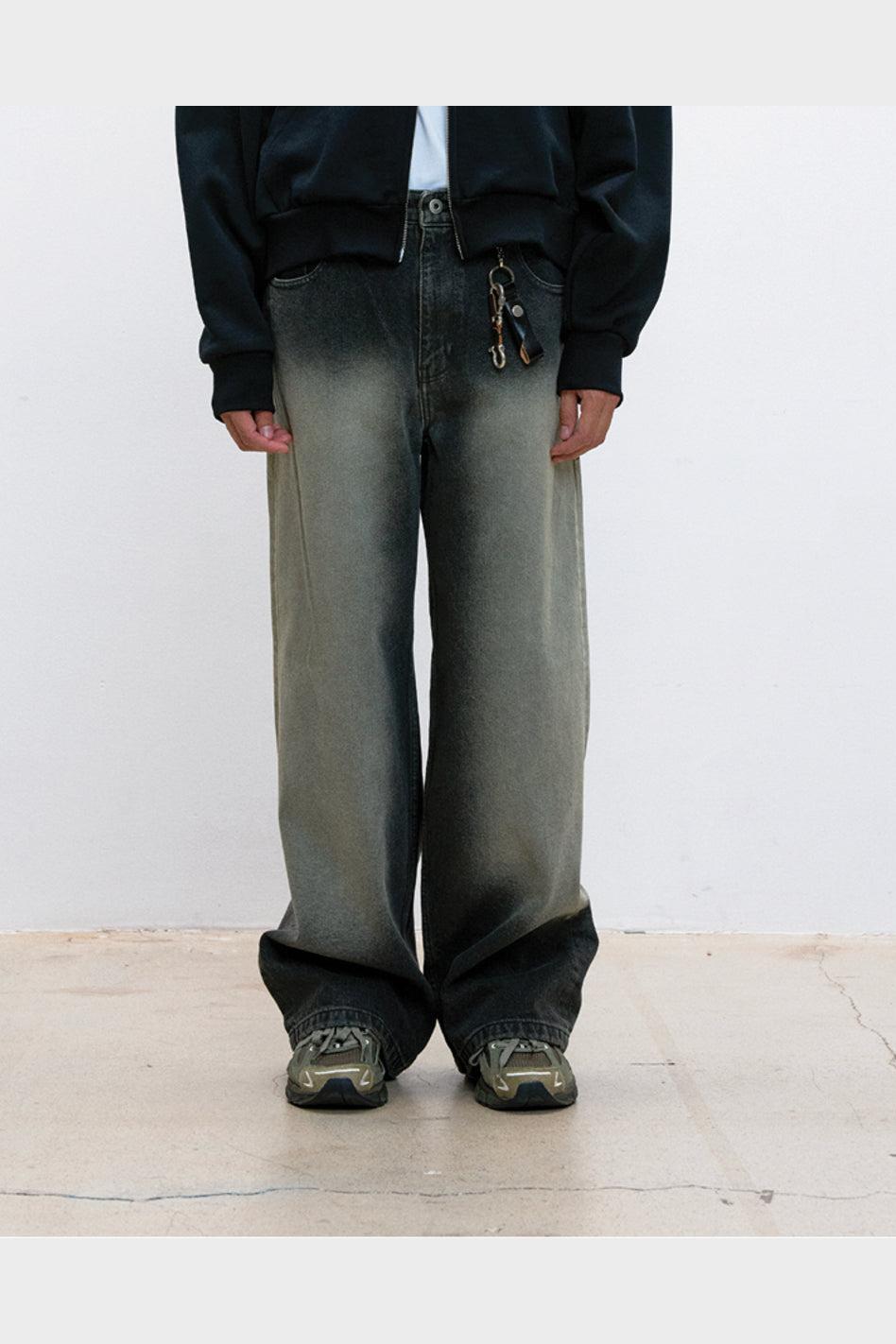 coor Jeans Stone Brushed Semi Wide Washed Charcoal